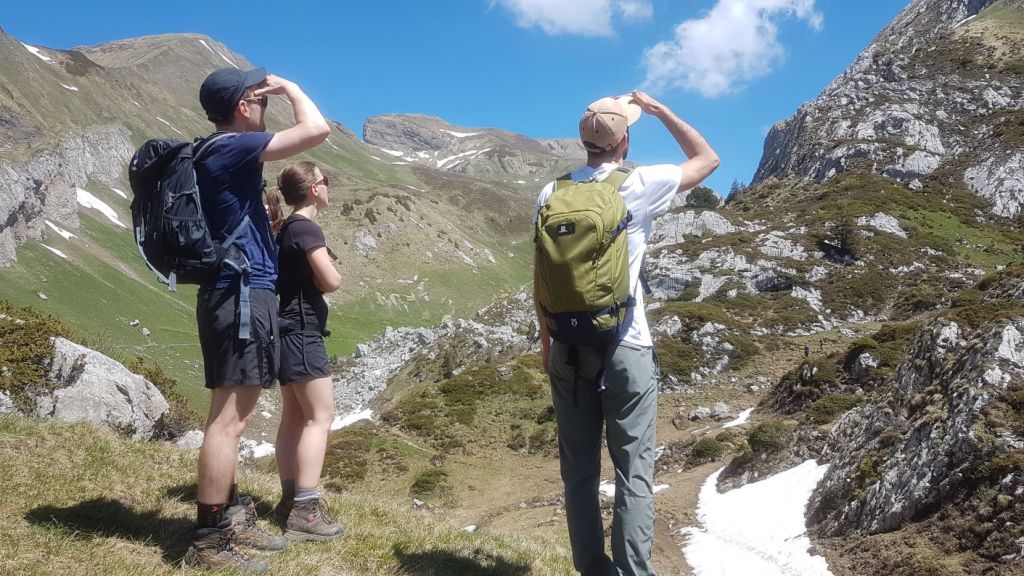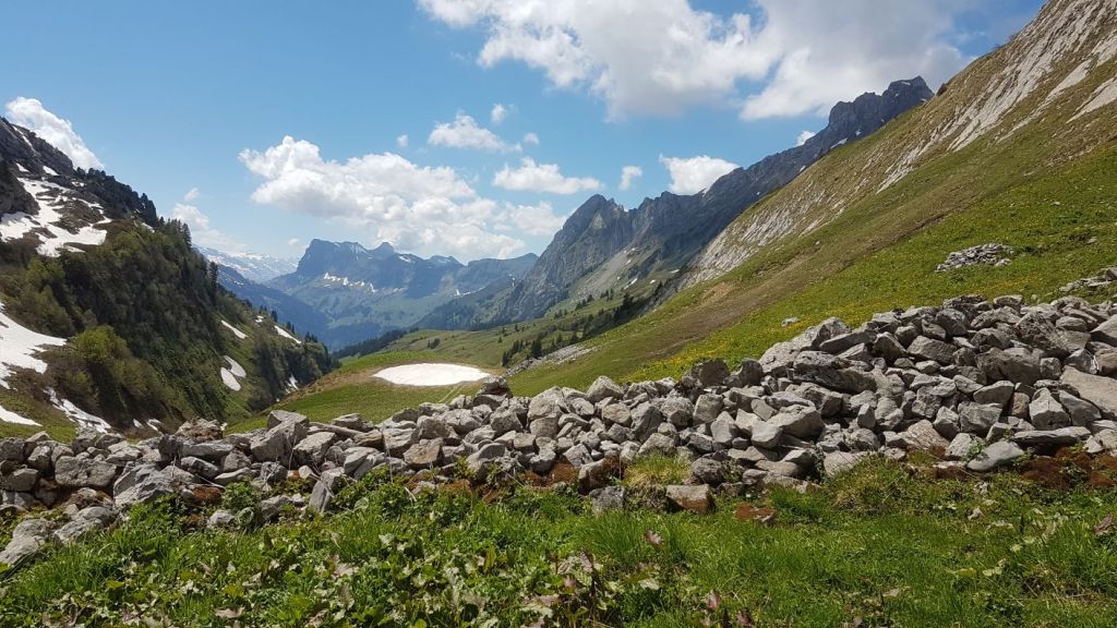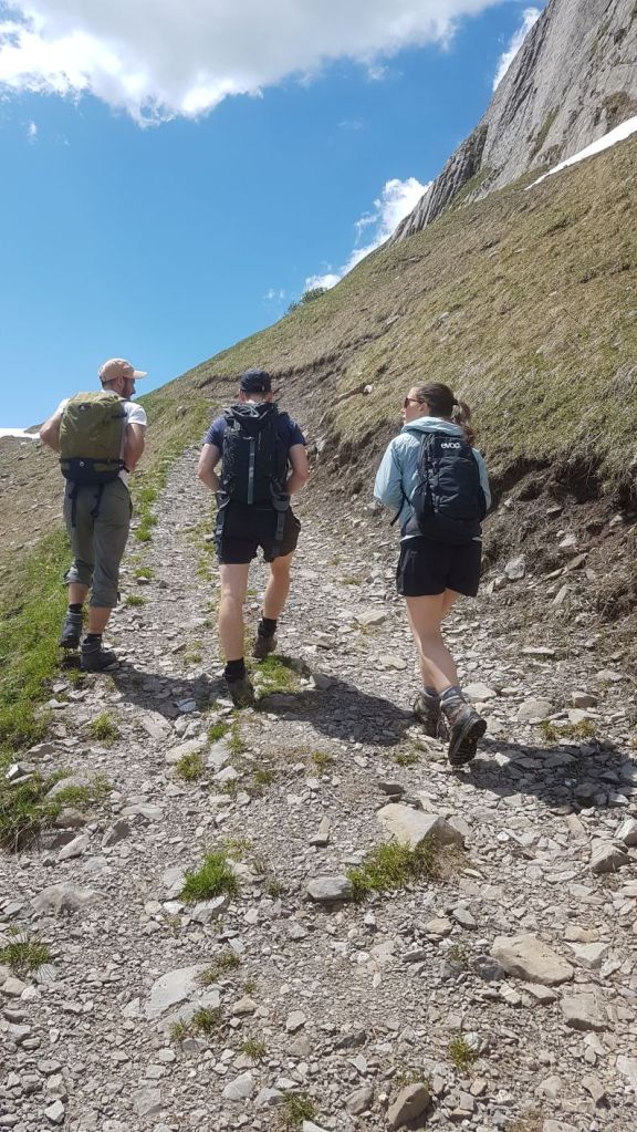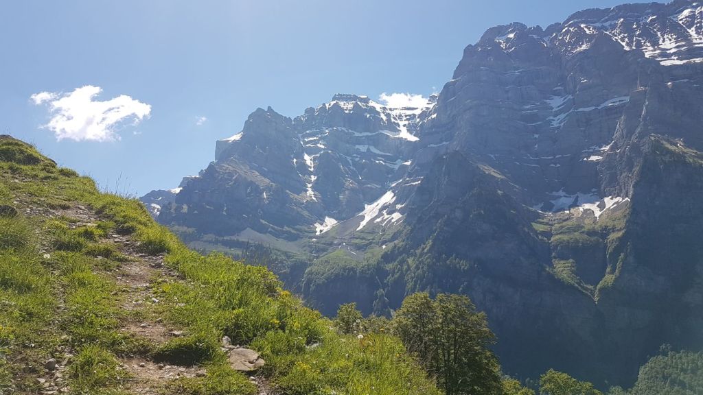Manchmal kommt es anders als geplant – und trotzdem sehr gut. In guter Gesellschaft beginnt unsere Alternativwanderung am Klöntalersee und führt steil hoch an den Fuss des Dejenstocks, wo wir mit einer traumhaften Aussicht auf den Klöntalersee und die Glarner Alpen belohnt werden. Weiter geht’s um den Mättlistock herum über herrliche Blumenwiesen bis zur Deyenalp. Dann folgt der lange Abstieg auf kurvigen Wegen hinunter bis nach Vorauen am Ende des Klöntalersees. Das letzte Stück dem See entlang zurück zum Ausgangsort zieht sich etwas in die Länge. Umso wohl verdienter ist dann der feine Apéro 🙂