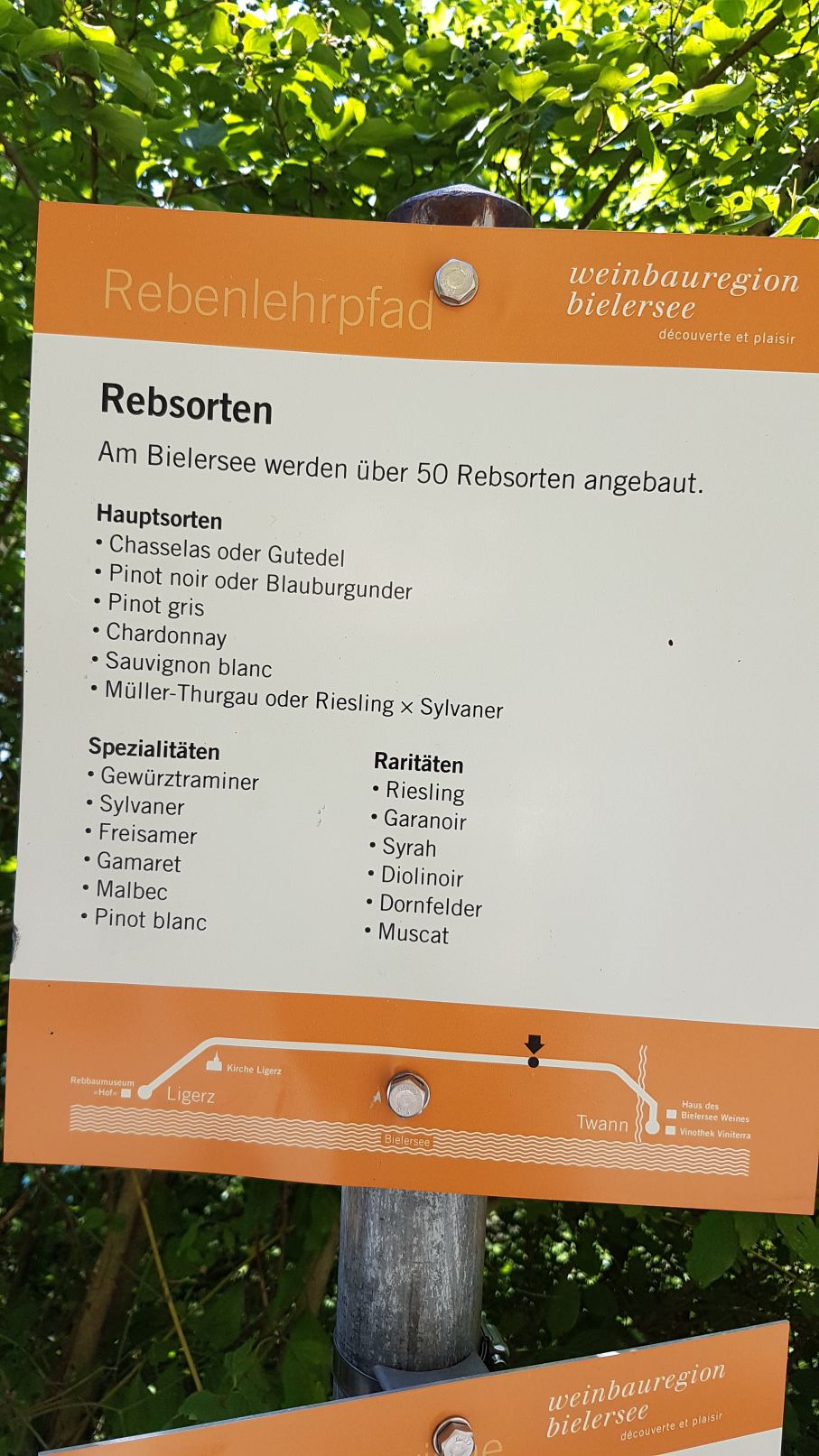 Besonders gefallen hat uns der Rebenweg entlang des Bielersees. Man hat die Möglichkeit, die ganze Strecke von Neuveville bis nach Biel zu laufen – 15km – oder nur einen Teil davon. Wir sind mit dem Zug bis nach Ligerz gefahren und von dort zurück gelaufen.