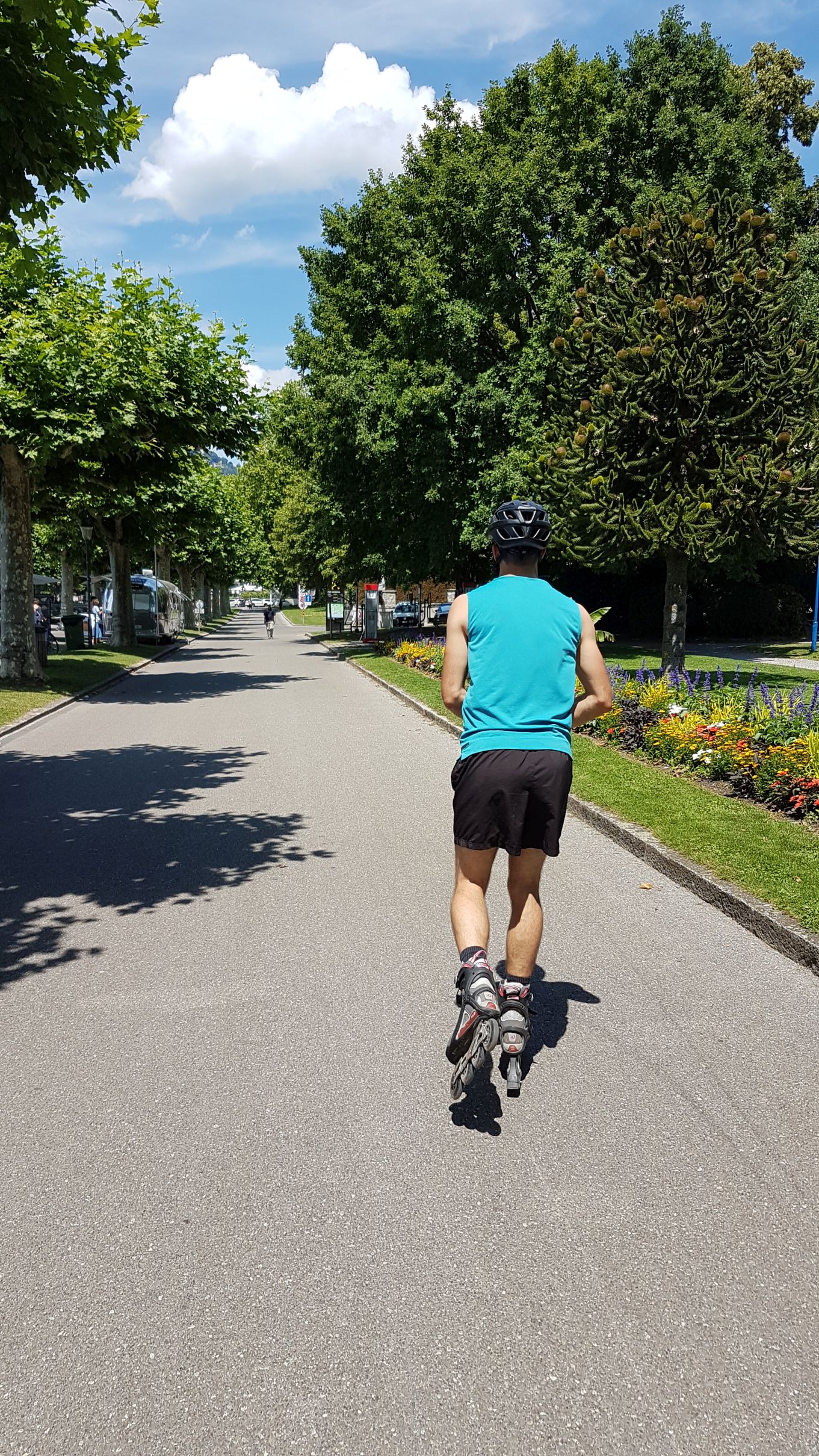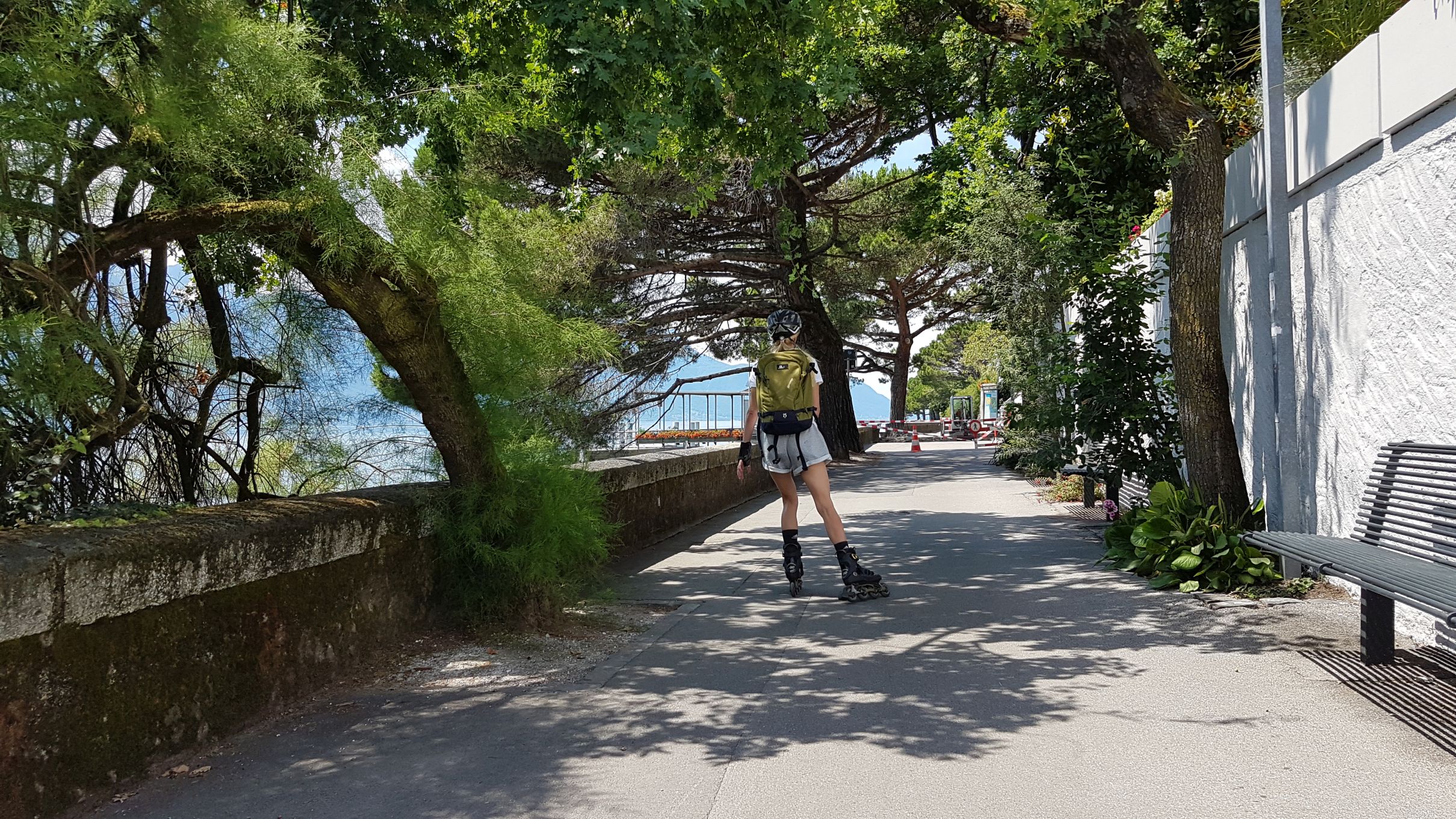 Für diesen Seepromenadenweg haben auch wir uns entschieden, einfach mit den Inlines anstatt zu Fuss. Ein Teil der Schweizer Inline Route Nummer 2 führt von Montreux nach Vevey. Die Strecke lohnt sich auf jeden Fall, man fährt fast durchgehend dem See entlang, kriegt einen Einblick von den beiden Städten und hat unzählige Verpflegungsmöglichkeiten. Wenn da nur nicht noch ein Sturz dazugekommen wäre – Panne Nummer 1 – der zum Glück glimpflich ausgegangen ist. Lästiger war Panne Nummer 2: Kaum wollten wir losfahren in Montreux – wir hatten noch eine gute Stunde bis zu unserem nächsten Ziel Orsières – ging der Kofferraum meines etwas eigentümlichen VW Kombi nicht mehr zu. Vor der Reise haben wir (oder besser gesagt Philipp) eben diesen Kofferraumverschluss noch repariert, damals ging er nicht auf. Jetzt hatten wir das andere Übel. Uns blieb nichts anderes übrig, als die nächste Migros aufzusuchen und Klebestreifen zu kaufen, um den Kofferraum notdürftig zuzukleben. Wie die Bastelei aussieht, folgt im nächsten Beitrag…