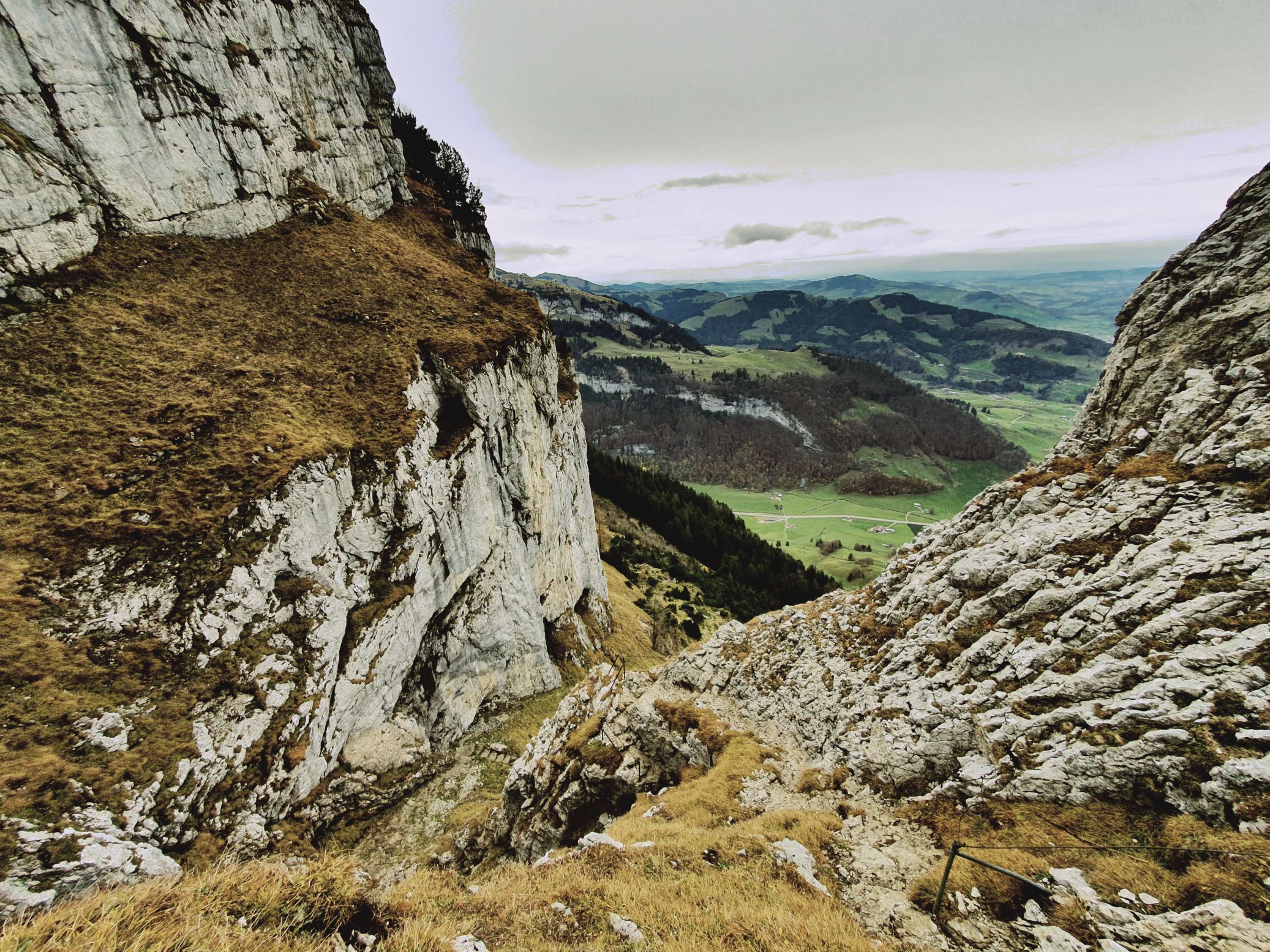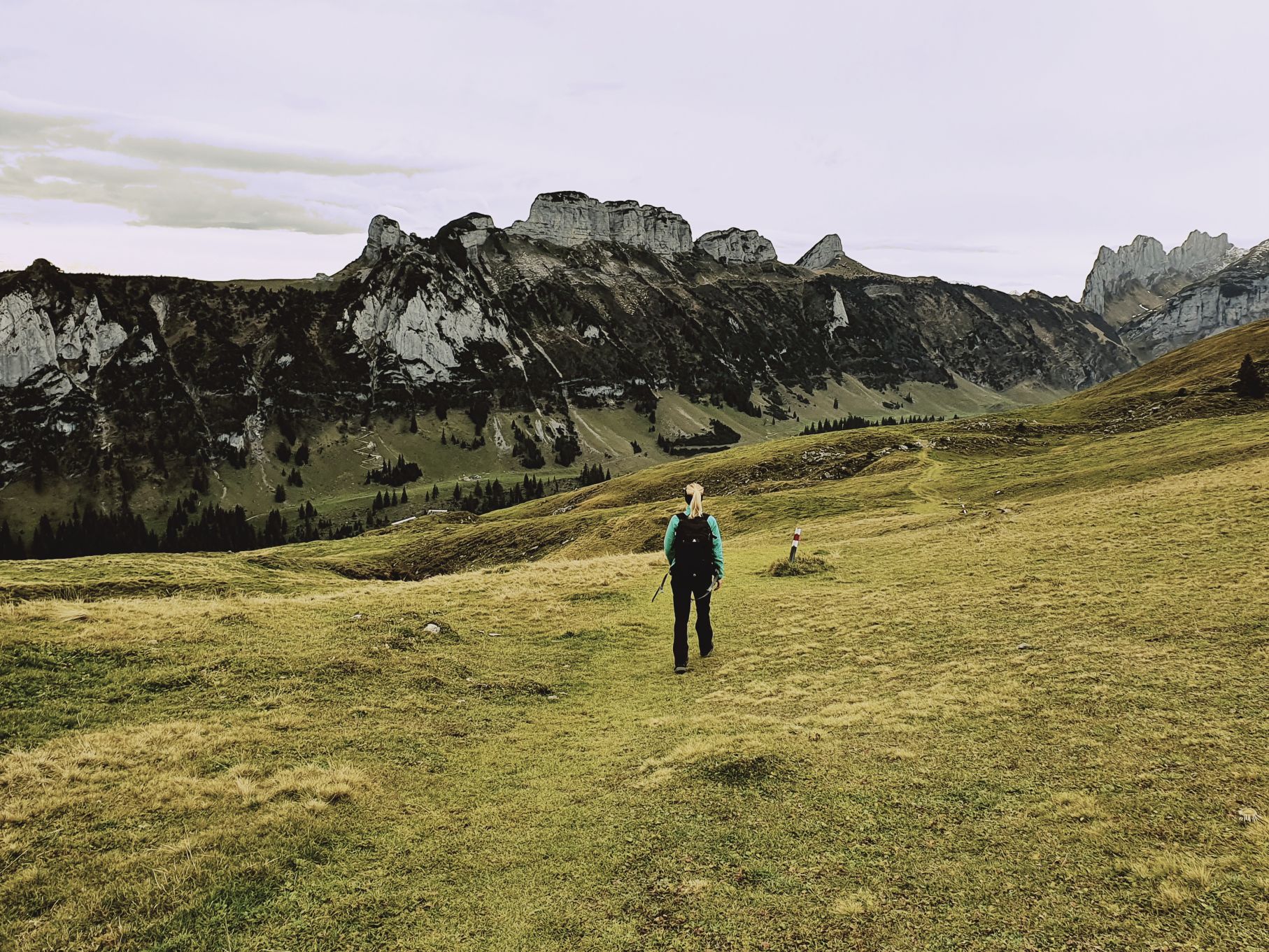 Trotz leicht regnerischem Wetter haben wir uns heute ins wunderschöne Alpsteinmassiv gewagt. Von Brülisau ging es zuerst durch sumpfiges Wiesengebiet, dann im steilen Zickzack hoch zur Zahmen Gocht, von wo man eine herrliche Weitsicht auf das Appenzeller Land hat. Der Durchstieg durch die Zahme Gocht ist ein Erlebnis und hätte unserer Meinung nach noch etwas länger sein können 🙂 Oben angelangt, erwartete uns eine herrlich grosse Wiese, die Alp Sigel, perfekt für ein Picknick. Kaum hatten wir unsere Sandwiches verdrückt, zog Wind und Regen auf. Im Eiltempo kehrten wir über das Plattenbödeli und den Sämtisersee steil hinab nach Brülisau, wo wir dank zügigem Laufen auch schon wieder dampften vor Hitze.