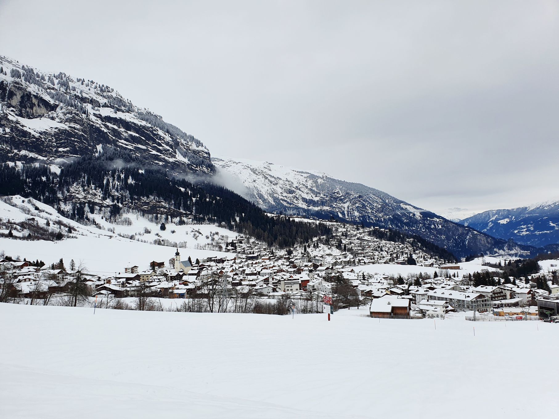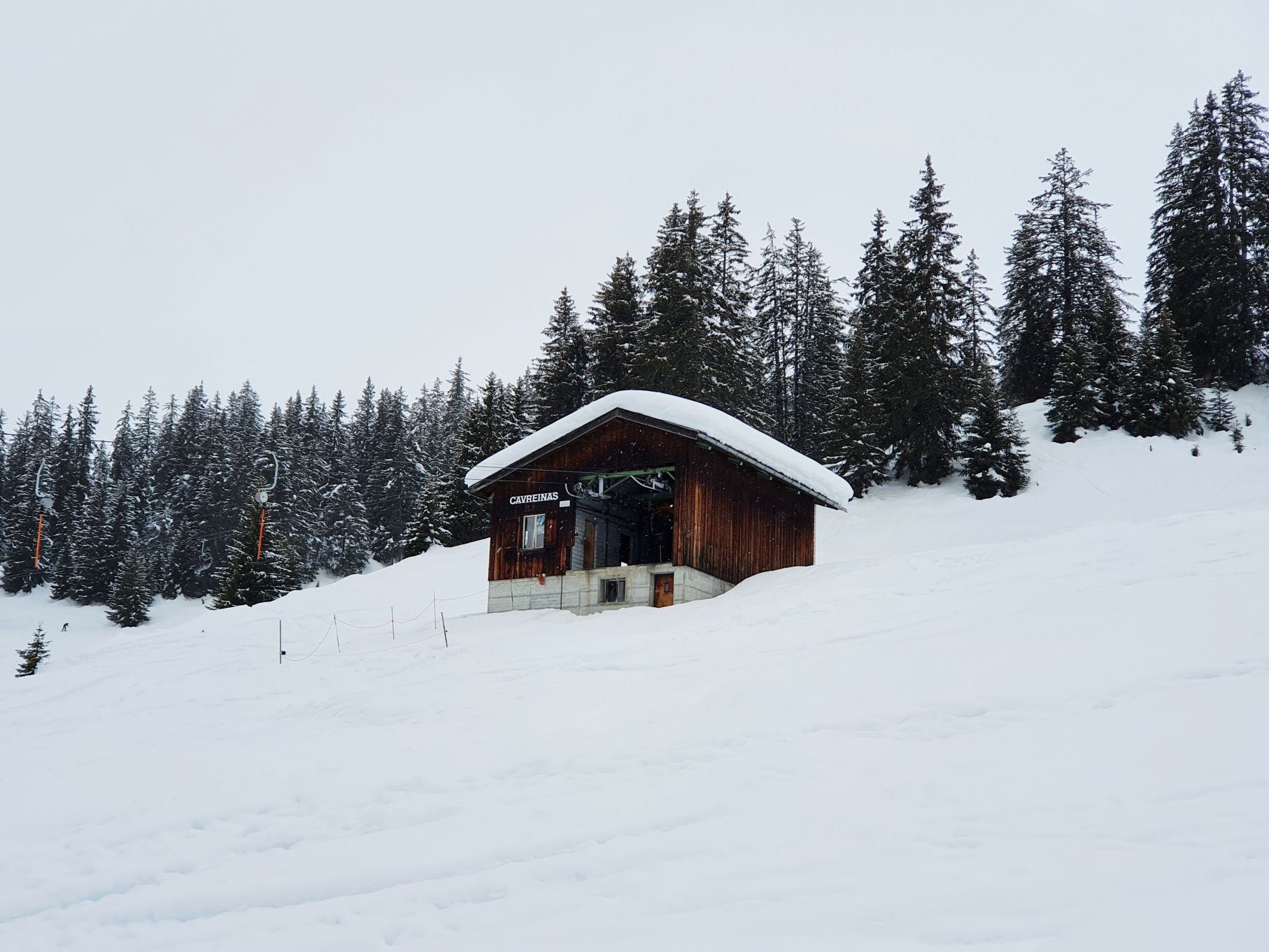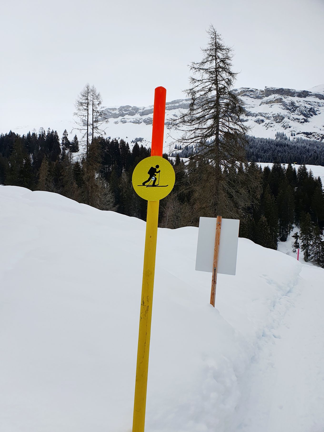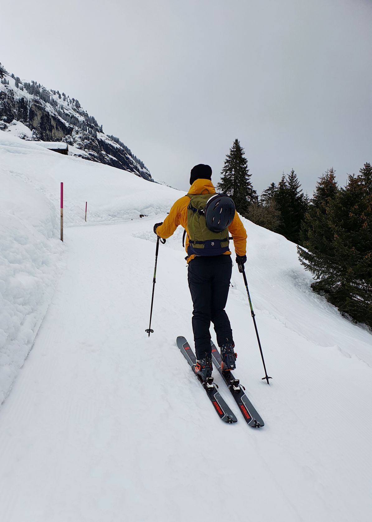 Aufgrund der hohen Lawinengefahr und dem eher trüben Wetter entschieden wir uns heute für die gesicherte Skitour von der Talstation Flims bis zum Bergrestaurant Naraus. Die ersten paar Hundert Meter waren nicht besonders schön, sie führten von der Talstation Flims der Piste entlang hoch. Mit dem Einstieg in den gesicherten Skitourenweg begann der spannendere Teil der Tour. Bis Spaligna ging es stetig angenehm hoch, danach wurde es immer steiler und strenger bis zur Bergstation Naraus. Da uns den letzten Teil der Strecke grusliger Nieselregen begleitete, waren wir dankbar bei der Bergstation Naraus überdachte Bänkli vorzufinden. Wir gönnten uns eine Picknick-Pause und genossen dann die Abfahrt über die Skipiste zurück nach Flims.