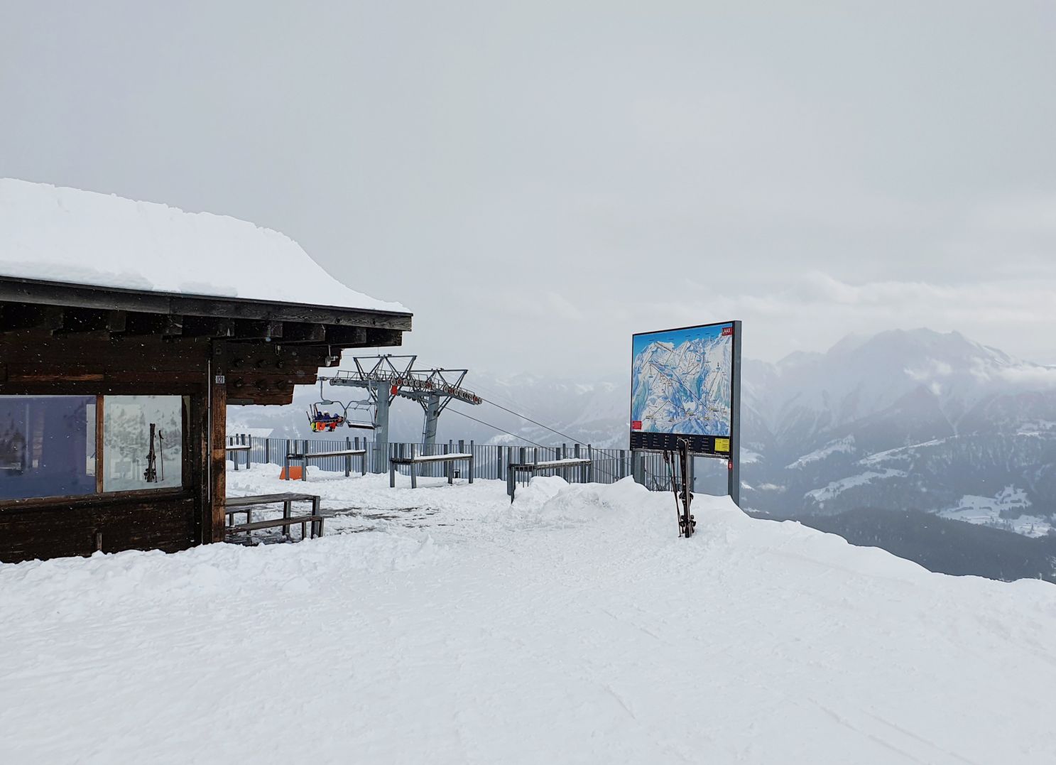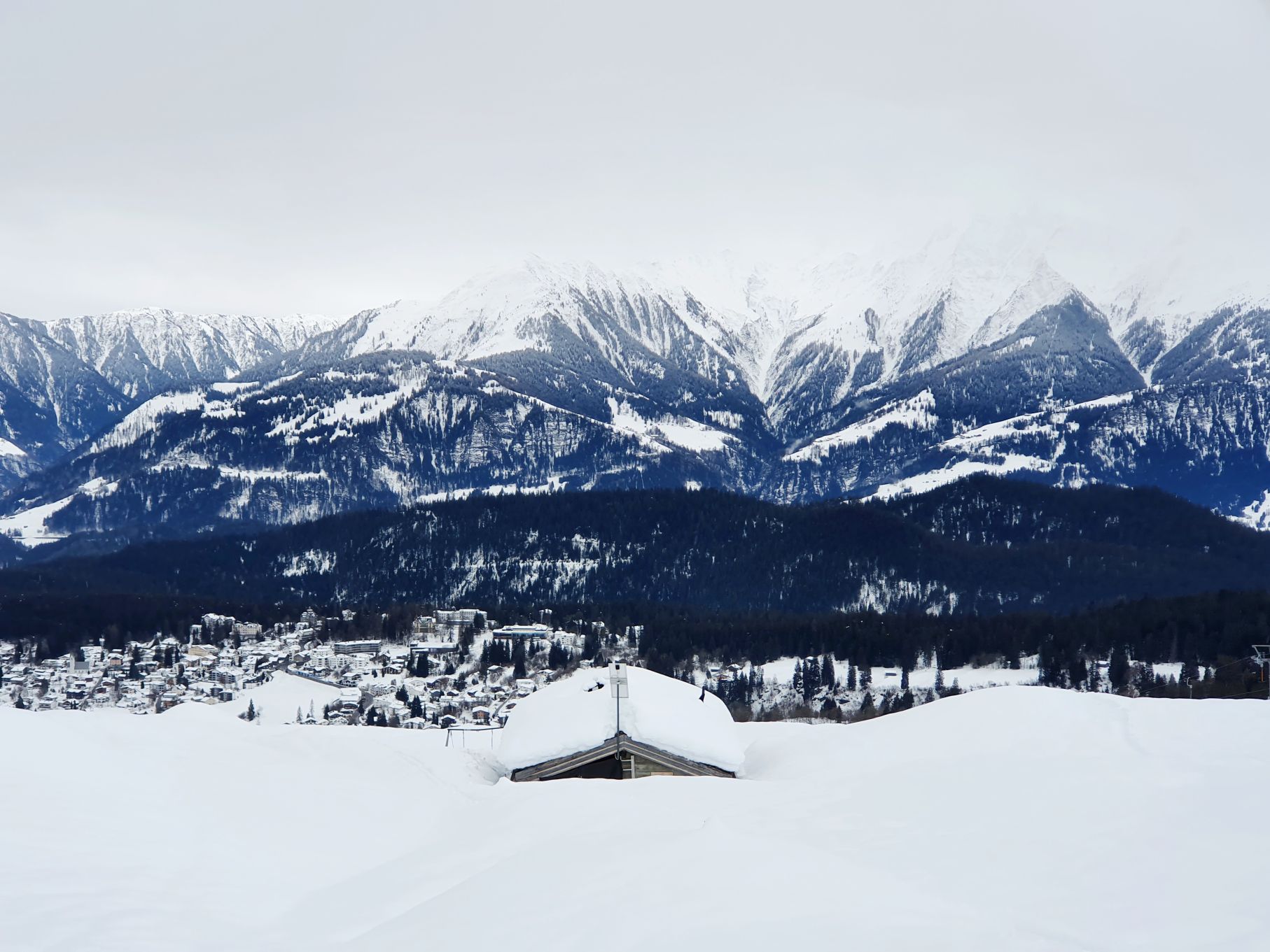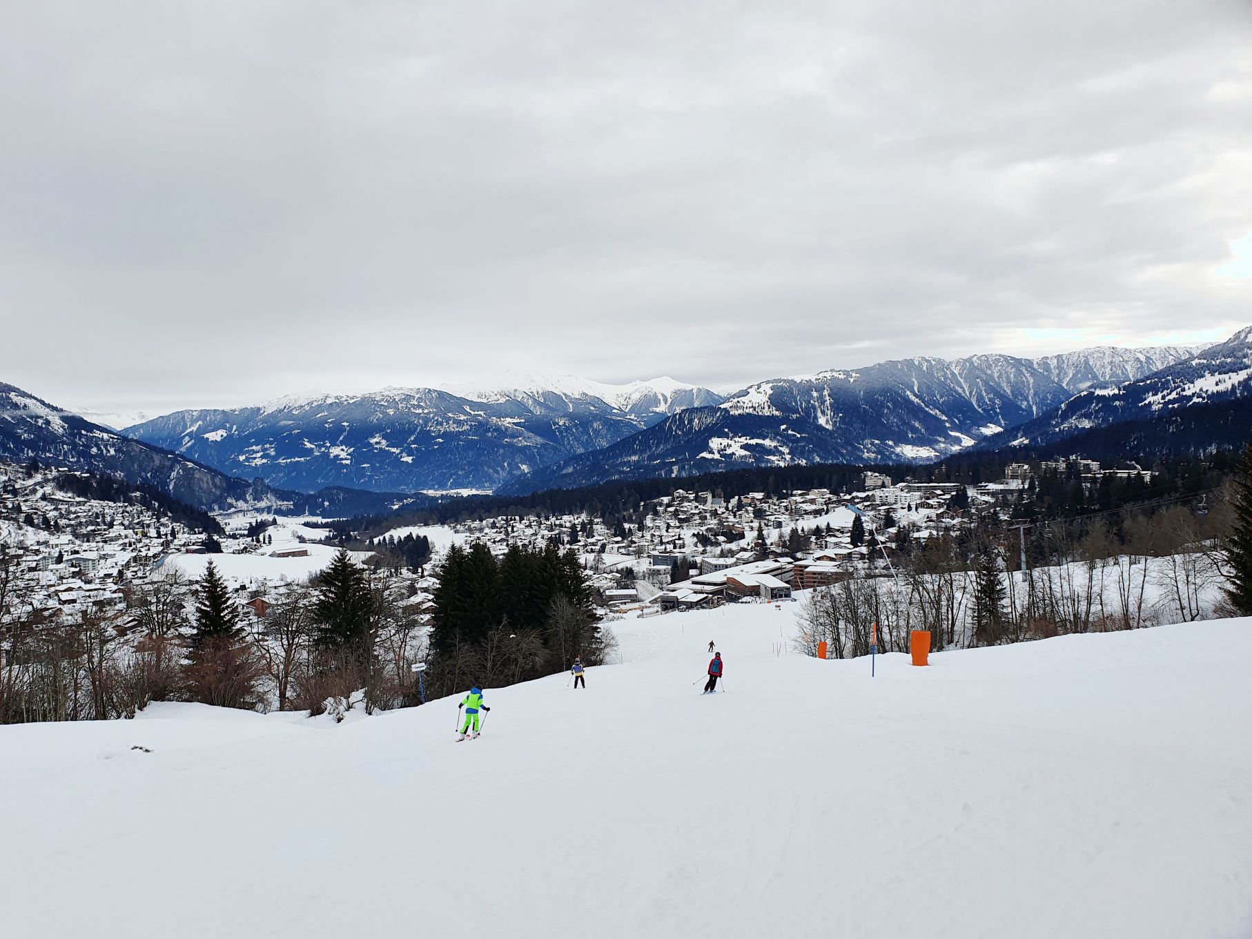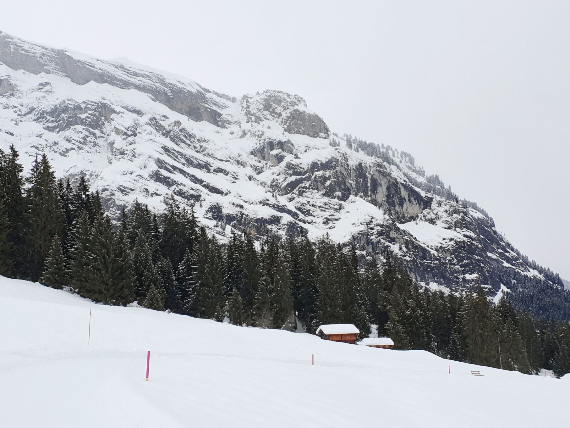 Aufgrund der hohen Lawinengefahr und dem eher trüben Wetter entschieden wir uns heute für die gesicherte Skitour von der Talstation Flims bis zum Bergrestaurant Naraus. Die ersten paar Hundert Meter waren nicht besonders schön, sie führten von der Talstation Flims der Piste entlang hoch. Mit dem Einstieg in den gesicherten Skitourenweg begann der spannendere Teil der Tour. Bis Spaligna ging es stetig angenehm hoch, danach wurde es immer steiler und strenger bis zur Bergstation Naraus. Da uns den letzten Teil der Strecke grusliger Nieselregen begleitete, waren wir dankbar bei der Bergstation Naraus überdachte Bänkli vorzufinden. Wir gönnten uns eine Picknick-Pause und genossen dann die Abfahrt über die Skipiste zurück nach Flims.