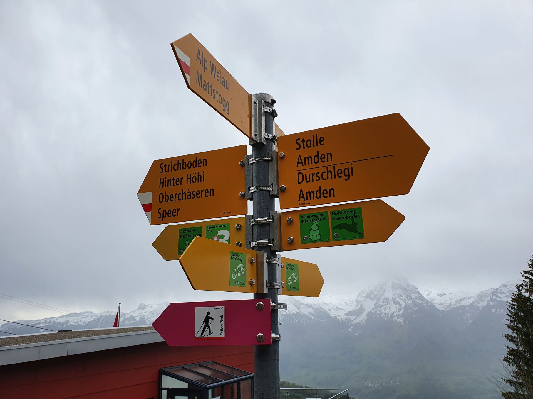 Eigentlich wollten wir heute den Hasenboden Höhenweg hoch über Amden ausprobieren. Der stete Regen hat uns jedoch dazu bewegt, den Rundgang etwas abzukürzen. So sind wir von unserer Ferienwohnung im Dorfkern direkt hoch zur Bergstation Niederschlag gelaufen und von dort – anstatt dem Hasenboden Höhenweg – direkt durch den Wald wieder zurück ins Dorf. Trotz nassen und kühlen Verhältnissen hat die frische Luft gut getan.