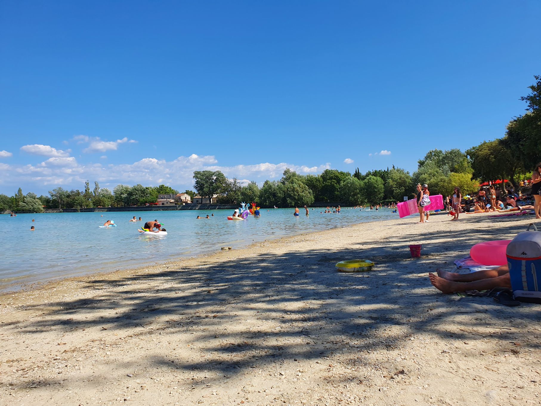 Den Nachmittag verbrachten wir dann bei über 35° am idyllischen, türkisfarbenen See Etang de la Bonde. Das bunte Treiben rundherum versetzte uns im Nullkommanichts in Ferienstimmung.