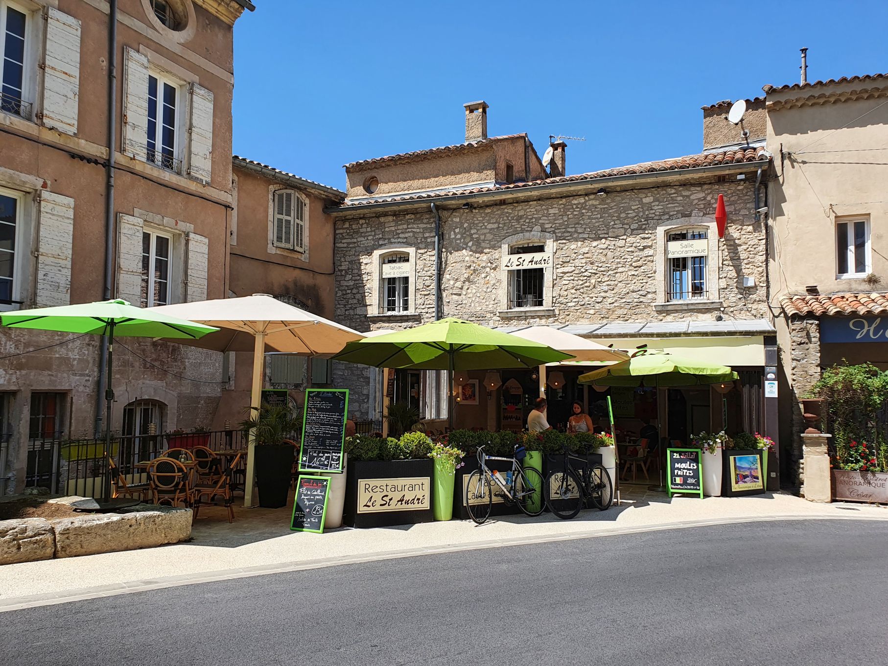Auf dem Weg zurück ins Dorf wechseln sich verfallene Häuser mit liebevoll restaurierten Häusern ab und ein paar gemütliche Restaurants laden zum Verweilen ein. Im unteren Teil des Dorfes steht die neue Kirche, die deutlich sichtbar aus der Masse der Häuser heraussticht. Vom Restaurant La Terrazza hat man eine perfekte Sicht darauf. Bonnieux ist klein aber fein – und hat definitiv Charme.