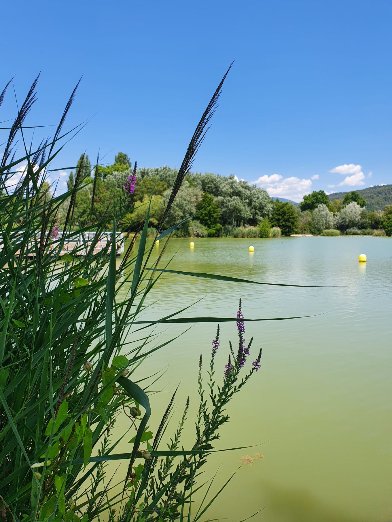 Die sommerliche Nachmittagshitze genossen wir dann am See Plan d’Eau in Apt, etwa 20 Minuten entfernt von Bonnieux. Der See ist nicht nur sehr idyllisch, sondern war zu unserem Erstaunen auch überhaupt nicht überfüllt mit Menschen, so dass wir uns im Schatten der Bäume direkt am See ausbreiten konnten. Neben einem kleinen Café hat es ausserdem ein überwachtes, eingegrenztes Seebecken.