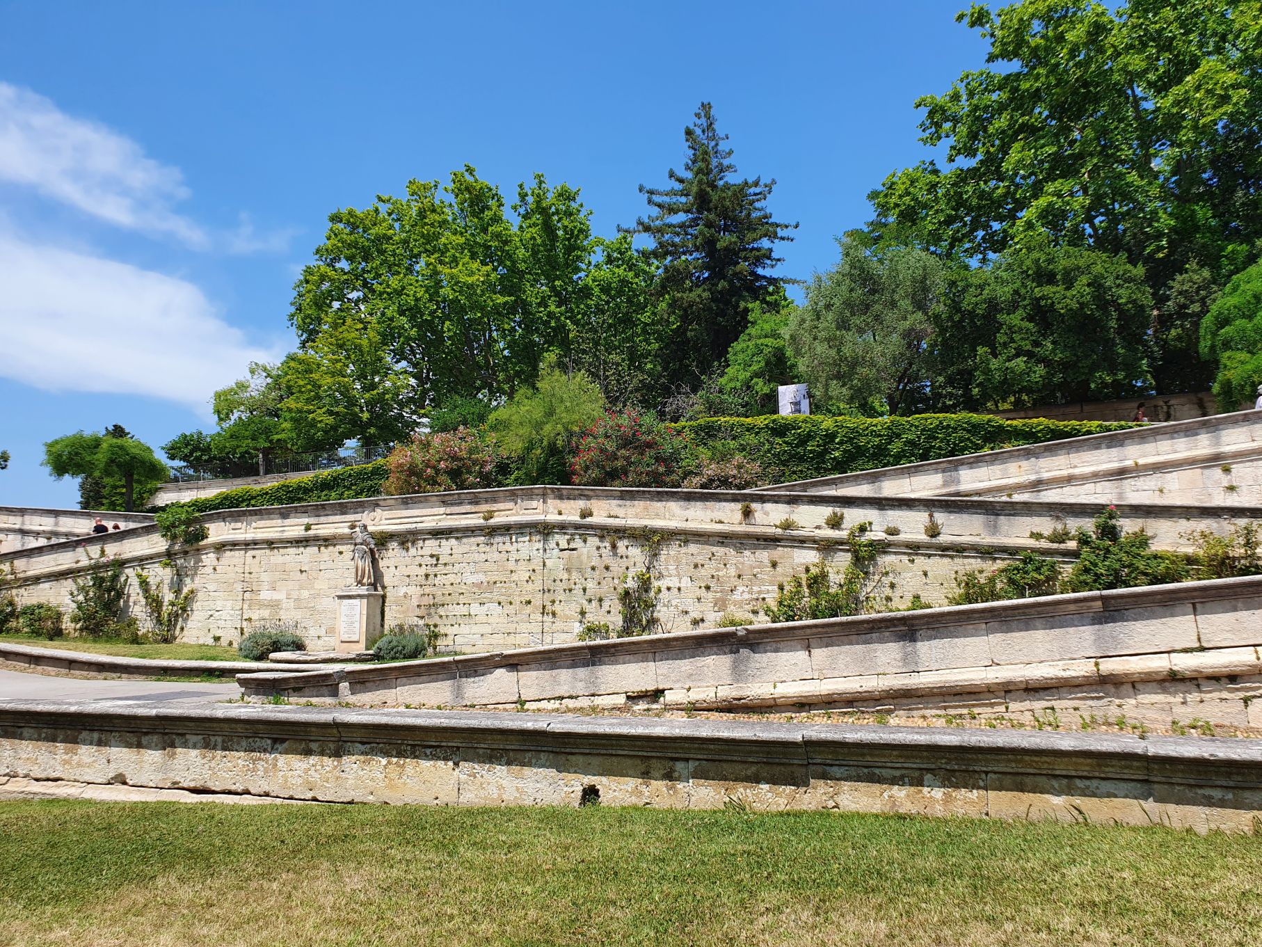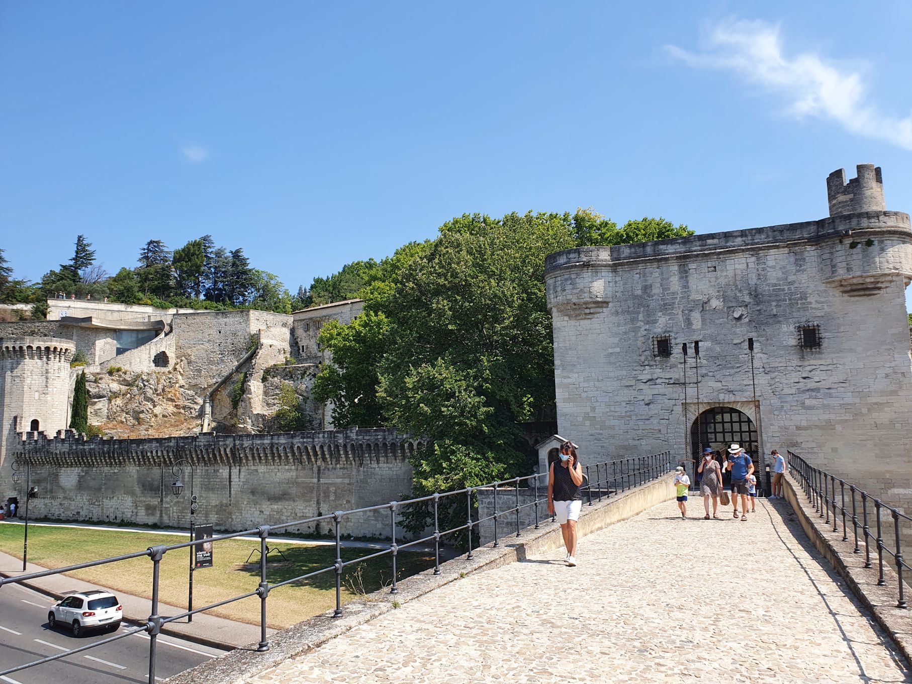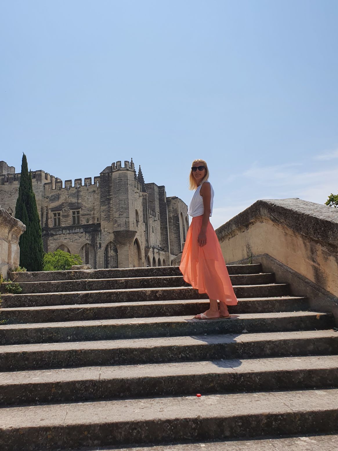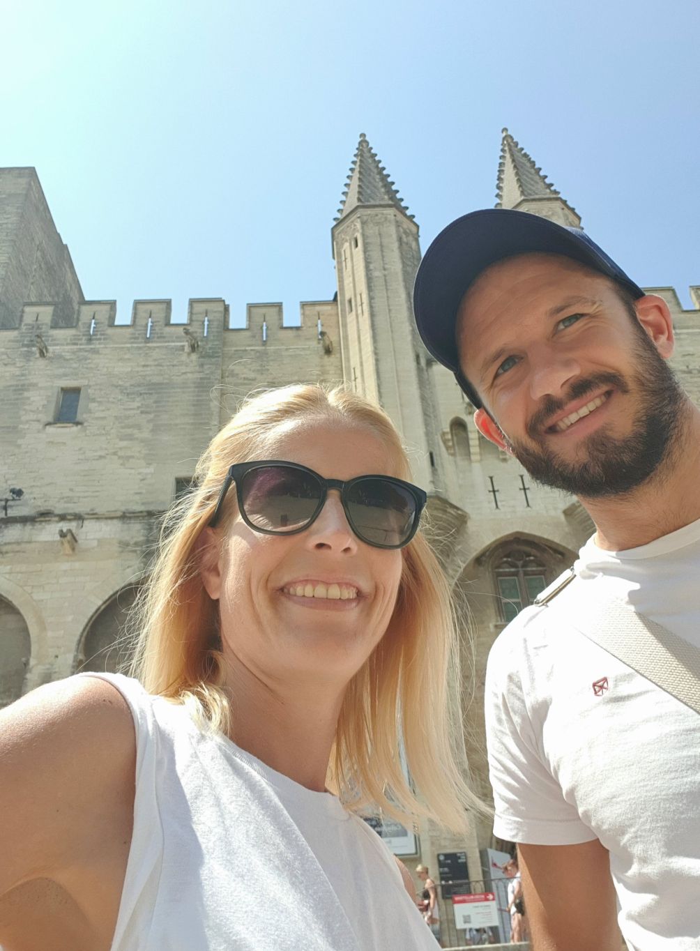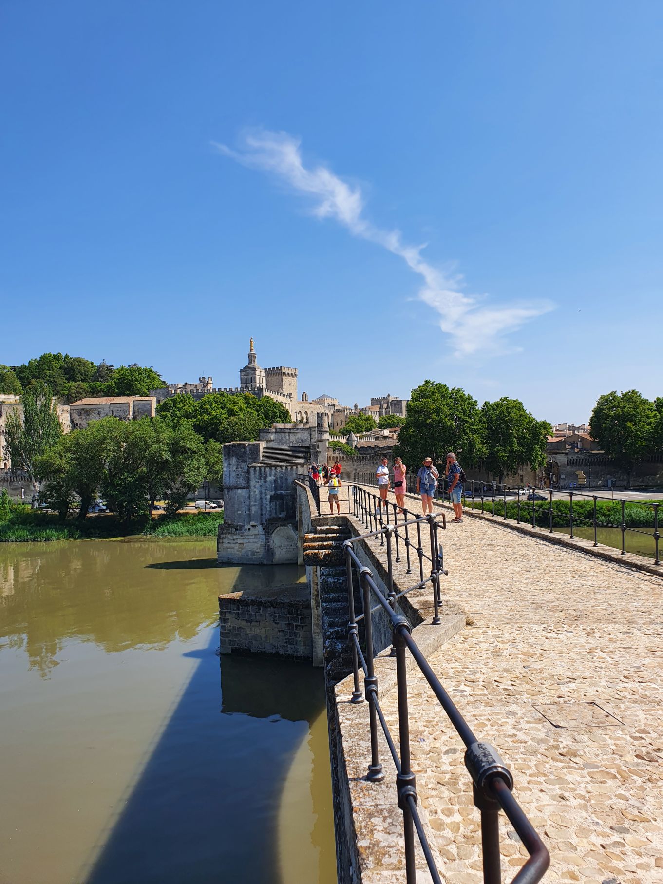 „Sur le pont d’Avignon, le monde y danse“….genau das war heute unser Ziel: auf der mittelalterlichen, halb zerstörten Brücke Avignons zu stehen. Und natürlich, wenn wir schon in Avignon sind, den Palais des Papes zu bestaunen. So machten wir uns nach einem morgendlichen Training in unserem privaten Garten auf nach Avignon – und waren beeindruckt vom touristischen Flair der Stadt, sowie von den gigantischen Altstadtmauern und des dazugehörigen Palastes.
