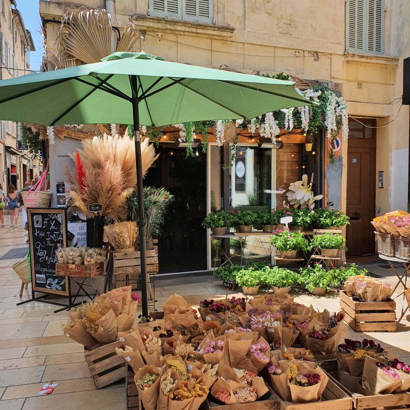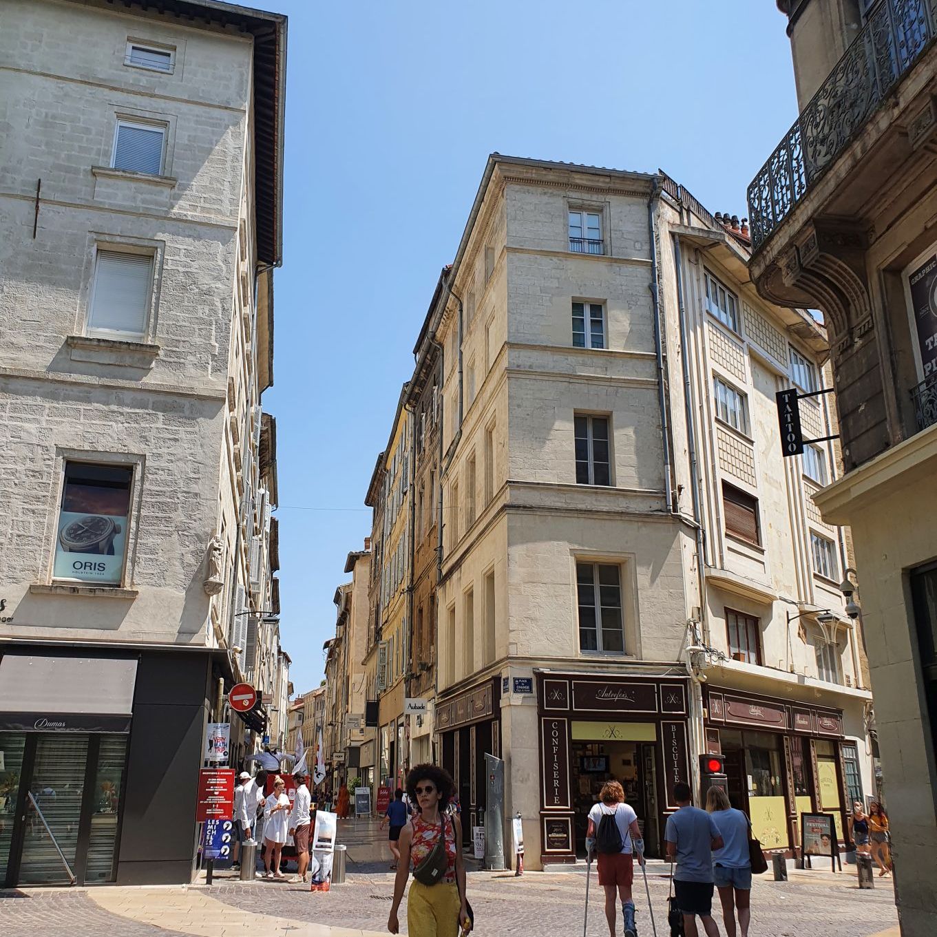 Avignon ist heute nicht nur für ihr kulturelles Erbe, sondern auch für ihr alljährliches Theaterfestival bekannt, das grösste in ganz Frankreich. Es geht über mehrere Wochen im Juli und zieht Kulturliebhaber:innen aus aller Welt an. Auch auf den Strassen der Altstadt ist die Freude am Theaterfestival spürbar, immer wieder verteilen maskierte Theaterfreunde Flyer.