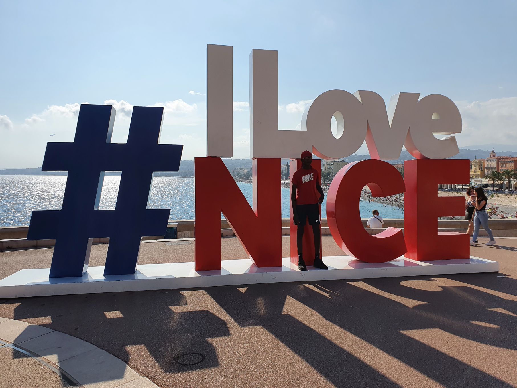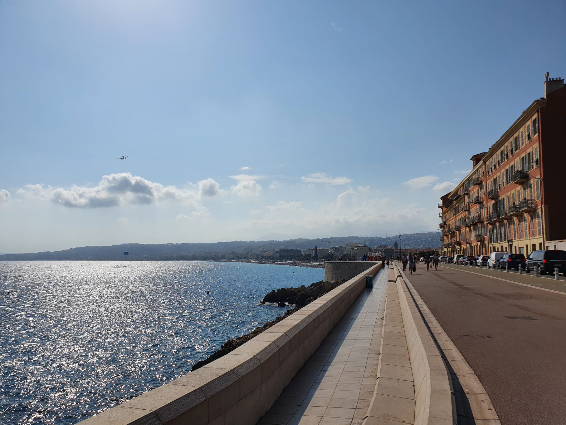 Bei strahlendem Sonnenschein wollten wir am Sonntagmorgen als allererstes einen Eindruck von unserem neuen Aufenthaltsort Nizza gewinnen. Unsere Wohnung in Les belles terres lag ziemlich genau am Ende der Promenade des Anglais etwas oberhalb gelegen. So beschlossen wir, der legendären, sieben Kilometer langen Uferstrasse, die von den Einheimischen La Prom genannt wird, entlang bis in das Stadtzentrum zu laufen.