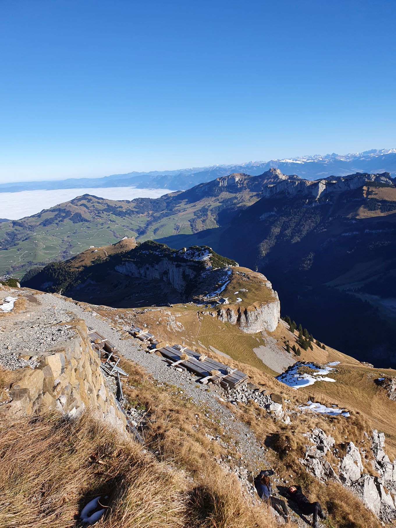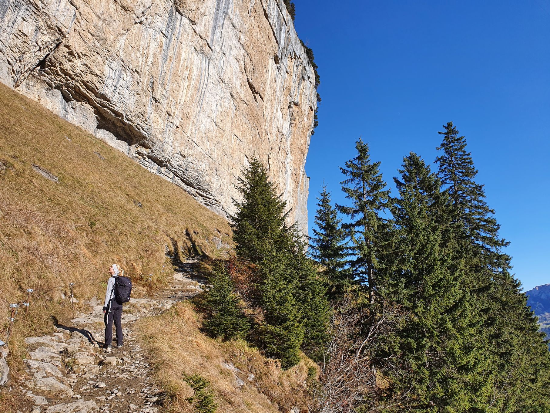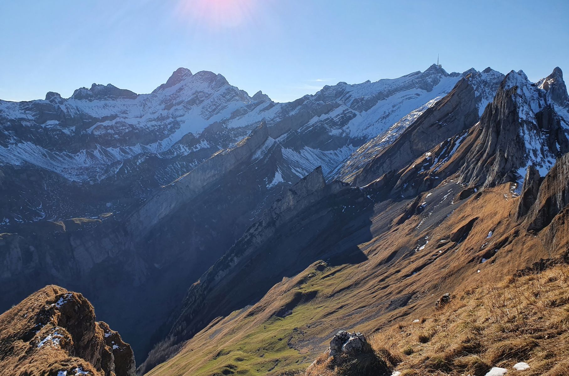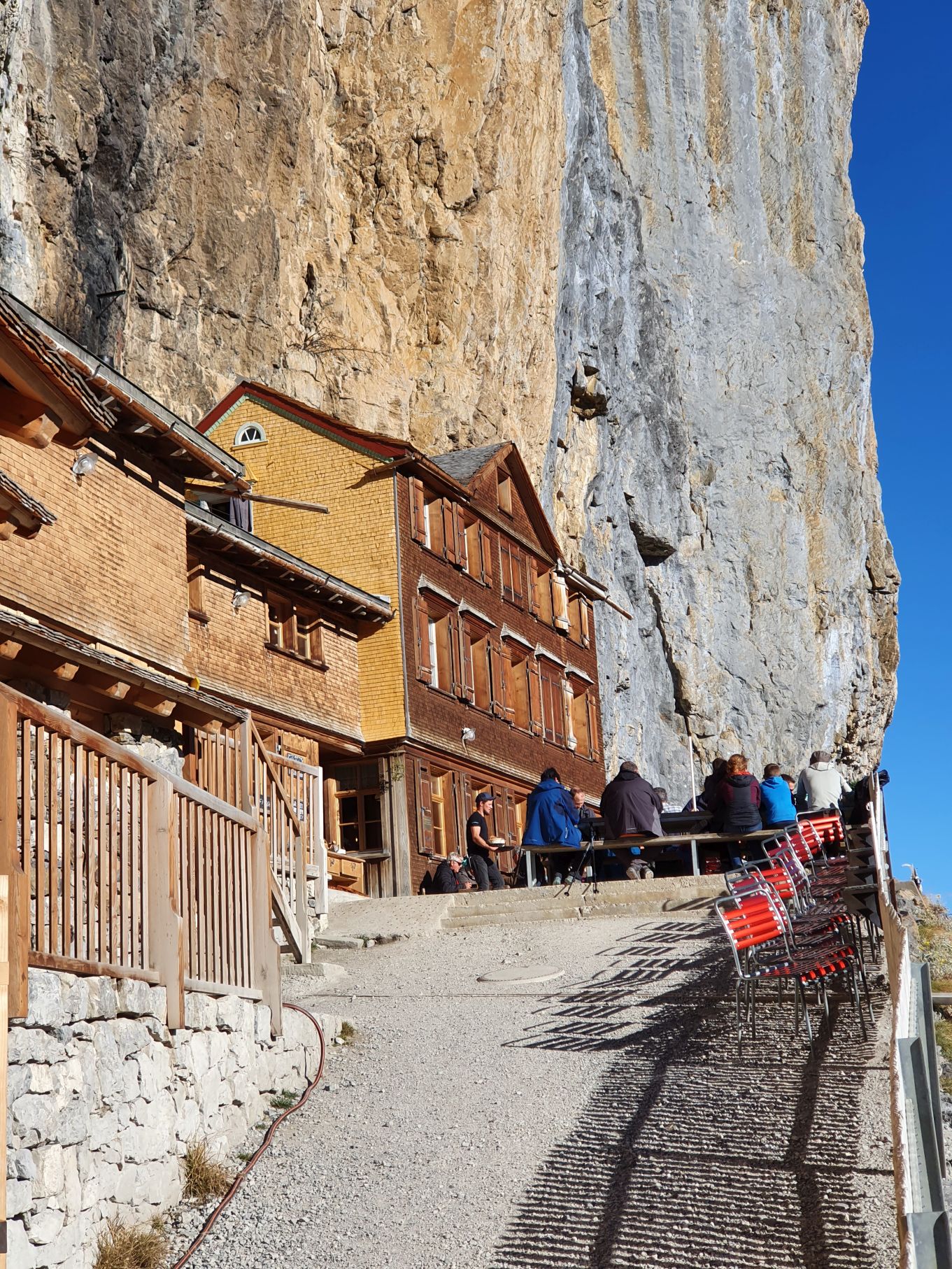 An so trüben Novembertagen wie heute gibt es nur eins: raus und in die Höhe! So fuhren wir bei tiefen Temperaturen am Sonntagmorgen Richtung Wasserauen, wo unsere Wanderung – ein Alpstein-Klassiker – begann. Nach einem kurzen ebenen Stück ging es bald im Zickzack steil rechts hoch bis zum weltbekannten, in den Fels gebauten Bergrestaurant Äscher-Wildkirchli, welches wie so oft masslos überfüllt war. Aus diesem Grund marschierten wir gleich weiter auf die Ebenalp, wo wir einen Punsch tranken und die herrliche Aussicht auf den Hohen Kasten und das Rheintaler Nebelmeer genossen. Danach nahmen wir das letzte Wegstück via Chlus hoch zum Schäfler in Angriff. Und dort wurden wir dann mit herrlichem Sonnenschein, einer grandiosen Aussicht auf den Säntis und das Alpsteinmassiv und einem feinen Zmittag für den Aufstieg belohnt. Zurück liefen wir dann nur noch bis zur Ebenalp, wo wir die Bahn zurück nach Wasserauen nahmen.