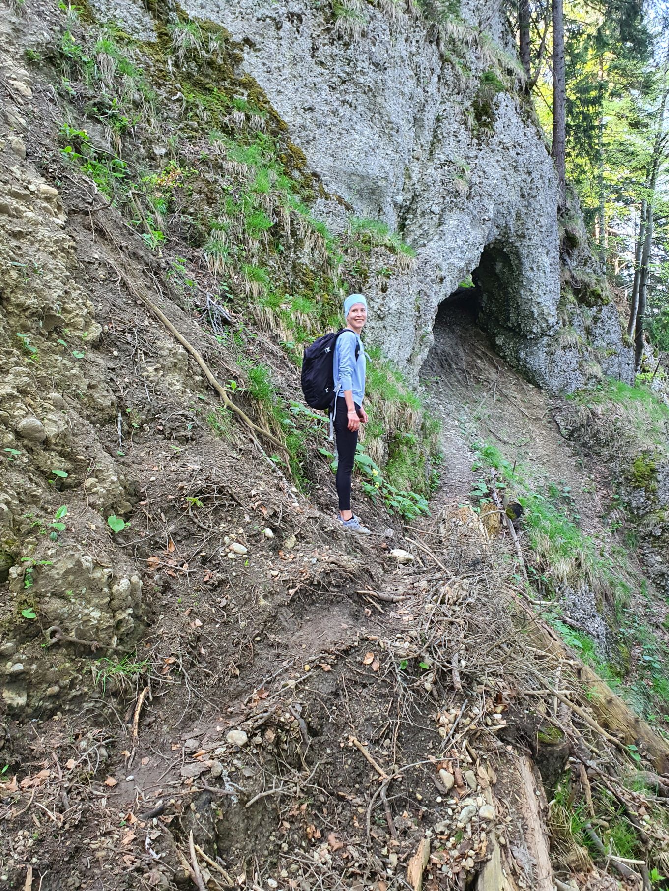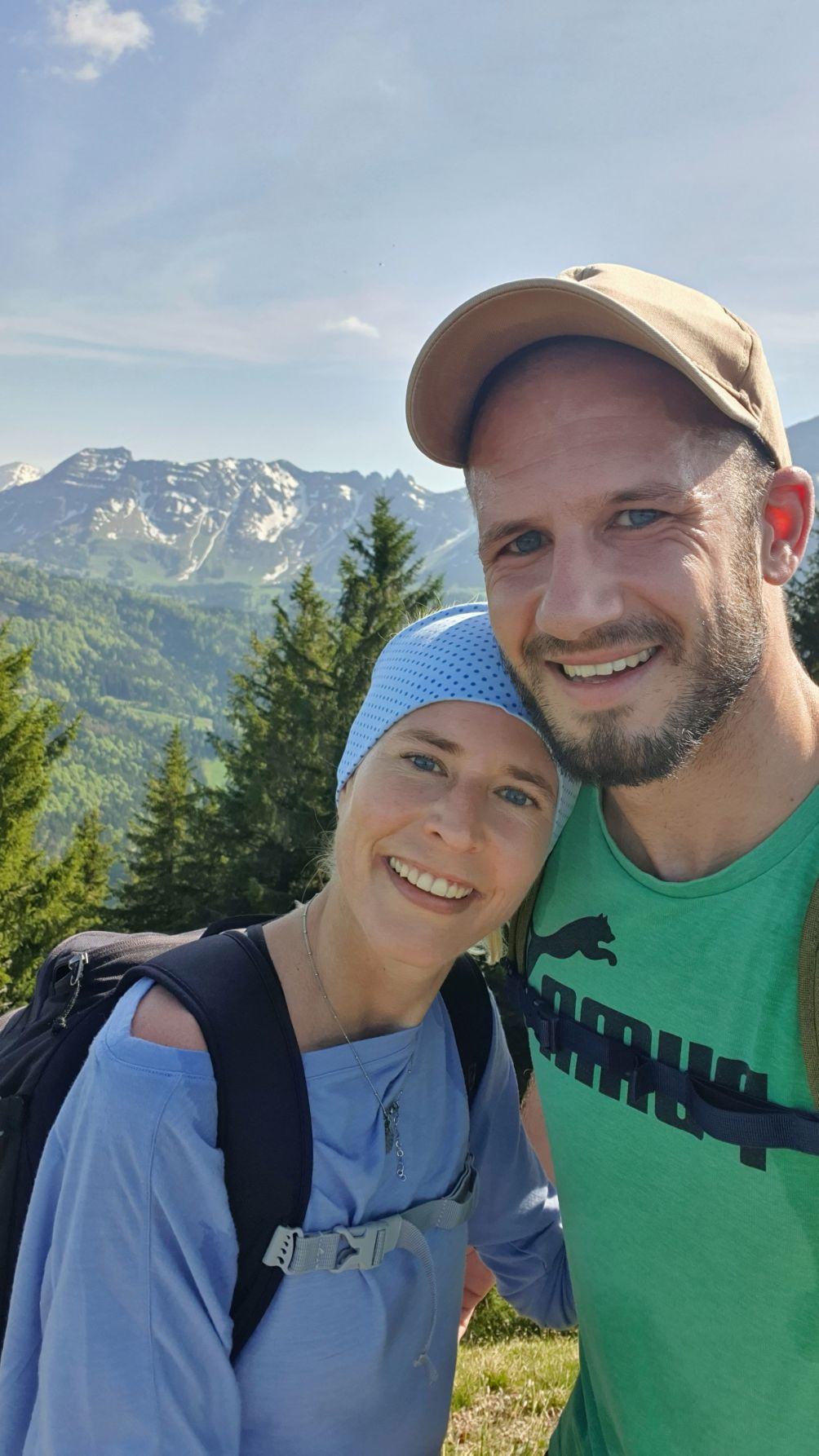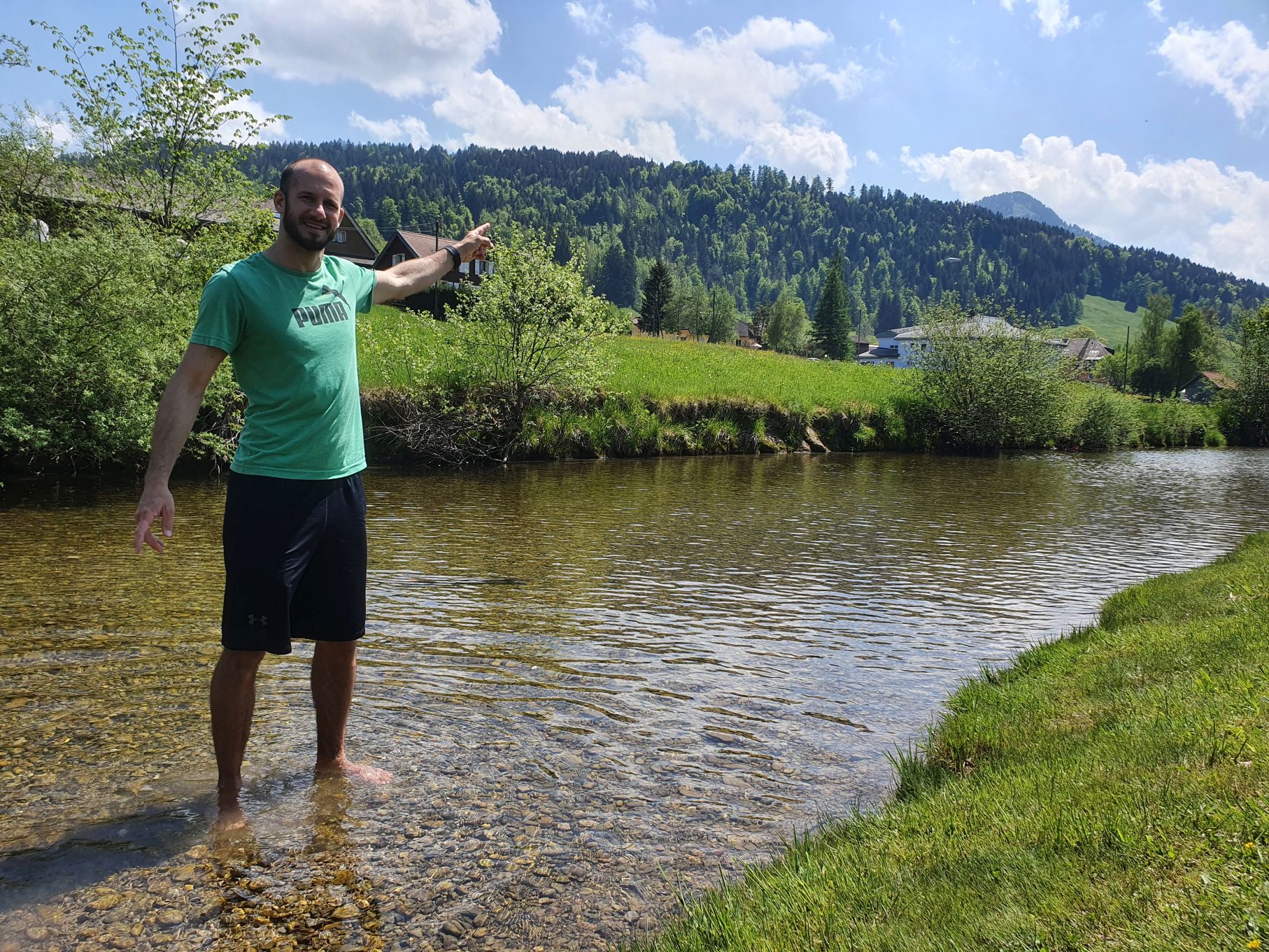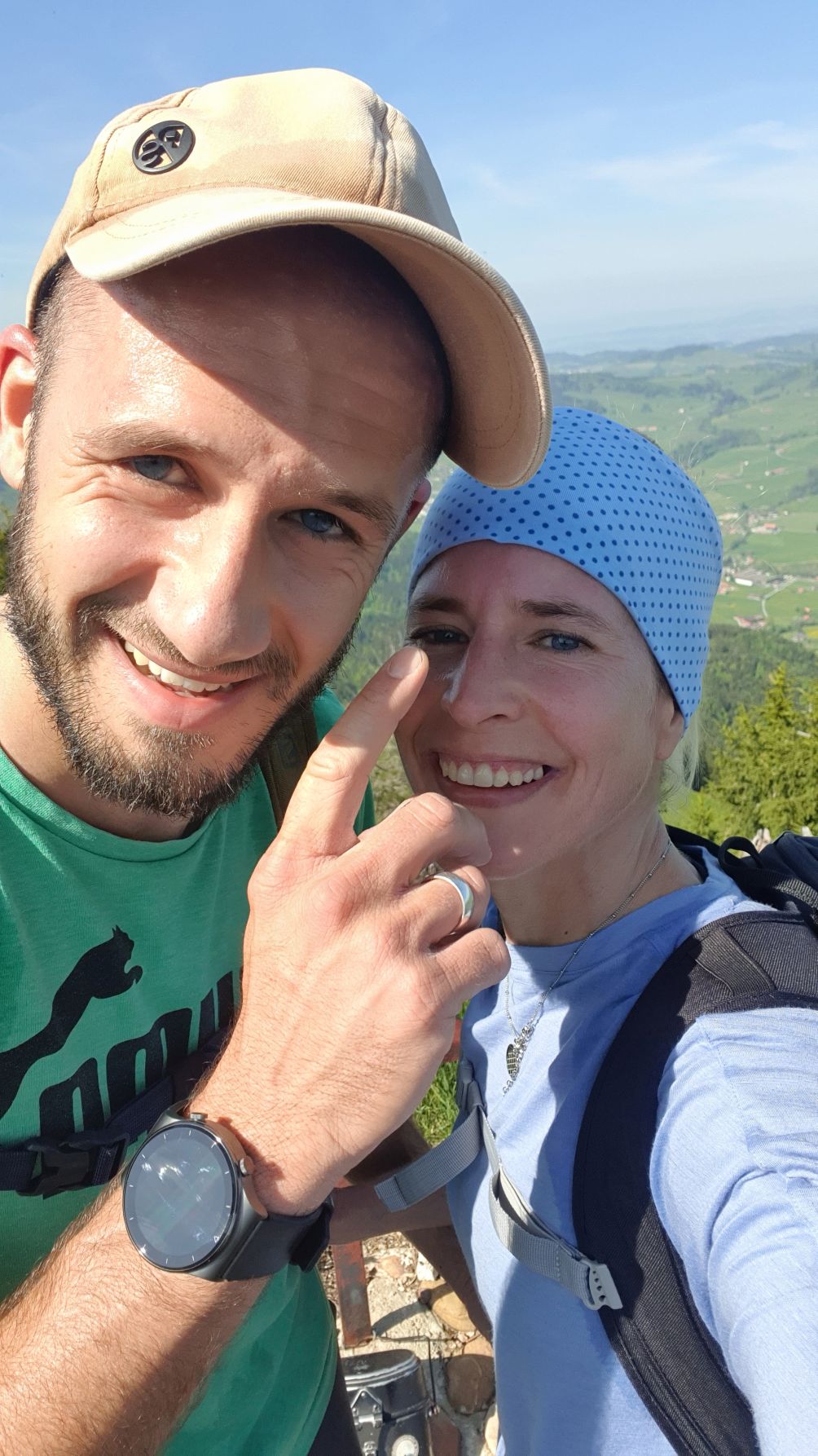 Nach einer Vollmondnacht sind wir heute Morgen bereits vor 6 Uhr aufgewacht und haben die Gunst der Stunde genutzt. Noch vor 9 Uhr machten wir uns von Urnäsch aus auf den Weg Richtung Spitzli. Die ersten zwei Kilometer geradeaus bis zur Grünau waren ein lockeres Aufwärmen, danach ging es dafür umso steiler hoch. Zuerst über weite, von Kühen beweidete Wiesen, dann noch steiler durch einen endlos scheinenden Wald, der mit einem lustigen Felsdurchschlupf endete. Von dort führten die letzten Höhenmeter wieder über Wiesen bis hinauf zum Spitzli, wo ein verhältnismässig kleines Kreuz auf uns wartete. Um 10.30 Uhr genossen wir bei herrlichem Sonnenschein bereits die Aussicht auf den Säntis, so früh haben wir es noch nie geschafft! Und so gönnten wir uns auf dem Rückweg auf der Petersalp noch ein Nickerchen, bevor wir bei sommerlichen Temperaturen das letzte Stück über Blattendürren auf uns nahmen. Als perfekten Abschluss durften unsere Füsse noch eine Runde im eiskalten Dürrenbach kneippen. Was für ein herrlicher Tag!