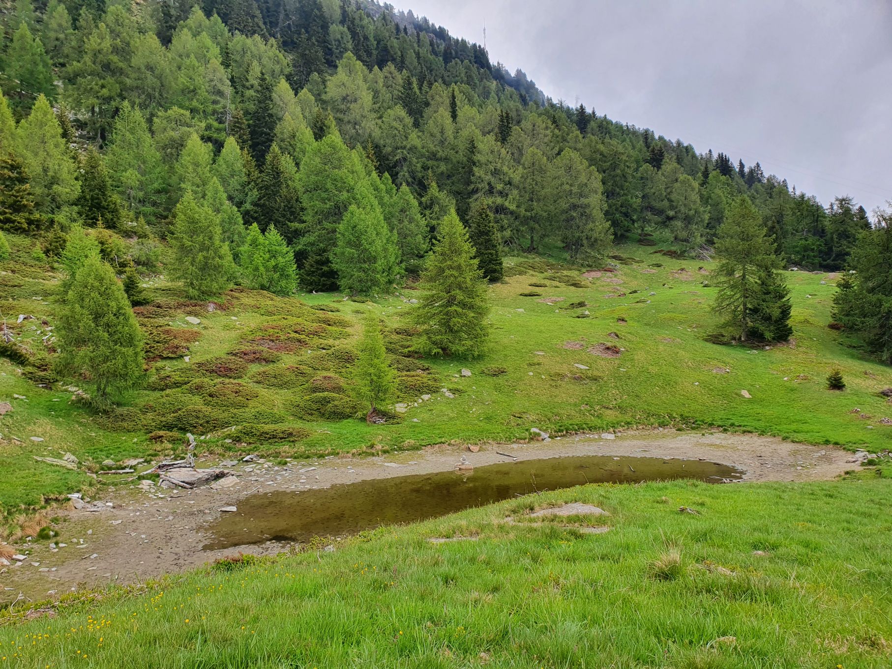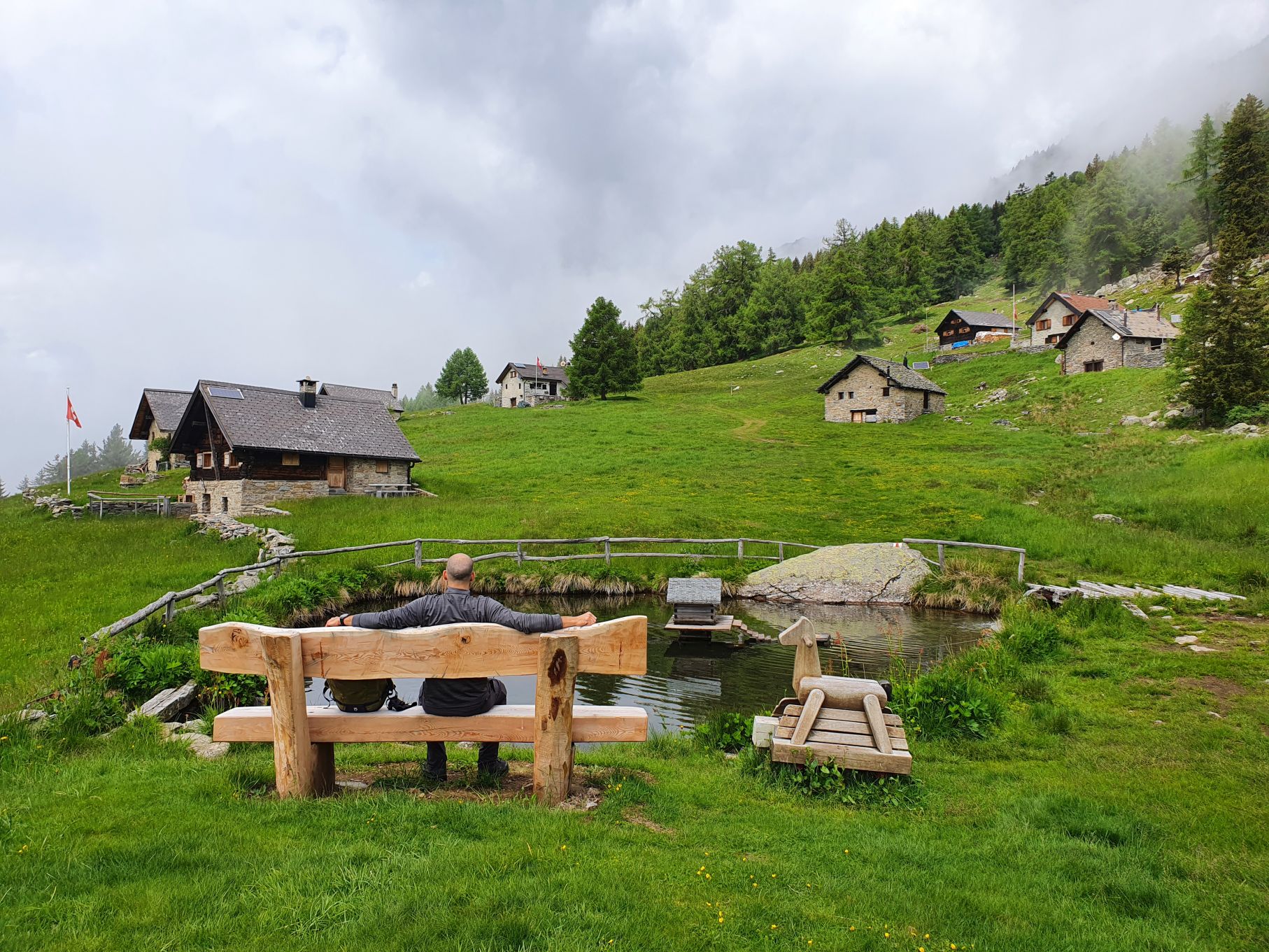 Das Wetter in den Bergen ist unberechenbar und kann sich innert Minuten ändern. Das haben wir heute zu sehen und zu spüren bekommen. Direkt von unserem Chalet aus machten wir uns auf den Weg zum idyllischen Weiler Puscett, wo wir die wunderschönen Rusticos bewunderten, das zügig wechselnde Wetter beobachteten und den zwei herzigen Entlein eine Weile beim Sein zuschauten. Die letzten Höhenmeter führten dann quer durch den Wald hoch bis auf eine Ebene mit einem künstlichen See, gleich unterhalb des Berges Matro gelegen. Und kaum hatten wir es uns auf dem Stein gemütlich gemacht, schien uns auch schon die Sonne an den Rücken und wärmte uns wunderbar. Das Ganze war jedoch von kurzer Dauer, wenigen Minuten später schlotterten wir schon wieder leise vor uns hin. Auf dem Rückweg waren wir daher umso schneller, die Vorfreude auf die Wärme im Chalet zog uns förmlich nach Hause.