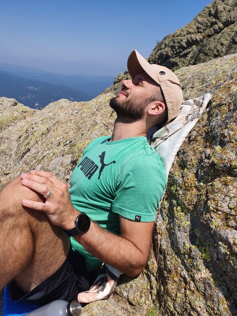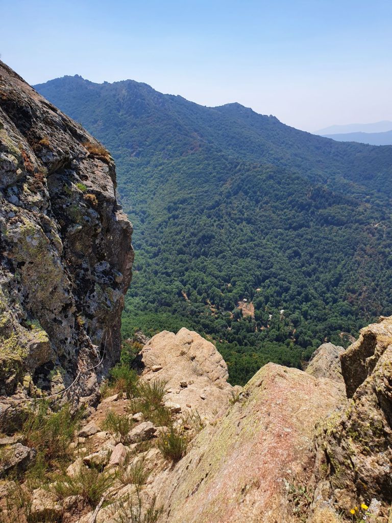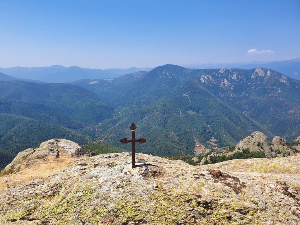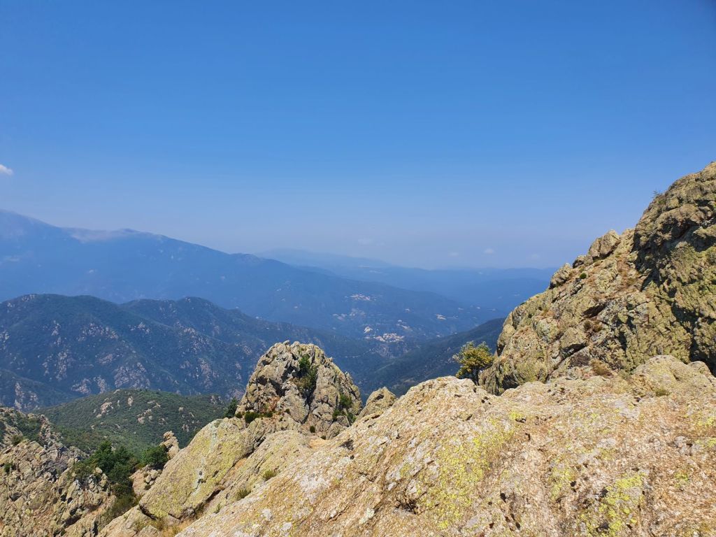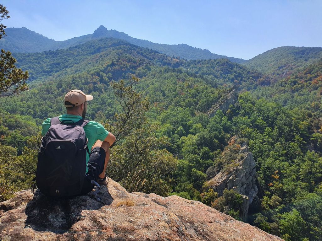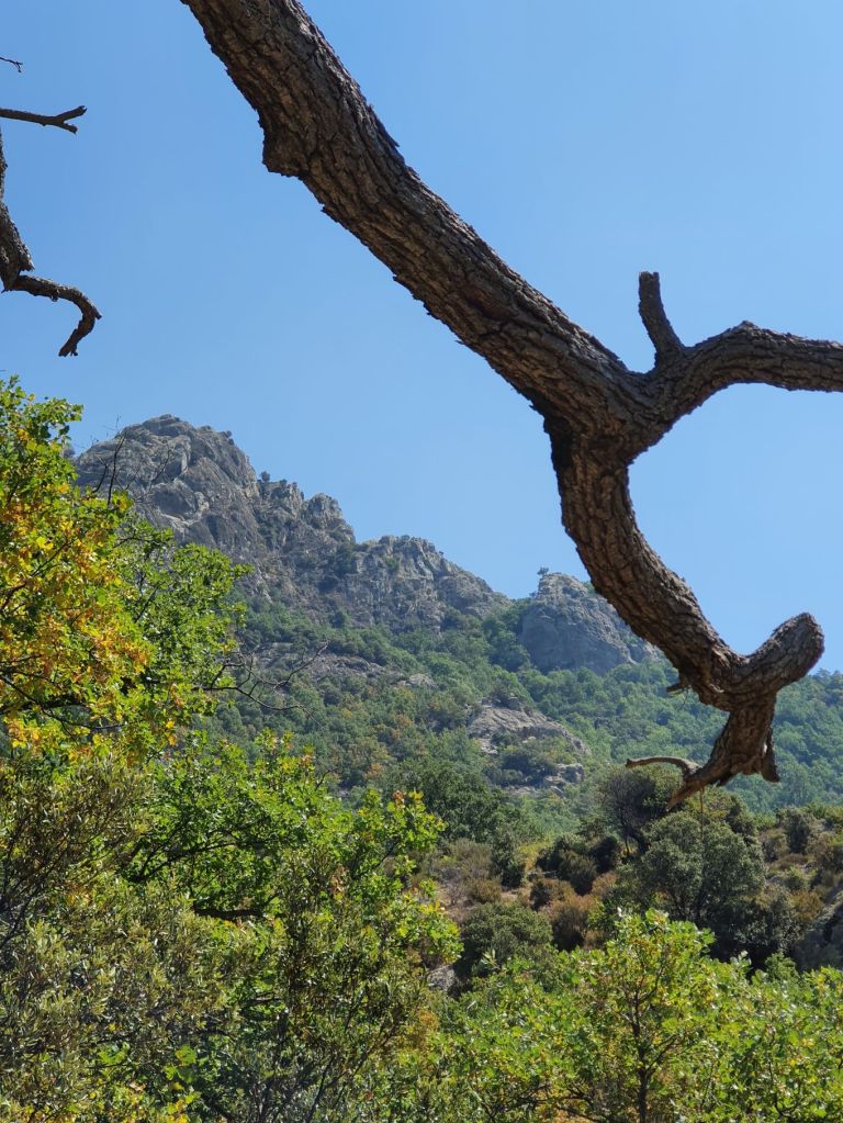 Nach einem wunderbar ruhigen Frühstück vor unserem katalanischen Steinhüttchen und einer abenteuerlichen Autofahrt zur Schutzhütte Moli de la Paleta, etwas oberhalb von Montalba gelegen, waren wir bereit für die Wanderung auf den Roc Saveur. Nach etwa einem Kilometer weiter der staubigen Bergstrasse entlang bogen wir links ab und liefen auf mit Laub überhäuften Wegen stetig hoch bis zum Fuss des Felsens Roc Saveur, wo es dann richtig steil und steinig wurde. Die letzten hundert Höhenmeter waren wir teilweise auf allen Vieren oder mit an den Steinen angemachter Seilhilfe unterwegs. Oben angekommen, machten wir es uns auf einem Stein gemütlich und sogen die herrliche Aussicht auf die umliegenden Gipfel, die weiten Waldflächen und das winzige Dörfchen Amélie-les-Bains in uns auf. So ganz alleine auf dem Gipfel die Schönheit der Natur zu geniessen ist ein unschlagbares Gefühl. Unten waren wir dann ziemlich schnell wieder. Die Vorfreude auf eine Abkühlung im Fluss Tech, beim Dorfeingang von Arles-sur-Tech, trieb uns förmlich an. Immerhin war es mindestens 34° heiss! Der Tech ist 84km lang, entspringt den Pyrenäen und mündet bei Argelès-sur-Mer, nahe der spanischen Grenze, ins Mittelmeer. So schnell im Wasser wie heute war ich wohl selten 😉