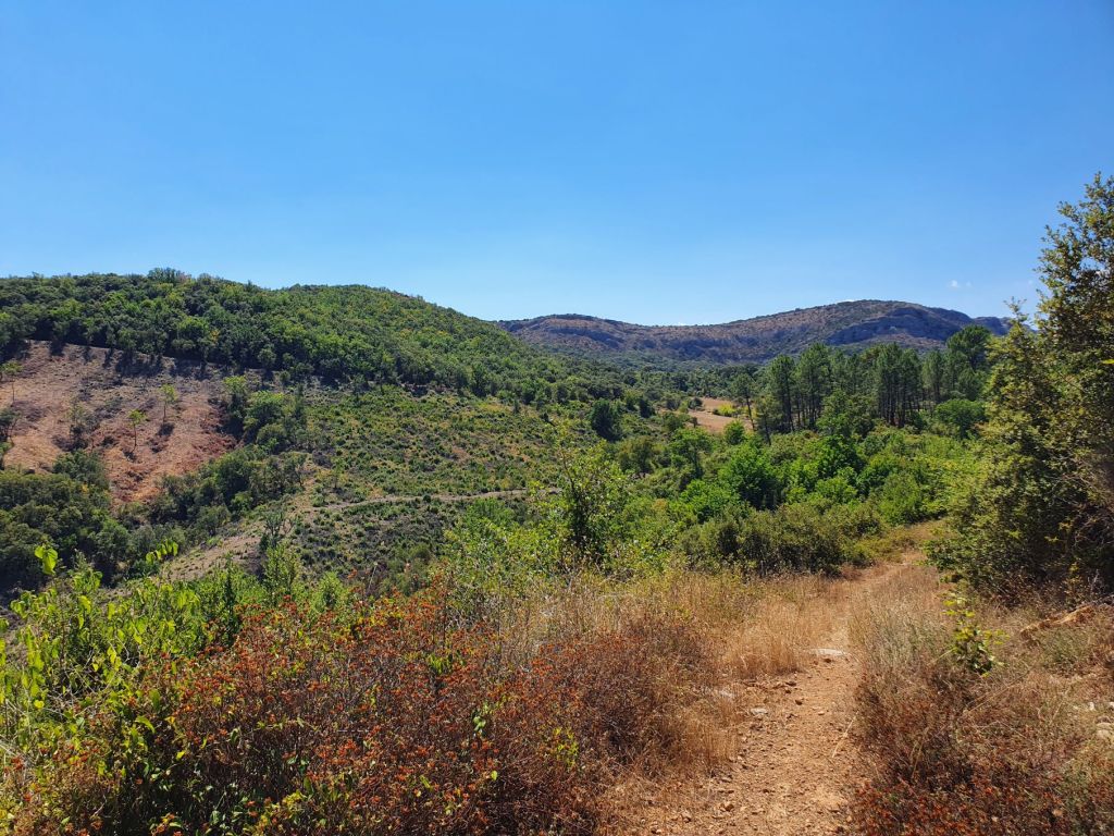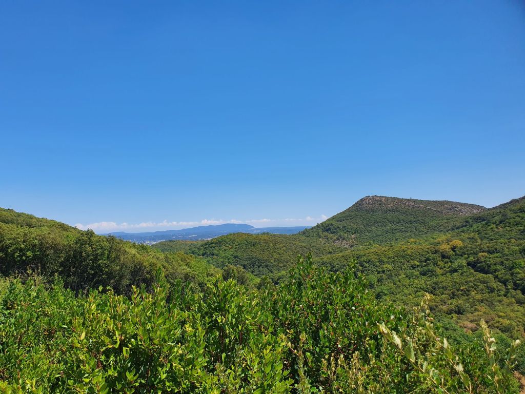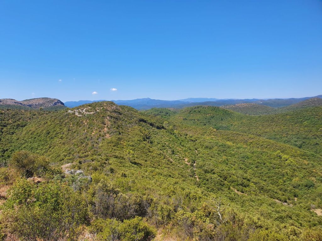 Die Cévennen, les Cévennes, sind der südöstlichste Teil des französischen Zentralmassivs. Karstgebirge, Schluchten und Hochebenen prägen die Landschat. Im nördlichen Teil (Département Lozère) ist das Klima vorwiegend atlantisch und feucht-kühl, südlich des Mont Aigoual (Départements Gard und Hérault) herrscht hingegen trocken-warmes Mittelmeerklima. Die grössten Städte liegen alle am Rand der Cévennen: Mende, Millau, Lodève und mit über 41’000 Einwohnern die grösste Alès. Heute spielt die Landwirtschaft mit der Aufzucht von Rindern, Schweinen und Ziegen, Ackerbau und Obstanbau (Zwiebeln und Äpfel) eine immer geringere Rolle. Zum Haupt-Wirtschaftsfaktor ist der Tourismus geworden. Vor allem der Cévennen-Nationalpark und das Skigebiet Prat Peyrot am Mont Aigoual ziehen viele Besucher/innen an. Zudem bietet die Region Tropfsteinhöhlen, Wanderwege, Klettergebiete, Radwege, Wasser- und Luftsport. Im Juni 2011 hat die UNESCO über 3000 Quadratkilometer der Cévennen zum Welterbe der Menschheit erklärt. Ausschlaggeben für die Anerkennung als Weltnaturerbe war, dass hier die Wanderschäferei (Transhumanz) noch wie vor Urzeiten ausgeübt wird. Die Landschaften der Hochebenen sind während Jahrtausenden von der Weidewirtschaft geformt worden. Genau diese Landschaft wollten wir uns mit unserer ersten kleinen Wanderung in den Cévennen ansehen. So liefen wir bei weit über 35 Grad auf den nächstgelegenen Gipfel und staunten über die weiten der wunderschön grünen Wälder.
