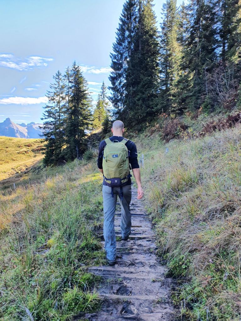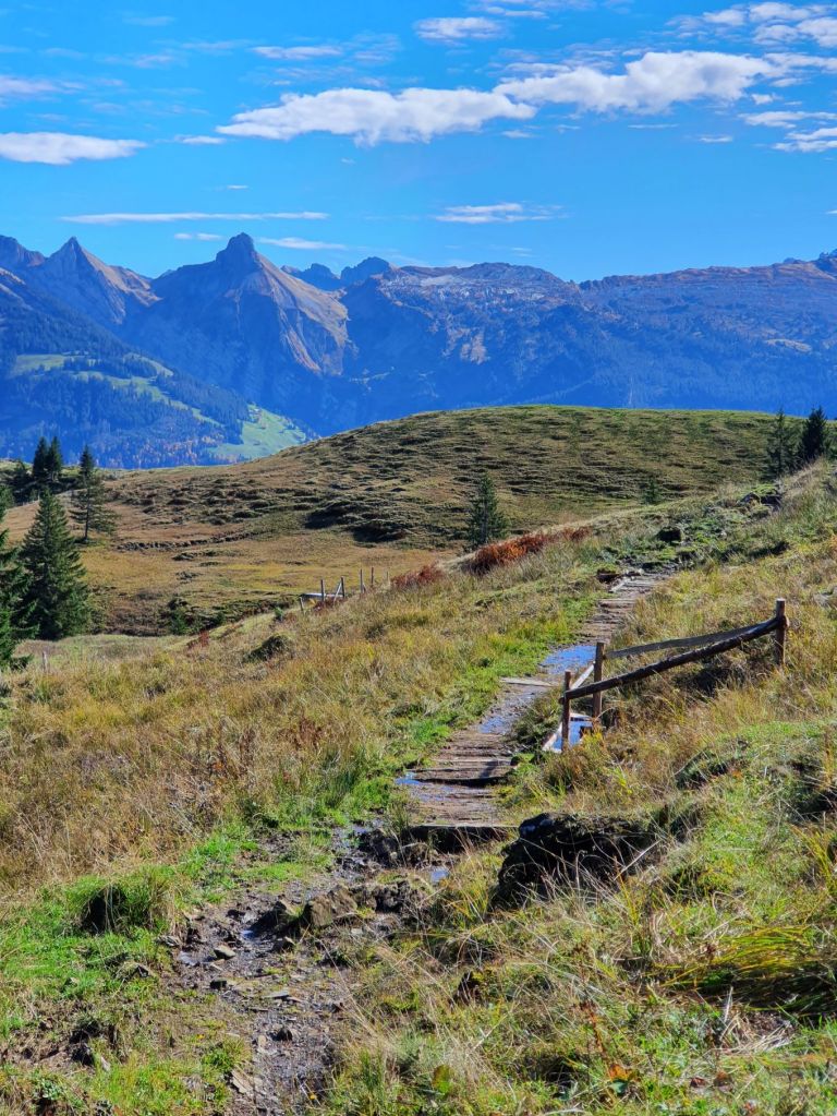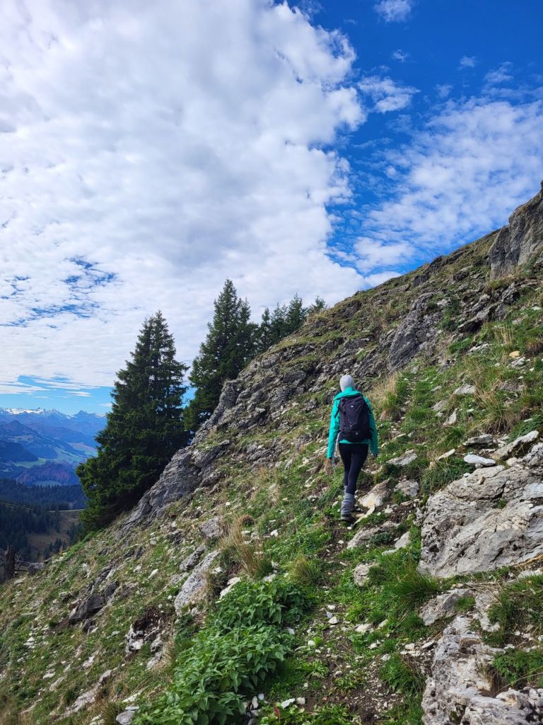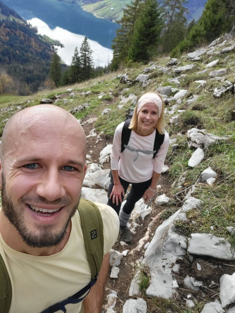 Nach einem regnerischen letzten Wochenende freuten wir uns heute umso mehr, wieder einmal in die Höhe gehen zu können. Punkt 9 Uhr machten wir uns vom Wägitalersee im Zickzack auf den Weg Richtung Bärlaui – und dieser hatte es schon in sich. Ein richtig schön steiler Start! Von der Bärlaui liefen wir dann gediegen ansteigend über einen eher matschigen Weg bis an den Fuss des Gross Aubrig. Von da an zogen wir das letzte Stück nochmal steil hoch auf den Gipfel, wo wir die Aussicht auf den Zürichsee auf der einen Seite, den Wägitalersee auf der anderen Seite und die herrlichen Berge rundherum genossen. Zum Eggstofel ging es dann erneut so steil runter, dass wir teilweise die Hände zu Hilfe nehmen mussten. Zudem verlangte der nasse und teilweise sumpfige Weg Konzentration und gute Trittsicherheit. Auf der Ebene Eggstofel nahmen wir uns nochmal Zeit, um die traumhafte Sonne zu geniessen, bevor wir zur Brandhalti und dann dem See entlang zurück zum Ausgangsort liefen.