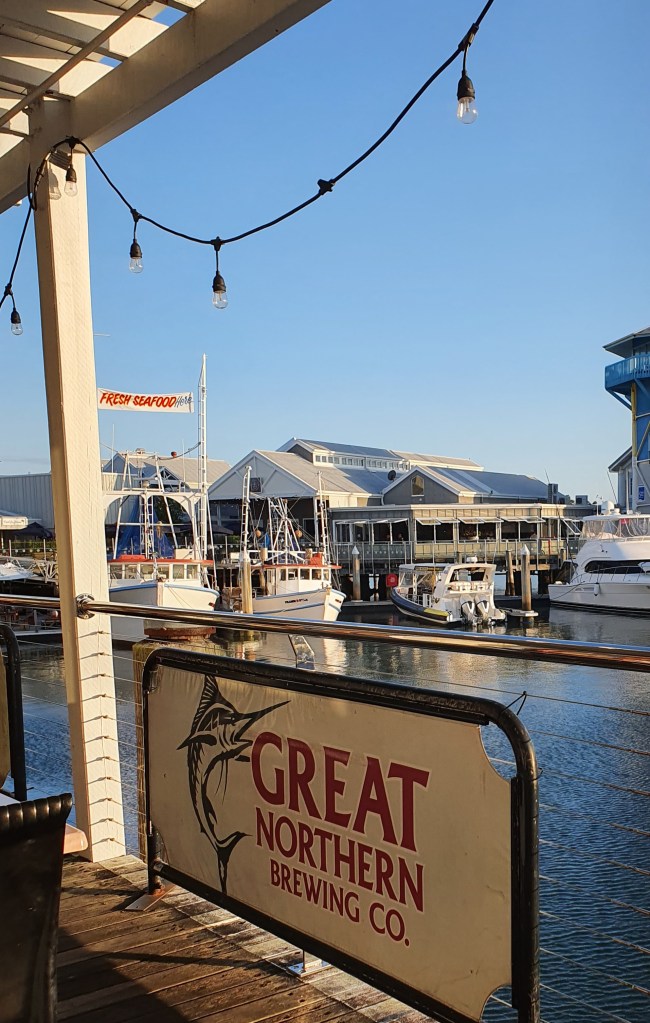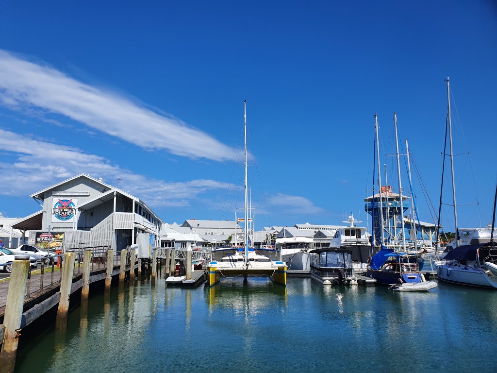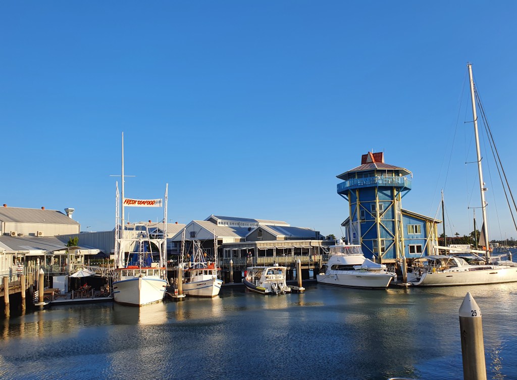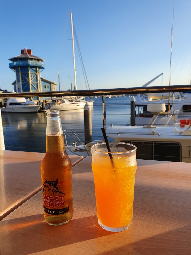 Nach dem ersten Schulmorgen in der Lexis English School mit Einführungstest und Interview haben wir heute Nachmittag einen Spaziergang zum Port Cartwright Lighthouse gemacht. Wir haben unser Mietauto in der Wharf in Mooloolaba parkiert und sind von dort aus gute eineinhalb Stunden zum Leuchtturm gelaufen. Der erste, kurze Teil der Strecke ging dem Kai entlang und war mit Sicht auf den Hafen und die umliegenden Villen wunderschön. Der zweite Teil der Strecke verlief der dreispurigen Hauptstrasse entlang und war dementsprechend laut. Das letzte Teilstück bis zum Leuchtturm war dafür umso schöner, rechts mit Blick auf die wilde Küste, links eine ruhige Quartierstrasse. Der Leuchtturm an sich entsprach nicht dem typischen, rot-weissen Leuchtturm, die Aussicht von Port Cartwright ist aber gigantisch. Auf beiden Seiten erstrecken sich endlos scheinende Sandstrände und im Hintergrund sieht man die Hochhäuser der Sunshine Coast. Berührt haben uns auch die am Geländer befestigten Memorials von Verstorbenen, insbesondere diejenigen der jung verstorbenen. Zurück nahmen wir ein Uber, um meine von Blasen geschundenen Füsse zu schonen und genossen zum Abschluss einen feinen Drink in der Wharf.