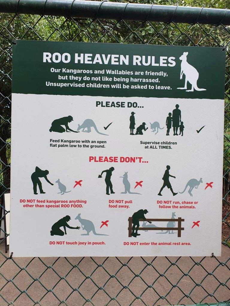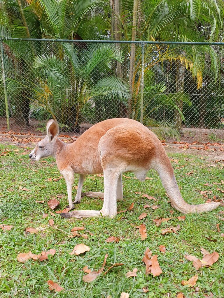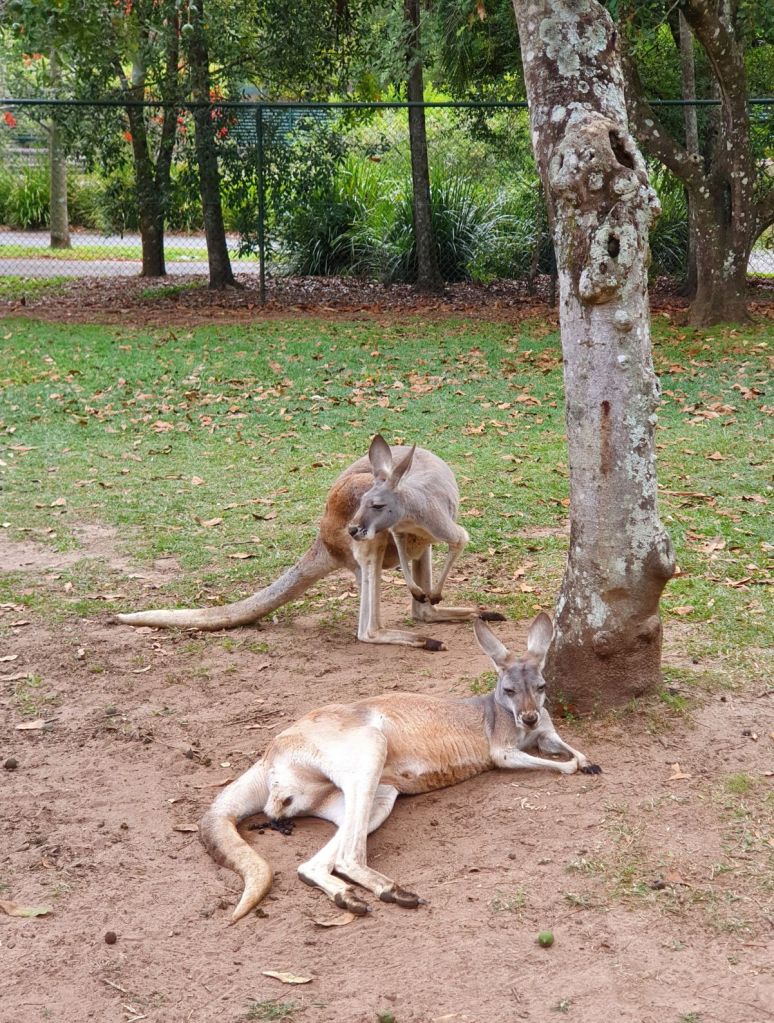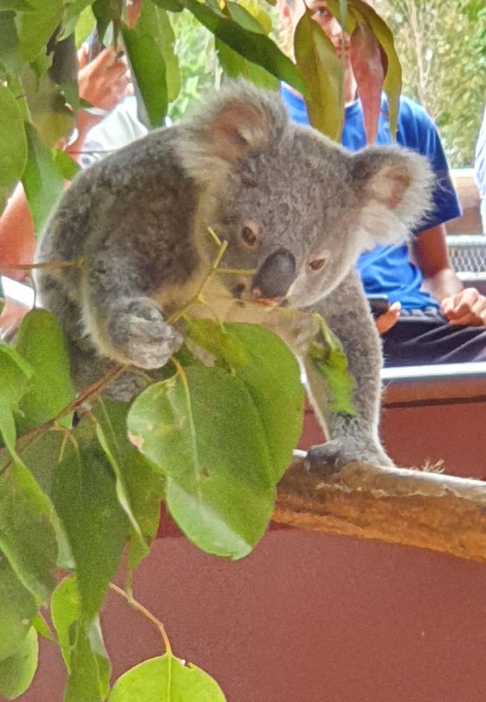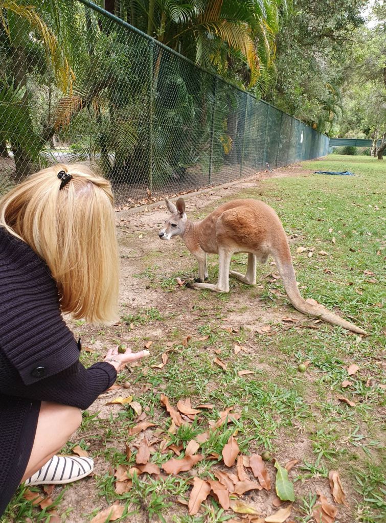Da es heute eher bewölkt war, haben wir uns entschieden, den wohl weltweit bekanntesten Zoo, den Australian Zoo vom verstorbenen Steve Irwin, zu besuchen. Nach einer halbstündigen Fahrt haben wir unser Ziel erreicht und schon beim Eingangsbereich staunten wir nicht schlecht über die Grösse und die Schönheit der Anlage. Obwohl wir beide schon verschiedenste Zoos in der Schweiz und auch im Ausland besucht haben, haben wir noch nie einen so grossflächigen und grünen Zoo gesehen. Die Tiergehege hatten nichts von Käfigen an sich, ganz im Gegenteil. Die Gehege waren allesamt sehr gross und mit viel Liebe und Hingabe gestaltet. So war es eine wahre Freude durch den Zoo zu spazieren. Überall verteilt gab es auch Sitzbänke und Picknicktische, einen riesigen Kinderspielplatz, ein Krokodil-Stadion, wo jeweils Shows stattfinden und mehrere Tiergehege, durch die man hindurchgehen konnte, beispielsweise bei den Koalas und bei den Kängurus. Insbesondere die Kängurus haben es uns angetan, dort haben wir viel Zeit verbracht und es genossen, die Tiere so nahe zu beobachten und sogar streicheln zu können. Und auf dem Nachhauseweg gönnten wir uns noch einen feinen Apéro an der Wharf in Mooloolaba. Schliesslich schuldete mir mein Mann noch einen Drink, nachdem er unsere Englisch-Wette verloren hatte 😉