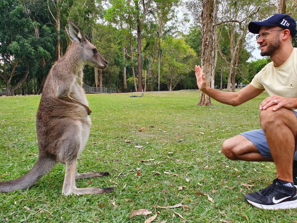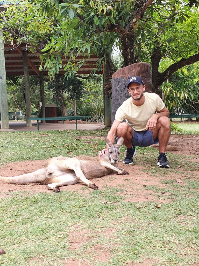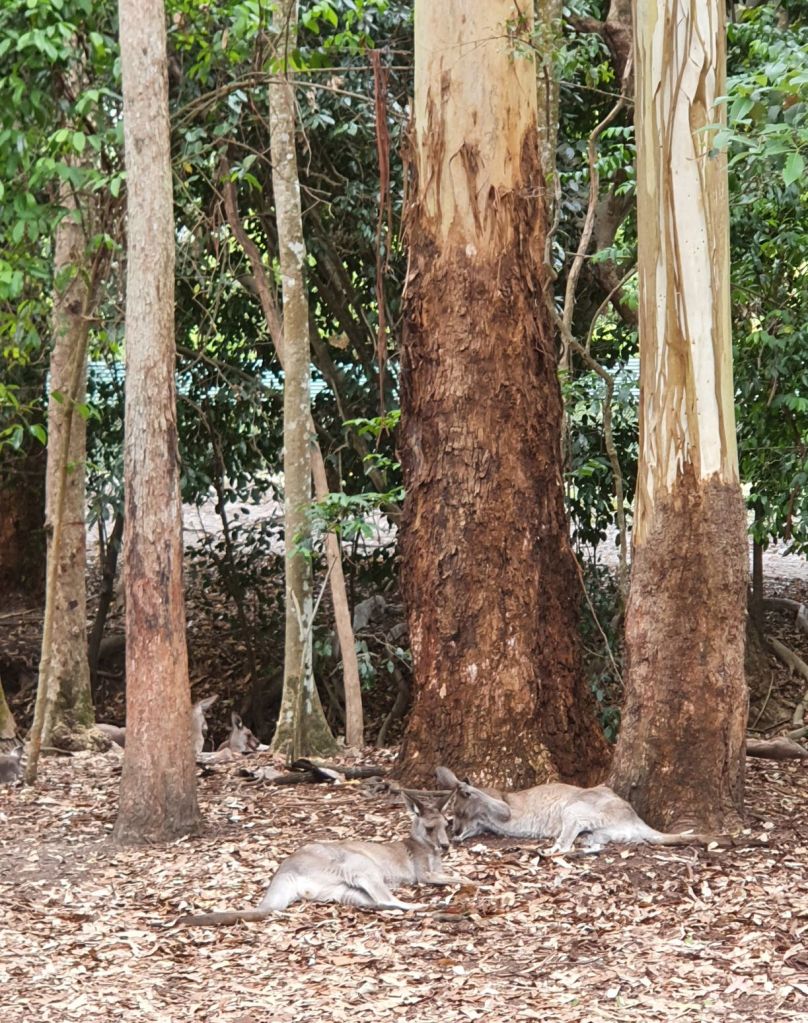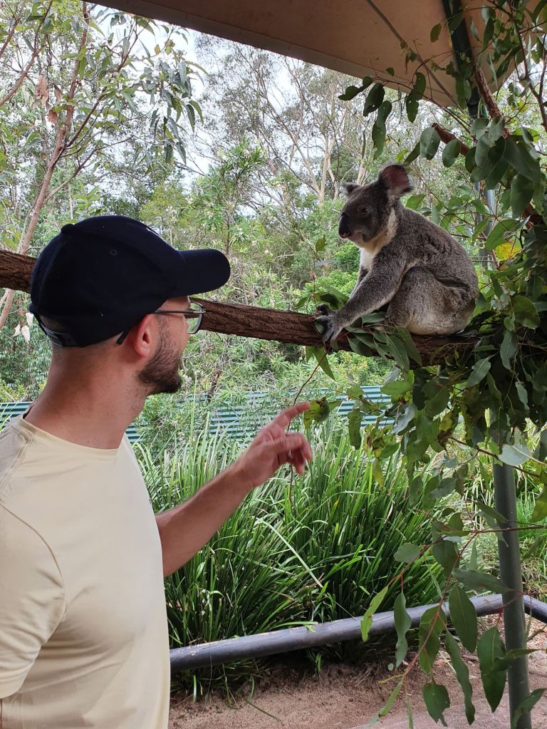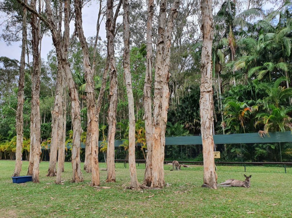 Da es heute eher bewölkt war, haben wir uns entschieden, den wohl weltweit bekanntesten Zoo, den Australian Zoo vom verstorbenen Steve Irwin, zu besuchen. Nach einer halbstündigen Fahrt haben wir unser Ziel erreicht und schon beim Eingangsbereich staunten wir nicht schlecht über die Grösse und die Schönheit der Anlage. Obwohl wir beide schon verschiedenste Zoos in der Schweiz und auch im Ausland besucht haben, haben wir noch nie einen so grossflächigen und grünen Zoo gesehen. Die Tiergehege hatten nichts von Käfigen an sich, ganz im Gegenteil. Die Gehege waren allesamt sehr gross und mit viel Liebe und Hingabe gestaltet. So war es eine wahre Freude durch den Zoo zu spazieren. Überall verteilt gab es auch Sitzbänke und Picknicktische, einen riesigen Kinderspielplatz, ein Krokodil-Stadion, wo jeweils Shows stattfinden und mehrere Tiergehege, durch die man hindurchgehen konnte, beispielsweise bei den Koalas und bei den Kängurus. Insbesondere die Kängurus haben es uns angetan, dort haben wir viel Zeit verbracht und es genossen, die Tiere so nahe zu beobachten und sogar streicheln zu können. Und auf dem Nachhauseweg gönnten wir uns noch einen feinen Apéro an der Wharf in Mooloolaba. Schliesslich schuldete mir mein Mann noch einen Drink, nachdem er unsere Englisch-Wette verloren hatte 😉