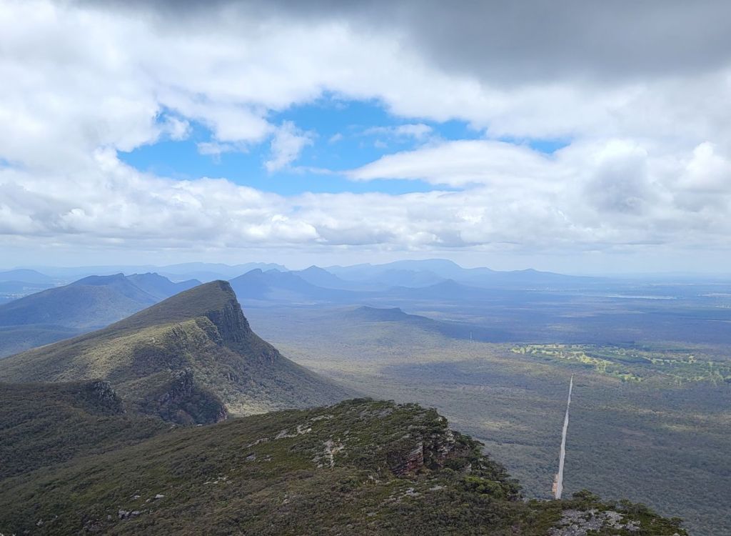 Was war das für ein Tag heute! Nach einer wunderbaren Nacht in Koroit haben wir uns heute mega auf die Wanderung und das wärmere Wetter im 100km nördlich gelegenen Grampians National Park gefreut. Auf dem Weg von der Südküste ins Landesinnere nach Halls Gap, dem Zentrum des Nationalparks, lag auch das kleine Kaff Dunkeld und daneben der Mount Abrupt. Dieser 6km lange Weg bot sich perfekt für einen Hike an und den haben wir natürlich gemacht. Der Weg führte vom Parkplatz direkt in den Busch und schlängelte sich von da durch felsiges Waldland und etliche Steintreppen knapp 500 Höhenmeter hoch auf den Gipfel. Bereits auf dem Weg ist die Aussicht auf die Ebene herrlich und auf dem Gipfel bot sich uns eine phenomenale Rundumsicht über den Nationalpark; sie Serra Range im Norden und Dunkeld im Süden. Die Grampians bilden den westlichsten Teil der australischen Great Dividing Range und bestehen aus vier Höhenzügen, die überwiegend von Norden nach Süden verlaufen: Der Mount William Range, der Serra Range, der Victoria Range und der Mount Difficult Range. Die höchste Erhebung ist der Mount William mit einer Höhe von 1167 m. Die Höhenzüge fallen Richtung Osten abrupt ab, mit vielen Steilwänden und Überhängen, während nach Westen hin sanftere Abhänge vorherrschen. Das macht die Wanderungen hier so spannend und aussichtsreich. Spannend ist auch die Tierwelt im Grampians.