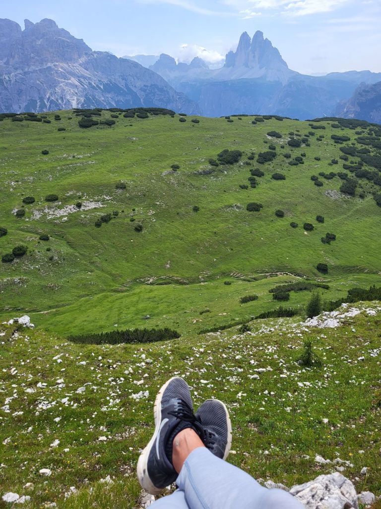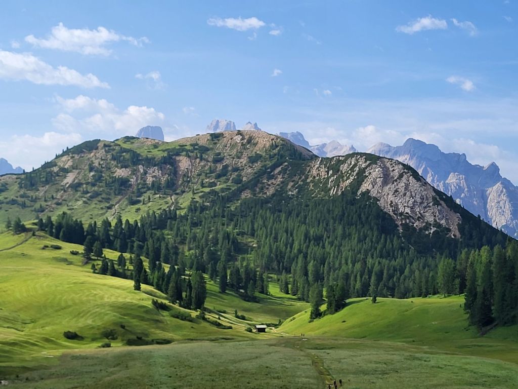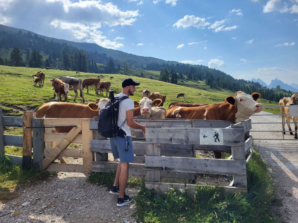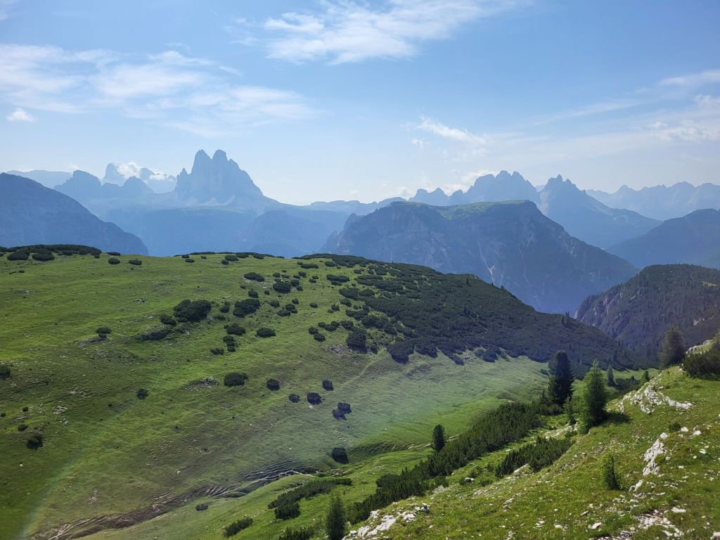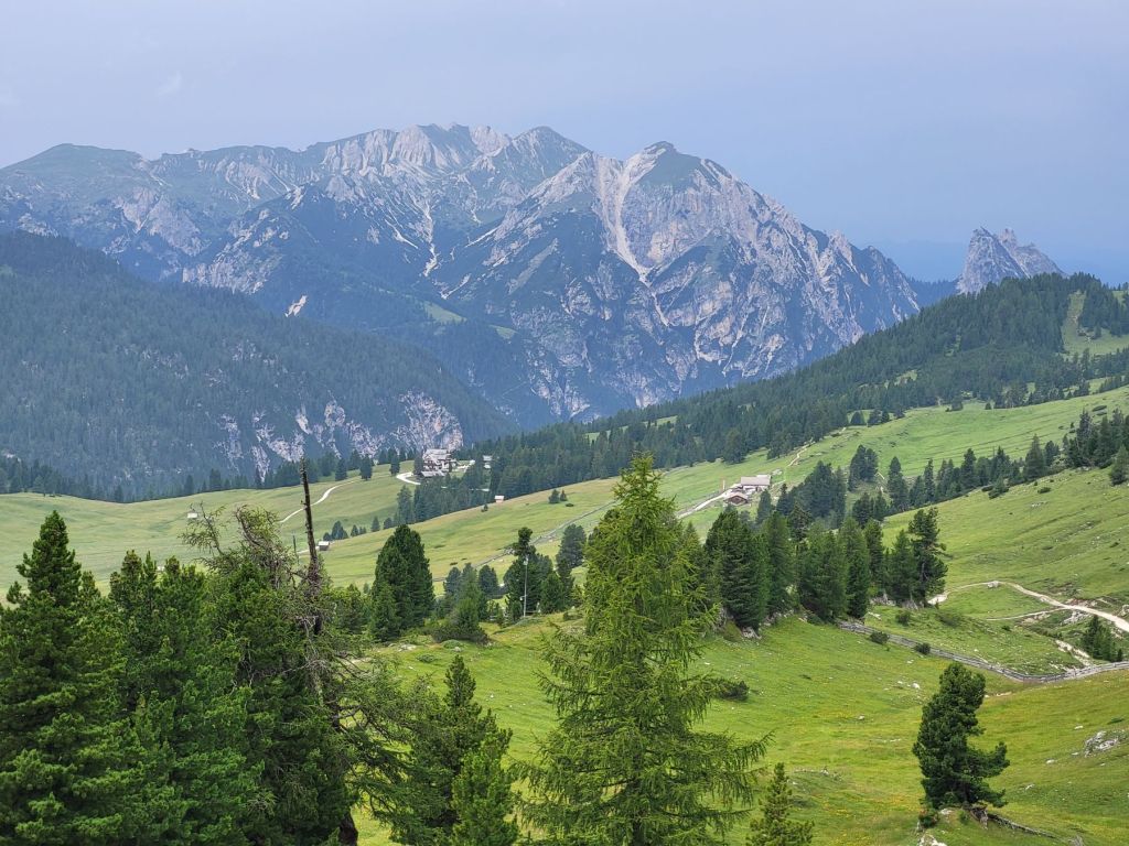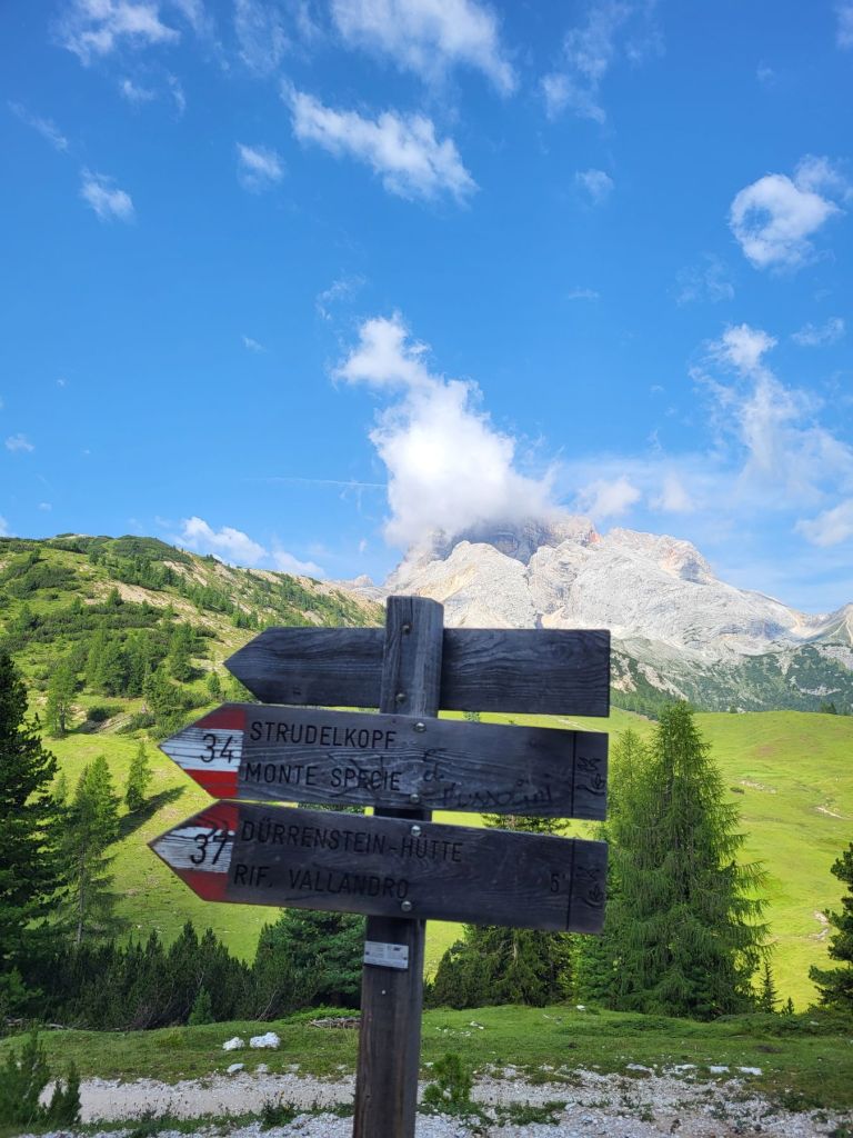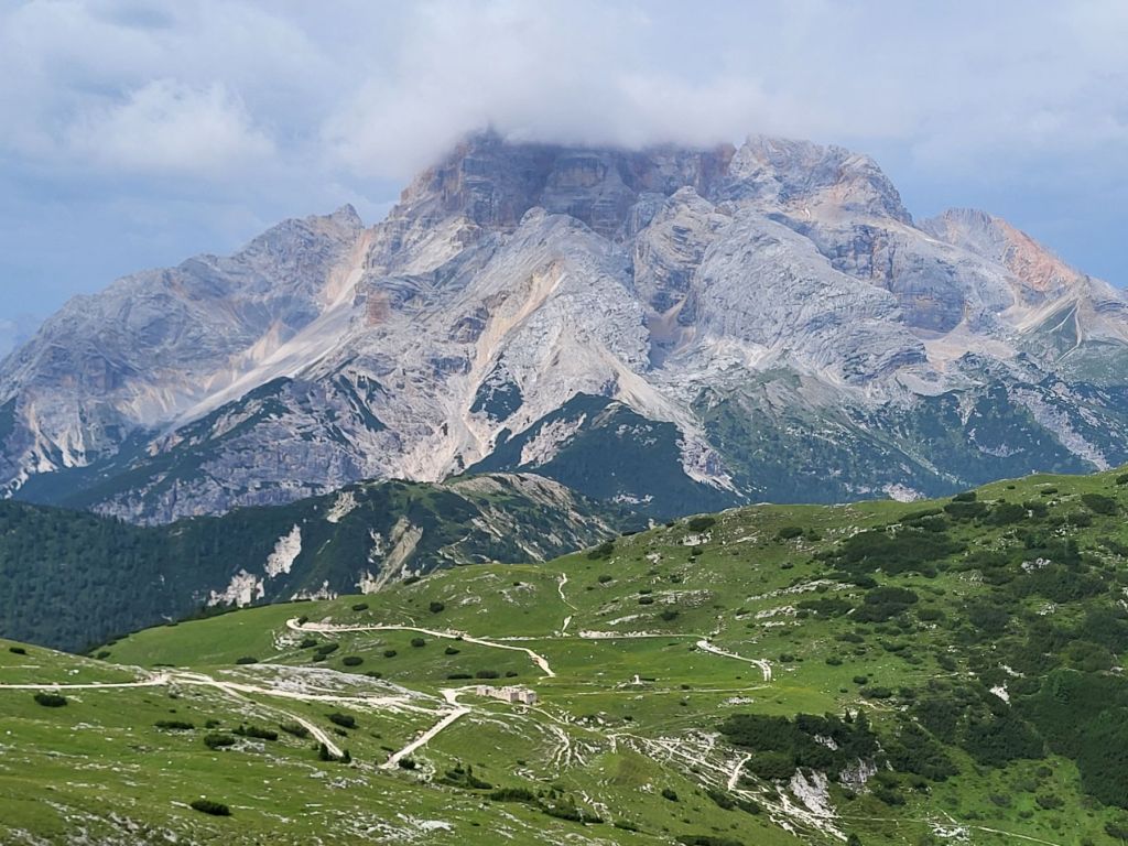 Heute entschieden wir uns für eine kurze Wanderung, da ab Mittag Regen und Gewitter vorausgesagt wurden. Nachdem wir 10 Euro Gebühr bezahlt hatten, parkierten wir unser Auto auf der Plätzliwiese, welche bereits auf knapp 2000 Metern liegt. Von dort ging es zuerst gute zwei Kilometer auf einem Kieselweg ziemlich eben aus und von vielen Kühen begleitet zur bekannten Dürrensteinhütte. Vor der Dürrensteinhütte, die um diese Uhrzeit noch völlig verlassen war, bogen wir links ab und stiegen die ersten Höhenmeter hoch Richtung Strudelkopfsattel, wo man noch Überreste des Ersten Weltkrieges sehen konnte. Wir passierten die halb verfallene Kaserne und legten das letzte Wegstück zurück, das Gipfelkreuz bereits vor Augen. Auch hier oben auf dem Strudelkopf hielt sich die Anzahl Menschen in Grenzen und wir konnten wieder eine wunderbare Aussicht auf die Gipfel der Tofane, den Monte Cristallo und einmal mehr die Drei Zinnen geniessen. Nachdem wir die Bergwelt eine Weile auf uns wirken lassen haben, traten wir den Rückweg an. Etwas oberhalb der Plätzliwiese machten wir dann noch unsere Mittagspause. Diese war nicht optimal geplant, denn wir sahen die dunklen Wolken schon kommen und noch während dem Essen begann es sanft zu regnen. Zügig machten wir uns auf Richtung Auto, aber wir wurden auf den letzten paar hundert Metern doch noch so richtig verregnet. Gelohnt hat es sich trotzdem raus zu gehen, wir haben dafür den Nachmittag in der warmen Wohnung umso mehr genossen.