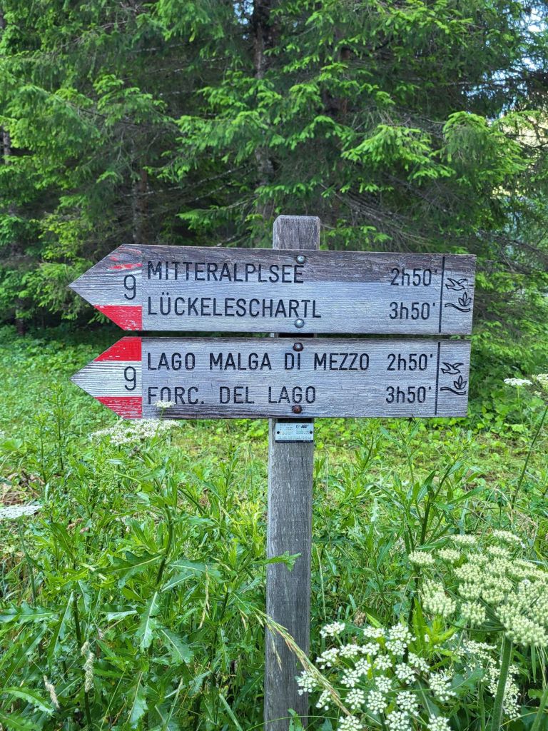 DOLOMITEN: Parkplatz Soldatenfriedhof Höhlensteintal – Schafalm – Mitteralplsee (2220m)