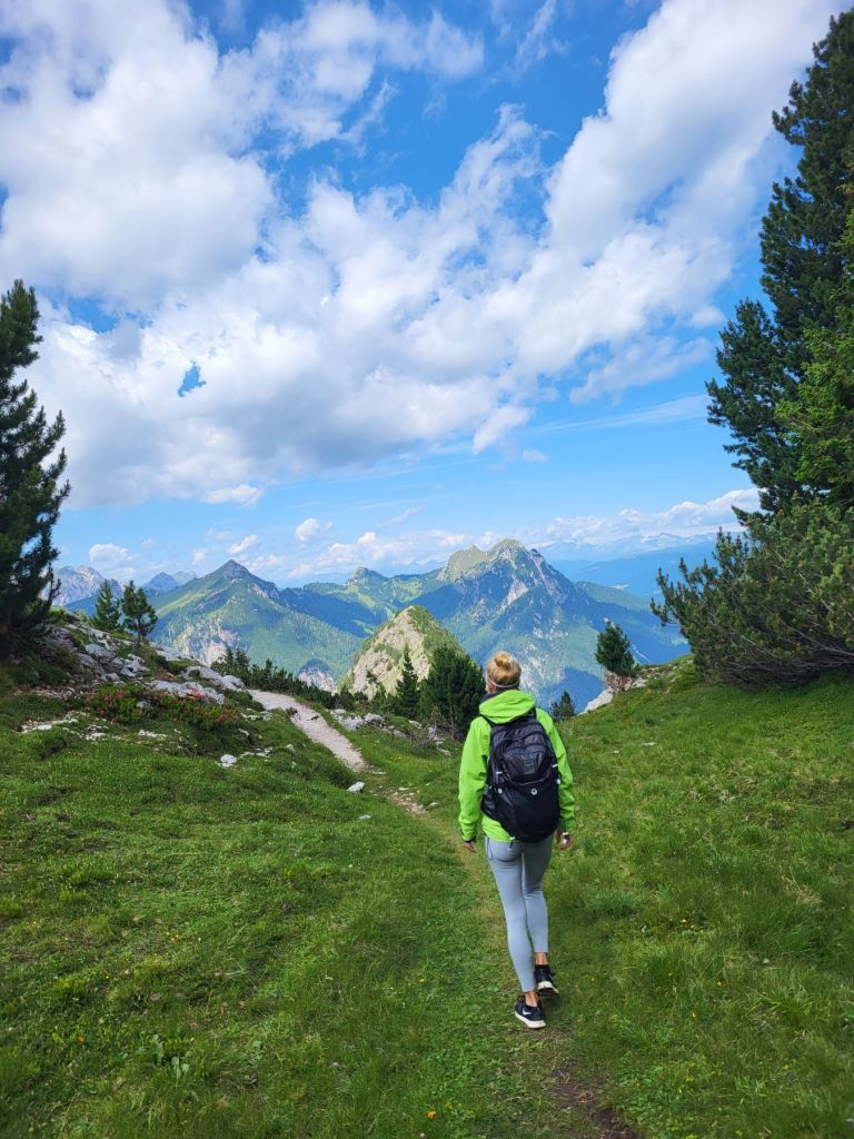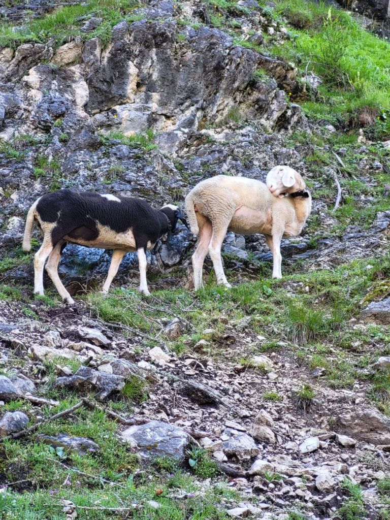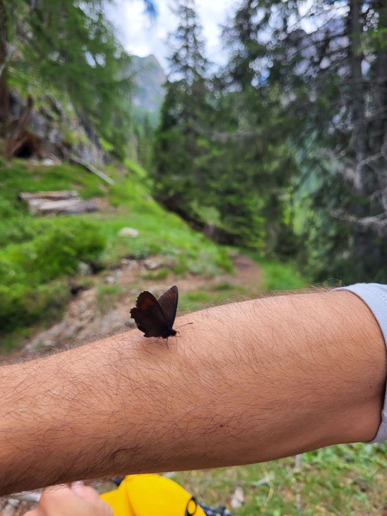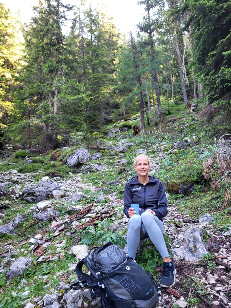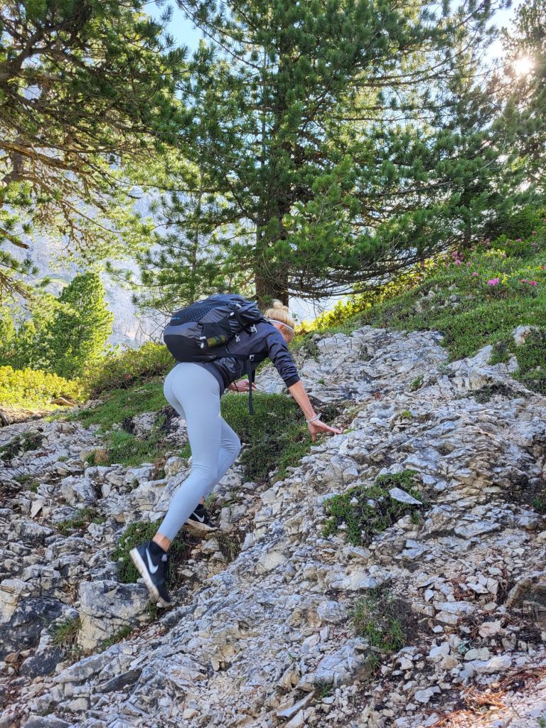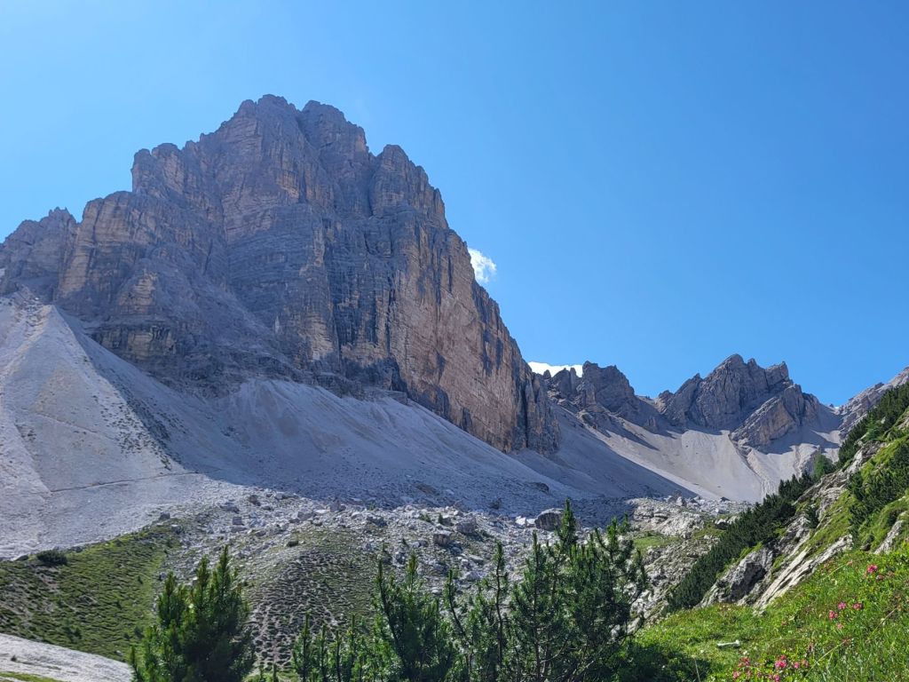 Aufgrund der schlechten Wettervorhersagen für den Freitag, war heute leider schon unser letzter Wandertag in den Dolomiten. Wir wählten eine nahegelegene Route, die eher weniger begangen wird und zu einem See führt. Und das war eine super Entscheidung! Um 8 Uhr waren wir bereits startklar und machten uns auf den Weg Richtung Schafalm. Da es von Beginn weg steil durch den Wald hoch ging, gewannen wir schnell an Höhe. Schon eine halbe Stunde später konnten bis zum Toblacher See blicken. Dann folgten zwei Flussüberquerungen und ein paar steile Kurven später erreichten wir die herzige Schafalm. Dort machten wir eine kurze Rast und liefen dann die letzten Höhenmeter durch den Wald, bevor wir der Felswand entlang links abbogen. Dann kam ein Teilstück, welches wohl typisch ist für Wanderungen in den sehr steilen Dolomiten; ein schmaler Kieselweg der Felswand entlang, extrem abschüssig, mit Drahtseilen gesichert. Schon einmal in die Tiefe blicken war wieder fast zu viel für mich. Dieses Mal konnte ich meine Angst aber einigermassen kontrollieren und dieses Wegstück hinter mich bringen. Danach ging es nochmal durch den Wald, bis es steiniger wurde und sich schlussendlich die Ebene mit dem Mitteralplsee vor uns auftat, wunderschön in den Felsen gelegen. Wir konnten unser Glück, völlig allein am Mittelalplsee zu sein, kaum fassen. Diese unberührte, wunderschöne Natur und die absolute Stille – ein Traum! Wenige Minuten konnten wir noch in der Sonne geniessen, bevor dann leider Wolken aufkamen und es kühler wurde. Nach einem feinen Picknick – selbst das Essen schmeckt besser in den Bergen 😉 – machten wir uns auf den Rückweg, welcher aufgrund des steilen Geländes nochmal Kraft und Konzentration verlangte.