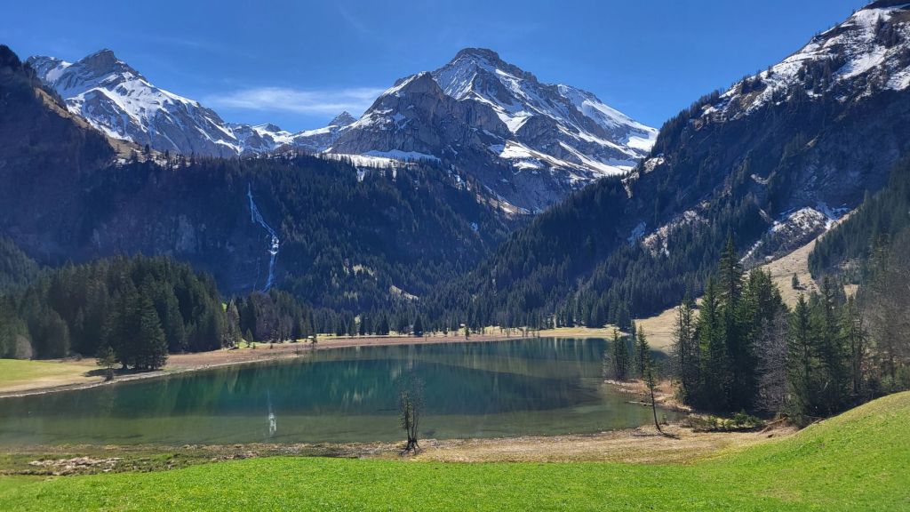 Am letzten Tag im traumhaften Berner Oberland wollten wir noch zum Lauenensee laufen. Unsere Rundwanderung begann im Dörfchen Lauenen und führte alles mehr oder weniger dem Lauwibach entlang, zuerst auf einem Feldweg, dann auf Wanderwegen. Nachdem wir wenige Höhenmeter hochgestiegen sind, erreichten wir bereits den Parkplatz Lauenensee. Wir liefen links herum und kamen so zuerst am Kleinen Lauenensee vorbei und wenige Minuten später zum Grossen Lauenensee. Wir umrundeten den See und breiteten uns auf der Wiese aus, wo wir eine fantastische Sicht auf den See und die umliegenden, schneebedeckten Gipfel wie das Mutthore, das Spitzhorn und das Niesenhorn geniessen konnten. Wir hatten die leise Befürchtung, dass es wimmeln könnte von Touristen an einem so wunderschönen Samstag. Aber dem war zum Glück nicht so, im Gegenteil. Wir genossen die Ruhe und hatten das Gefühl, den See fast für uns zu haben. Zurück ging es dann ein kurzes Stück hinunter, bis wir wieder zum Lauwibach kamen, wo wir nochmals eine Pause einlegten – einfach, weil es so schön war. Selbst der Rückweg nach Gstaad war schön, diese wunderbare Landschaft mit den unglaublich schönen Holzhäusern – ein perfektes Bild! So gehen unsere Kurzferien auch schon wieder zu Ende. Aber wir kommen gerne wieder….