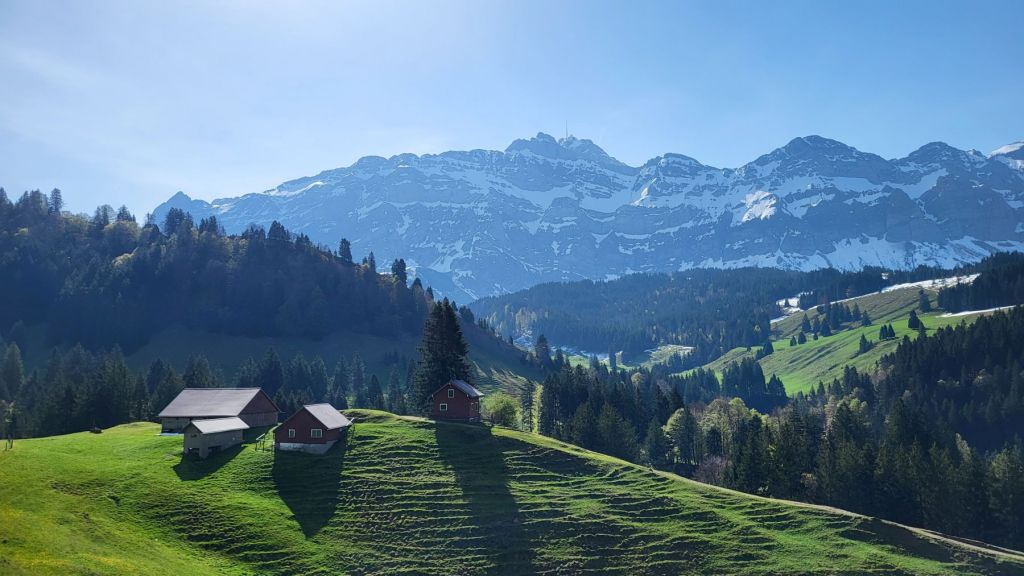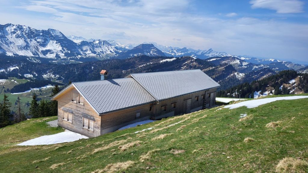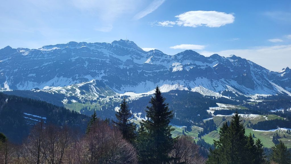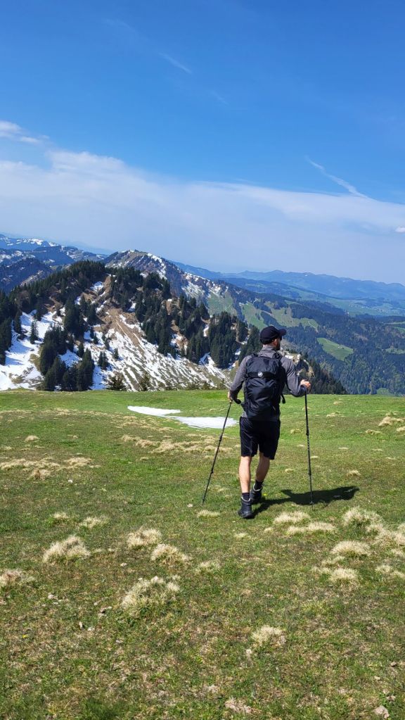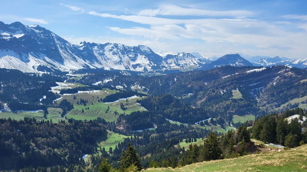 Schön, wenn es am freien 1. Mai schön ist 🙂 Wir machten uns zeitig auf den Weg ins Appenzellerland, genauer gesagt zur Steinflue, ein Stück hinter Urnäsch. Das lockere Einlaufen dauerte nur wenige Minuten – dann wurde es bereits zügig steil. Und so steil ging es auch weiter; dem ersten Grat entlang hoch bis zum Gschwendsattel, immer mit Blick auf den noch schneebedeckten Säntis und den Alpstein. Der Weg führte dann dem Waldrand entlang und etwas später rechts haltend zur Petersalp. Das letzte Stück war dann nochmal steil dem Grat entlang bis zur Hoch Petersalp. In der Zwischenzeit hatte der Föhnwind zugenommen und es blies uns einmal mehr kräftig um die Ohren. Nichtsdestotrotz genossen wir die grandiose Aussicht und unser Picknick vor der Hoch Petersalp. Ein wunderbares Plätzchen. Und nicht einmal eine Stunde später waren wir auch schon wieder unten und freuten uns auf den Apéro zu Hause.