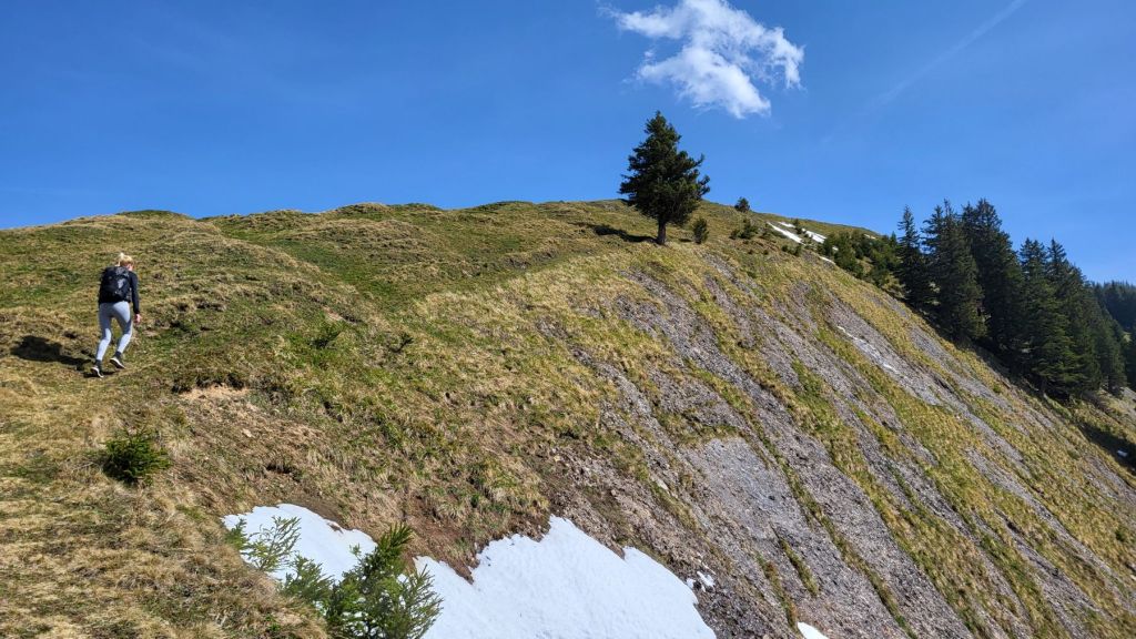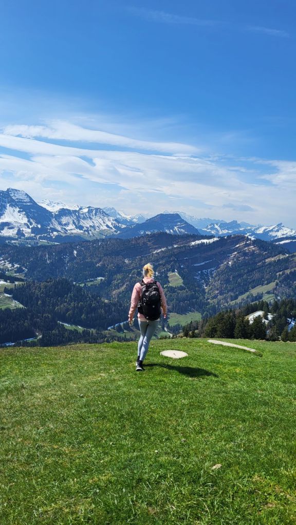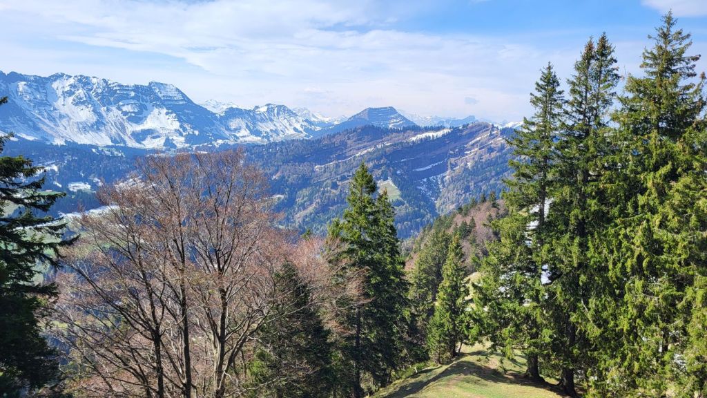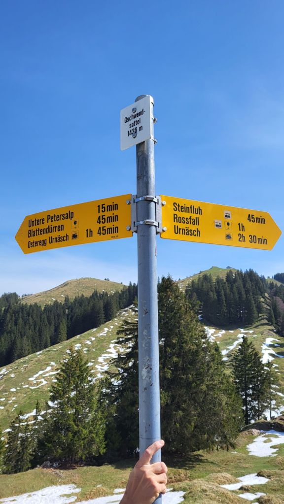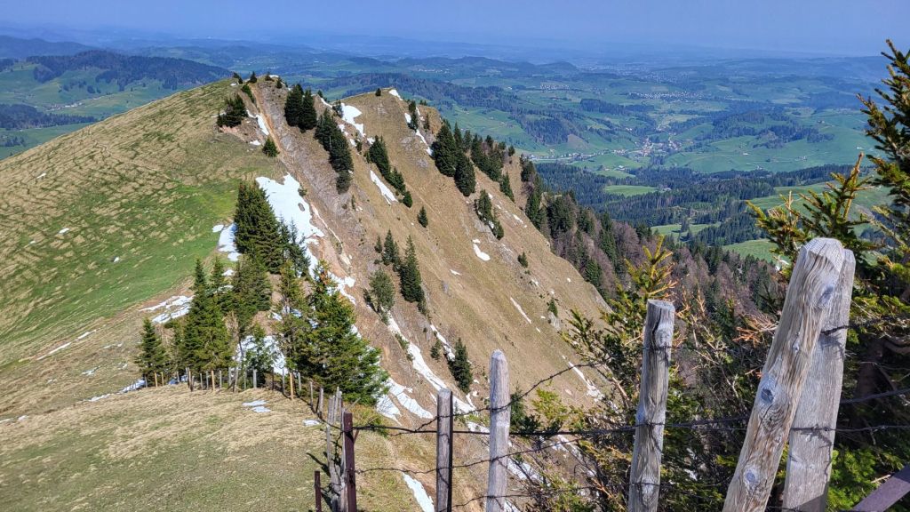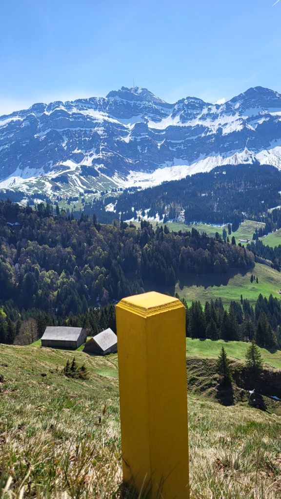 Schön, wenn es am freien 1. Mai schön ist 🙂 Wir machten uns zeitig auf den Weg ins Appenzellerland, genauer gesagt zur Steinflue, ein Stück hinter Urnäsch. Das lockere Einlaufen dauerte nur wenige Minuten – dann wurde es bereits zügig steil. Und so steil ging es auch weiter; dem ersten Grat entlang hoch bis zum Gschwendsattel, immer mit Blick auf den noch schneebedeckten Säntis und den Alpstein. Der Weg führte dann dem Waldrand entlang und etwas später rechts haltend zur Petersalp. Das letzte Stück war dann nochmal steil dem Grat entlang bis zur Hoch Petersalp. In der Zwischenzeit hatte der Föhnwind zugenommen und es blies uns einmal mehr kräftig um die Ohren. Nichtsdestotrotz genossen wir die grandiose Aussicht und unser Picknick vor der Hoch Petersalp. Ein wunderbares Plätzchen. Und nicht einmal eine Stunde später waren wir auch schon wieder unten und freuten uns auf den Apéro zu Hause.