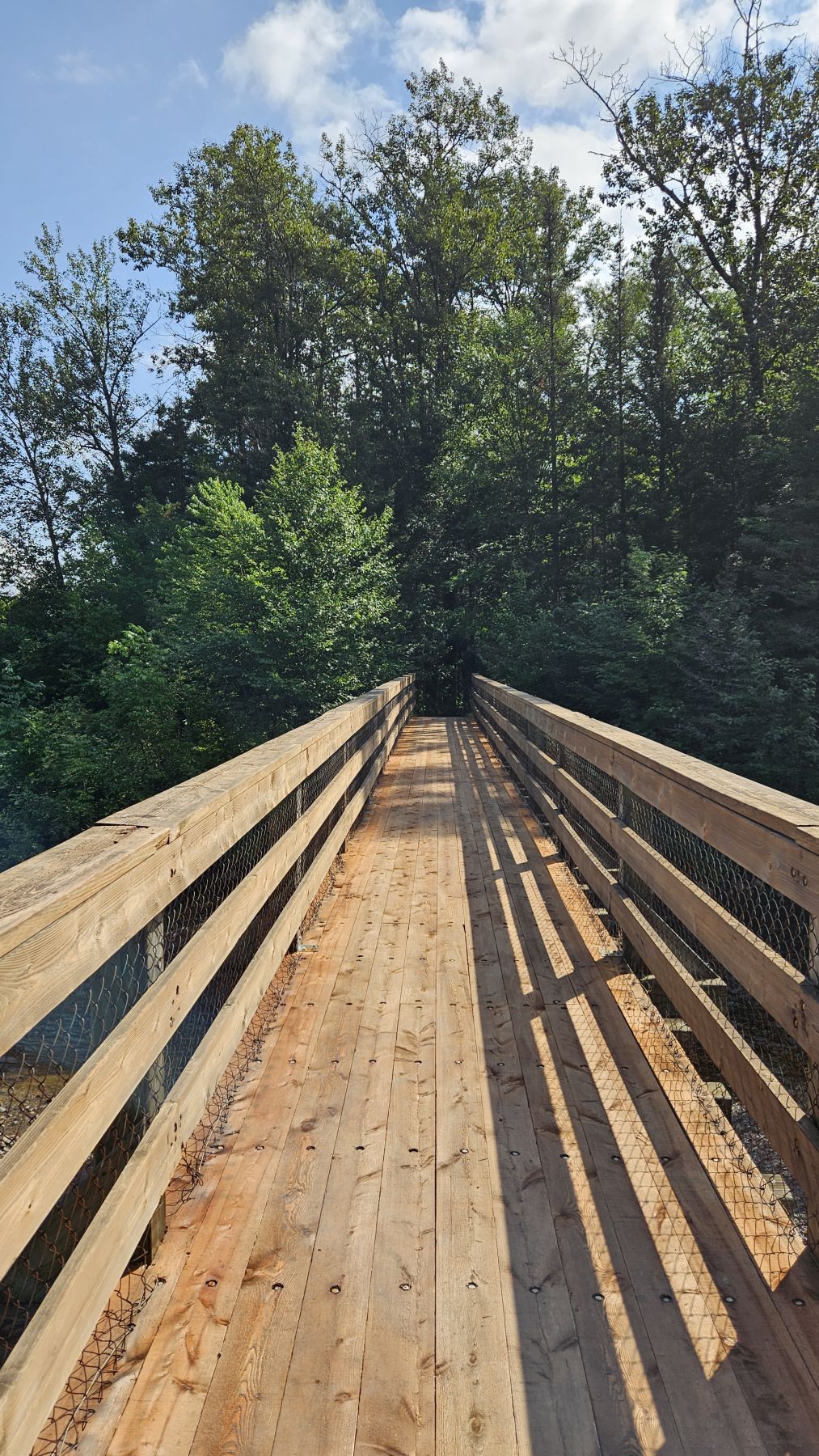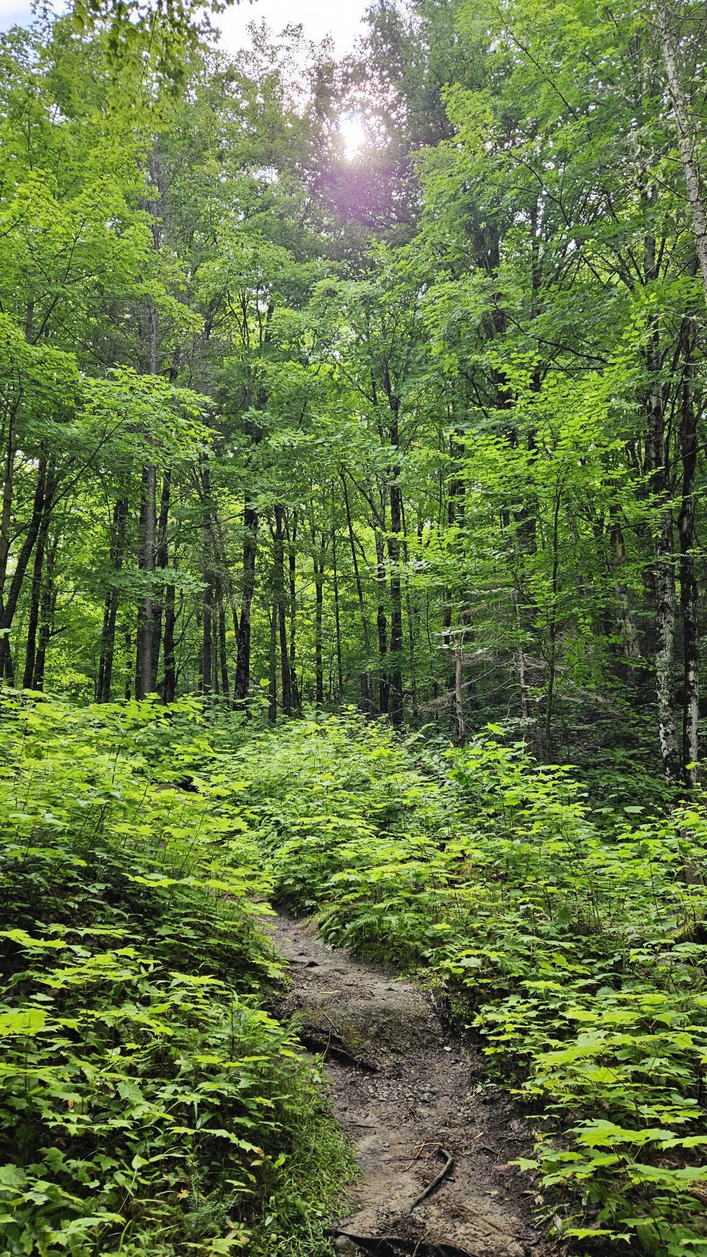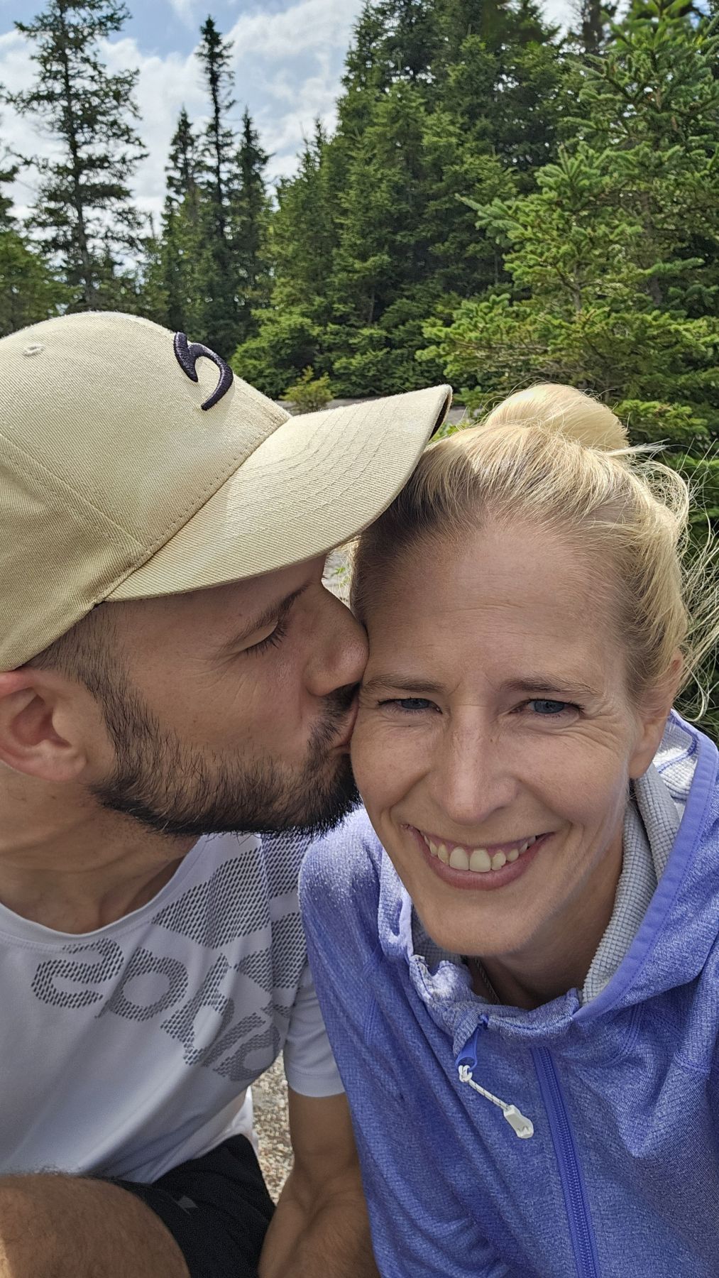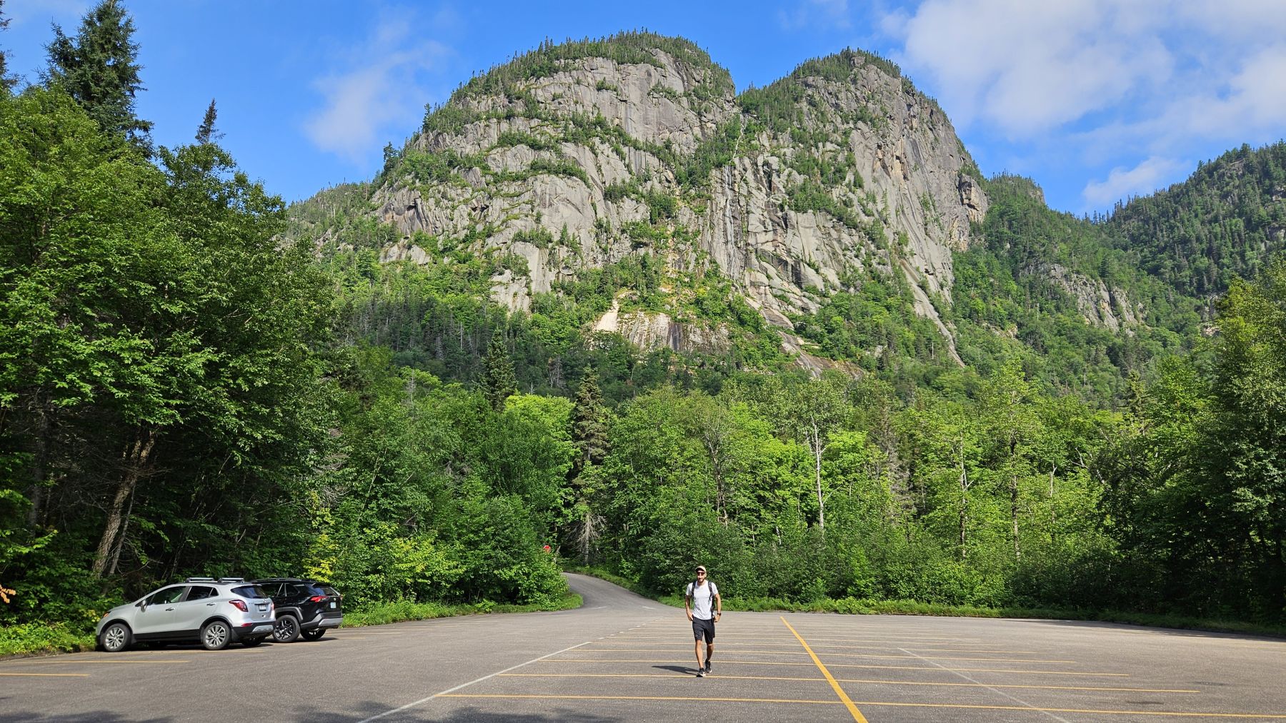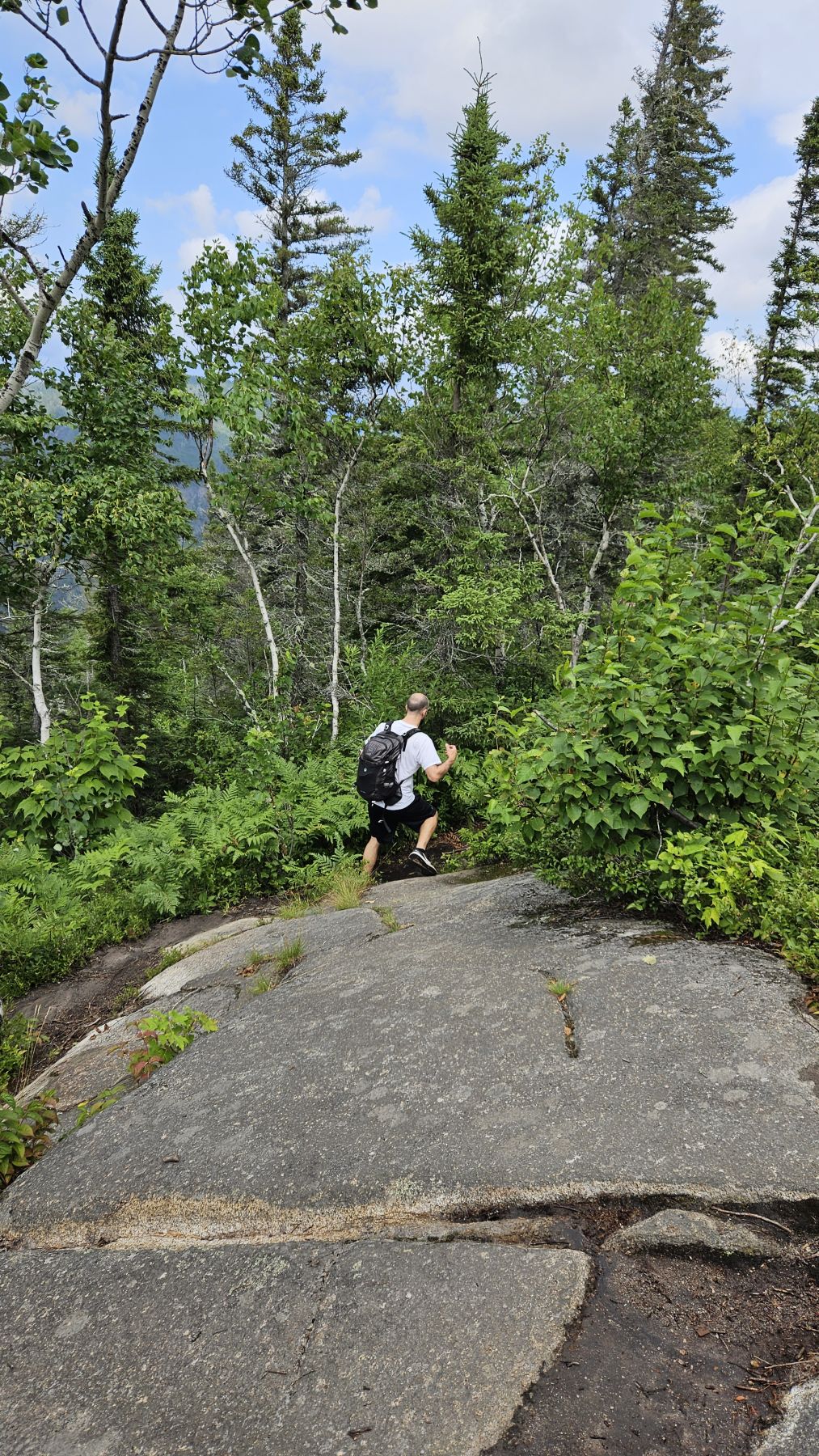 Eigentlich hatte der Wetterbericht auch für heute nasses, gewittriges Wetter vorausgesagt. Aber heute Morgen sah es schon wieder viel besser aus. Die Chance, verregnet zu werden, bestand zwar, aber wir hofften auf etwas Glück. Nach einer halbstündigen Fahrt in den benachbarten Fjord Rivière-Eternité begannen wir unsere Wanderung beim Parkplatz Nummer 3. Über verschiedene Holzbrücken den Fluss überquerend liefen wir zur Baie Eternité, wo es einen Wald-Campingplatz hat. Von dort ging es dann über Steinwege den Fjord entlang durch den üppigen Wald hoch bis zum Point de vue de Géant. Was für eine Aussicht wieder! Und während wir rundherum den Donner grollen hörten, sassen wir bei unserem Picknick mit fantastischer Aussicht im Trockenen. Auf dem Rückweg regnete es noch leicht, aber wir waren gut geschützt vom Wald. So richtig los ging das Gewitter erst fünf Minuten, nachdem wir wieder in unserer gemütlichen Hütte angekommen waren. Heute war das Wetterglück definitiv auf unserer Seite!