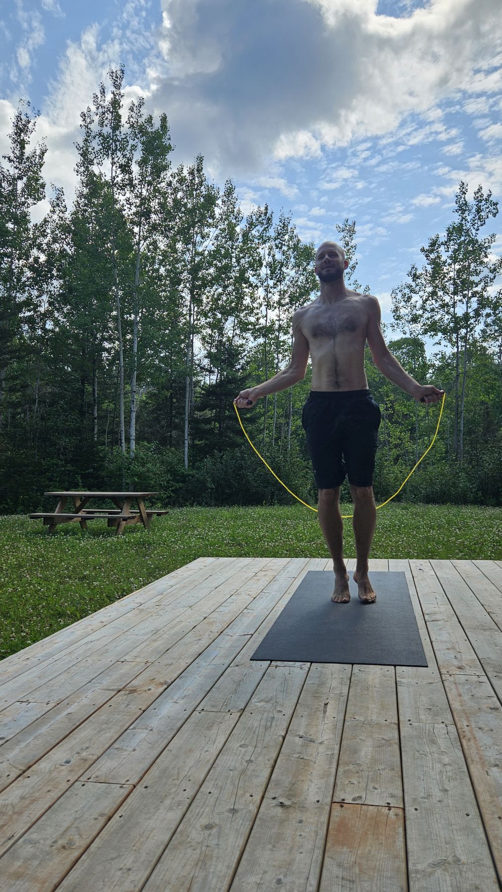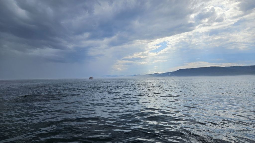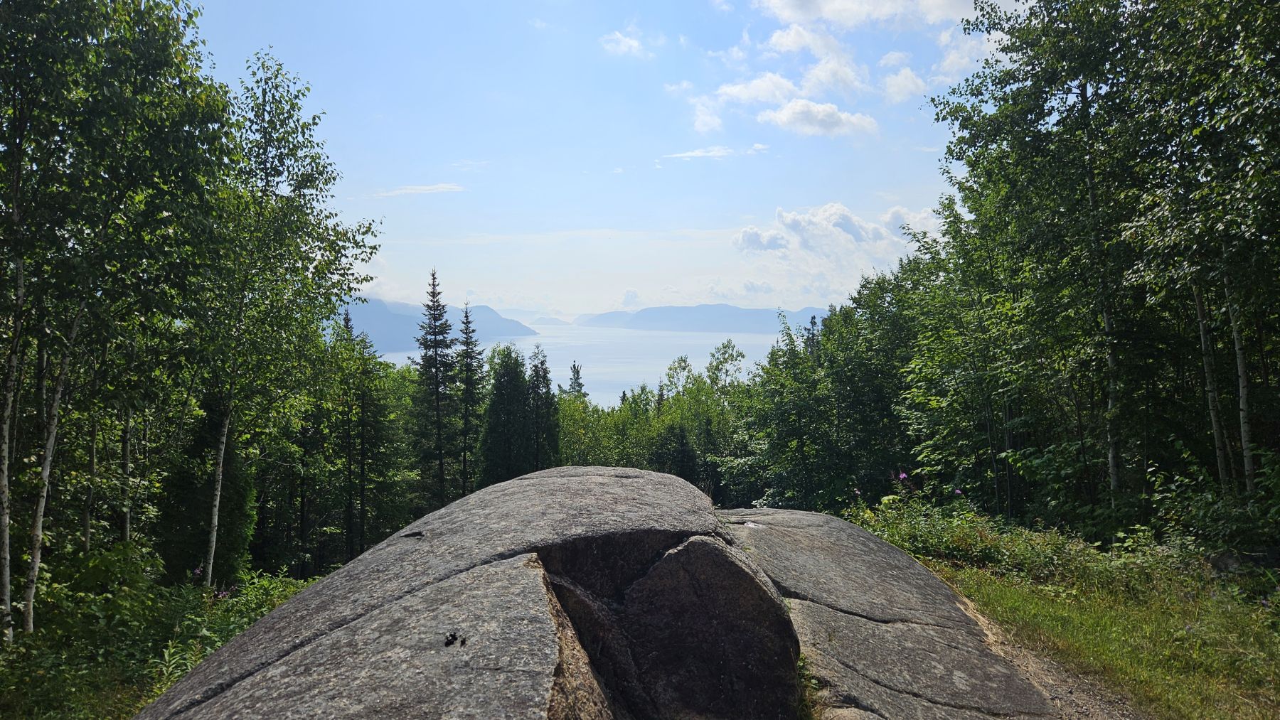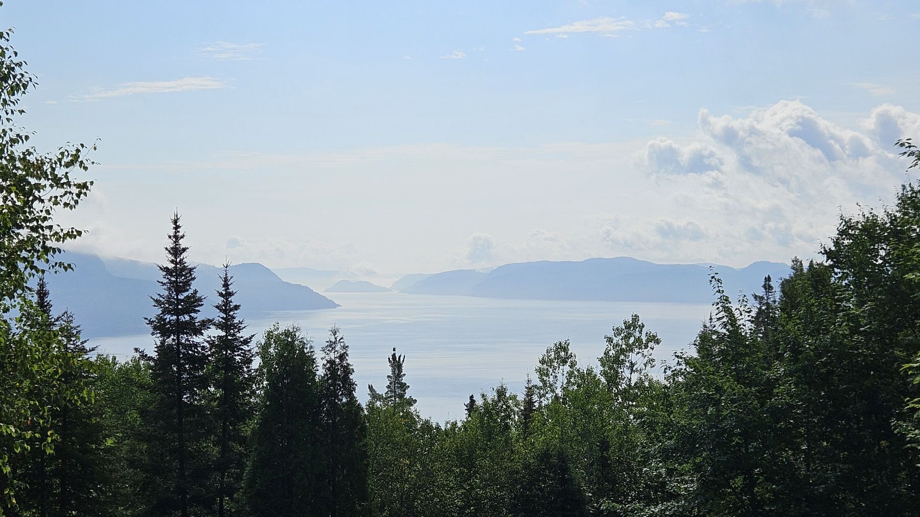 Heute Morgen fuhren wir als Erstes mit dem Auto zum fünf Minuten entfernt gelegenen Aussichtspunkt Tabatière, um erneut die herrliche Aussicht auf den Fluss Saguenay und die warmen Sonnenstrahlen zu geniessen. Dann kehrten wir zurück, um uns vor der vierstündigen Bootsfahrt am Nachmittag noch etwas zu bewegen. Wir schwitzten eine halbe Stunde beim Training auf unserer tollen Holzveranda und legten uns noch eine Weile in den Kuschelsessel. Eine Stunde später war dann das angekündigte Gewitter da. Mit Regenjacke und Zusatzkleidern bepackt machten wir uns auf Richtung L‘ Anse-Saint-Jean, wo unsere Walbeobachtungstour startete. Mit einem Zodiac fuhren wir eine Stunde dem Fluss entlang bis zur Mündung in den Sankt-Lorenz-Strom, wo das Boot langsam zum Stillstand kam. Und dann galt es abzuwarten und die Augen offen zu halten. Und dann waren da plötzlich tatsächlich Wale, was für ein Glück! Diese riesigen Tiere in freier Natur zu sehen war sehr beeindruckend.