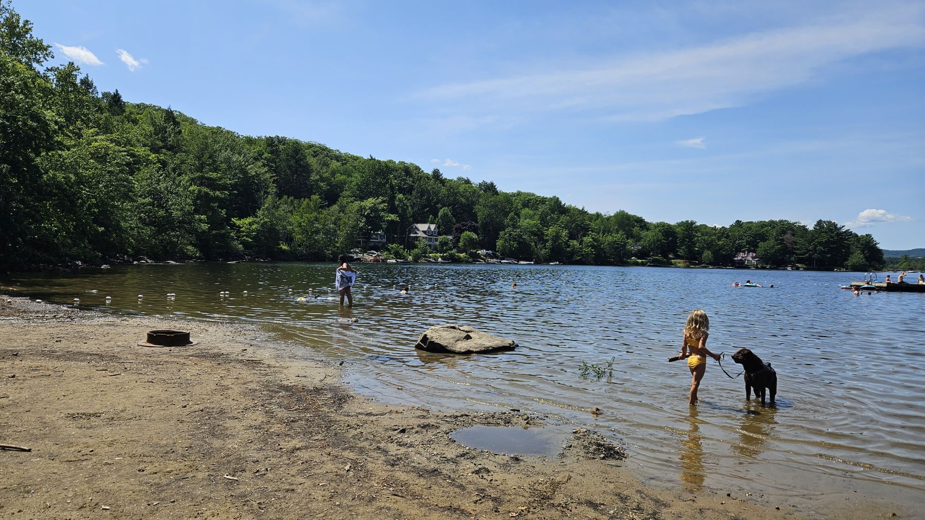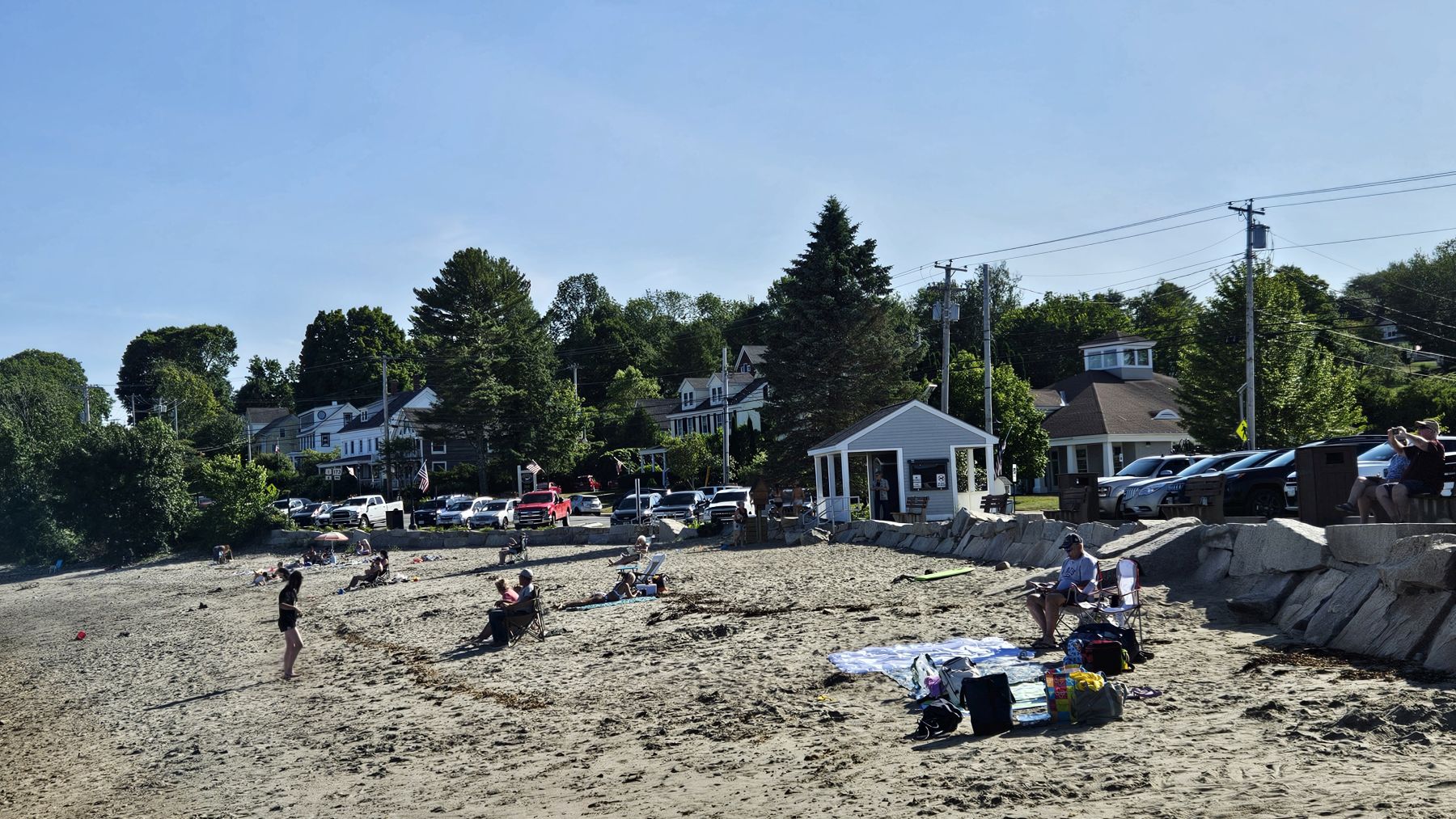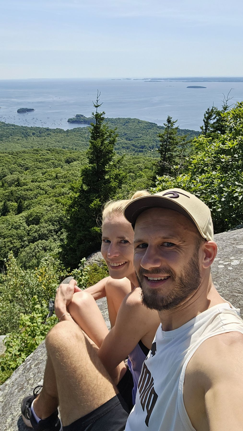 Heute war nochmal ein richtig perfekter Sommertag, schon früh morgens beim Frühstück auf der Terrasse war es richtig warm. Wir packten unsere sieben Sachen und liefen vom 10 Minuten entfernten Parkplatz gegenüber des Barrett’s Cove Beach beim Lake Megunticook los in Richtung Mount Megunticook, natürlich wieder kilometerweise durch den Wald, auf dem Ridge Trail. Der Gipfel – wenn man das denn so nennen kann – war nicht sehr beeindruckend, eine Erhebung mitten im Wald. Aber der knapp eine Meile entfernte Lookout war die Mühe einmal mehr Wert. Die Aussicht auf den Mount Battie und das danebenliegende Camden und die vielen bewaldeten Inseln im Meer war traumhaft. Und mit dem Wind, der hier anscheinend immer ein bisschen bläst, war es richtig schön angenehm. Auf dem Rückweg hatten wir wieder ein interessantes Gespräch mit Einheimischen. Ich bin beeindruckt, wie offen und kommunikativ die AmerikanerInnen sind. Dann ging es zügig zurück, weil gleich gegenüber des Parkplatzes der See auf uns wartete. Dort genossen wir den Nachmittag am Wasser und die gemütliche Stimmung. Abends wollten wir dann für einmal auswärts essen gehen – und dann war alles geschlossen. So holten wir oder besser warteten 40 Minuten auf Pizza. Die grösste Pizza, die wir jemals gegessen haben! Aber war auch richtig fein.