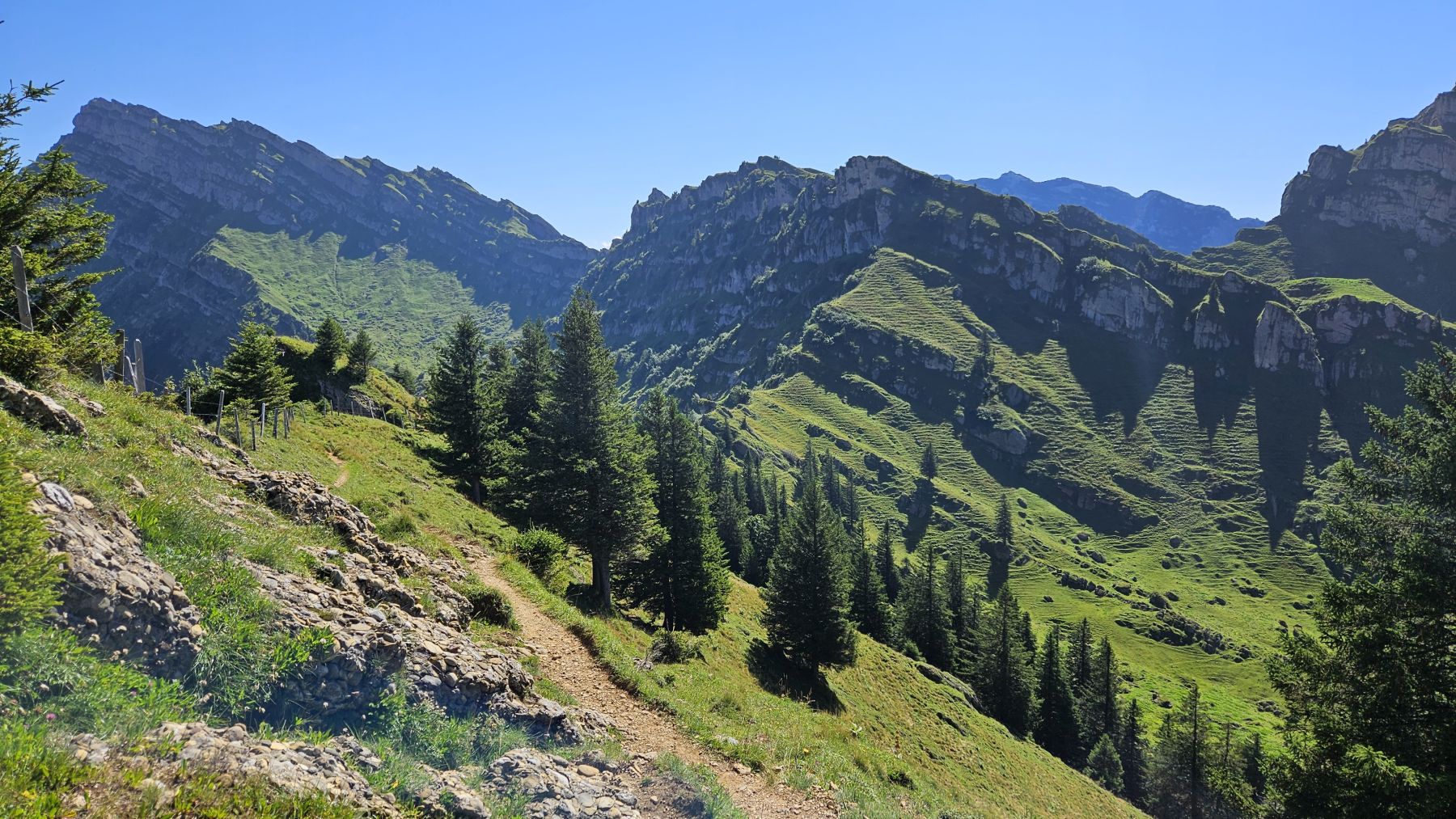 Letztes Sommerferienwochenende und dazu grandioses Wetter – das ruft förmlich nach einer tollen Ferienabschluss-Wanderung in der schönen Schweiz. Über Feldwege erreichten wir Mittlerwängi, wo unsere heutige Tour startete. Auf Umwegen liefen wir über die Wiese steil hoch zum Oberen Bogmen, wo kurze Zeit später die alpine Route auf den Chüemettler begann. Die Anspannung auf meiner Seite war hoch, weil ich nicht einschätzen konnte, ob ich es packen würde oder nicht. Die Kletterpartien waren auch wirklich toll, die Höhenangst machen sie aber leider nicht weg. Aber ich habe es geschafft, trotz zittrigen Beinen und einem hohen Puls. Fotos dieses Streckenteils gibt es leider keine. Auf dem Chüemettler wurden wir mit einer wunderbaren Aussicht auf den Zürichsee und den gegenüberliegenden Speer belohnt. Von dort ging es ruckzuck runter zur Furggen und dann über Bütz wieder ansteigend hoch auf den Speer. Vor allem die letzte halbe Stunde auf den Speer war nochmal richtig steil, teilweise auch abschüssig. Nochmal ein pochendes Herz. Dann endlich hatten wir das Ziel erreicht und die Anspannung liess etwas nach. Wir genossen die wunderbare Aussicht und die Ruhe der Berge. Nach der Mittagspause ging es zurück nach Bütz und von da direkt hinunter nach Mittlerwängi, wo wir in unsere Badehose stiegen, um uns auf dem Nachhauseweg noch ein abkühlendes Bad in der Thur gönnen zu können. Was für ein perfekter Ferienabschluss!