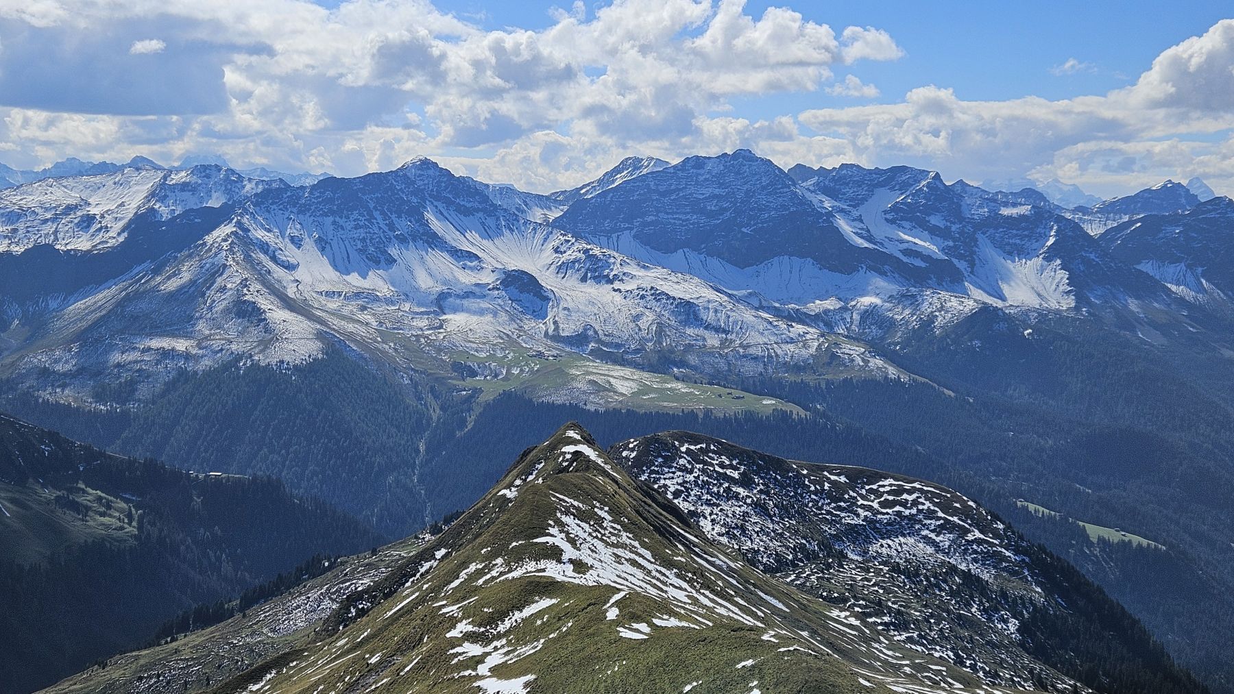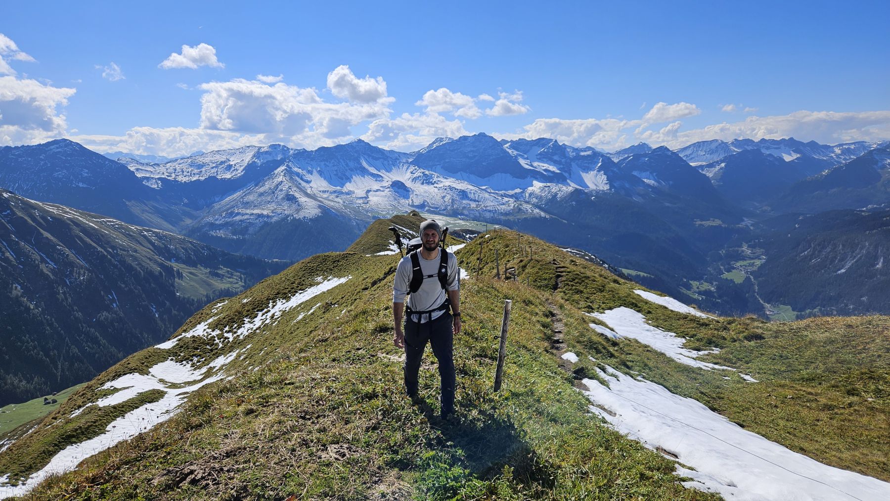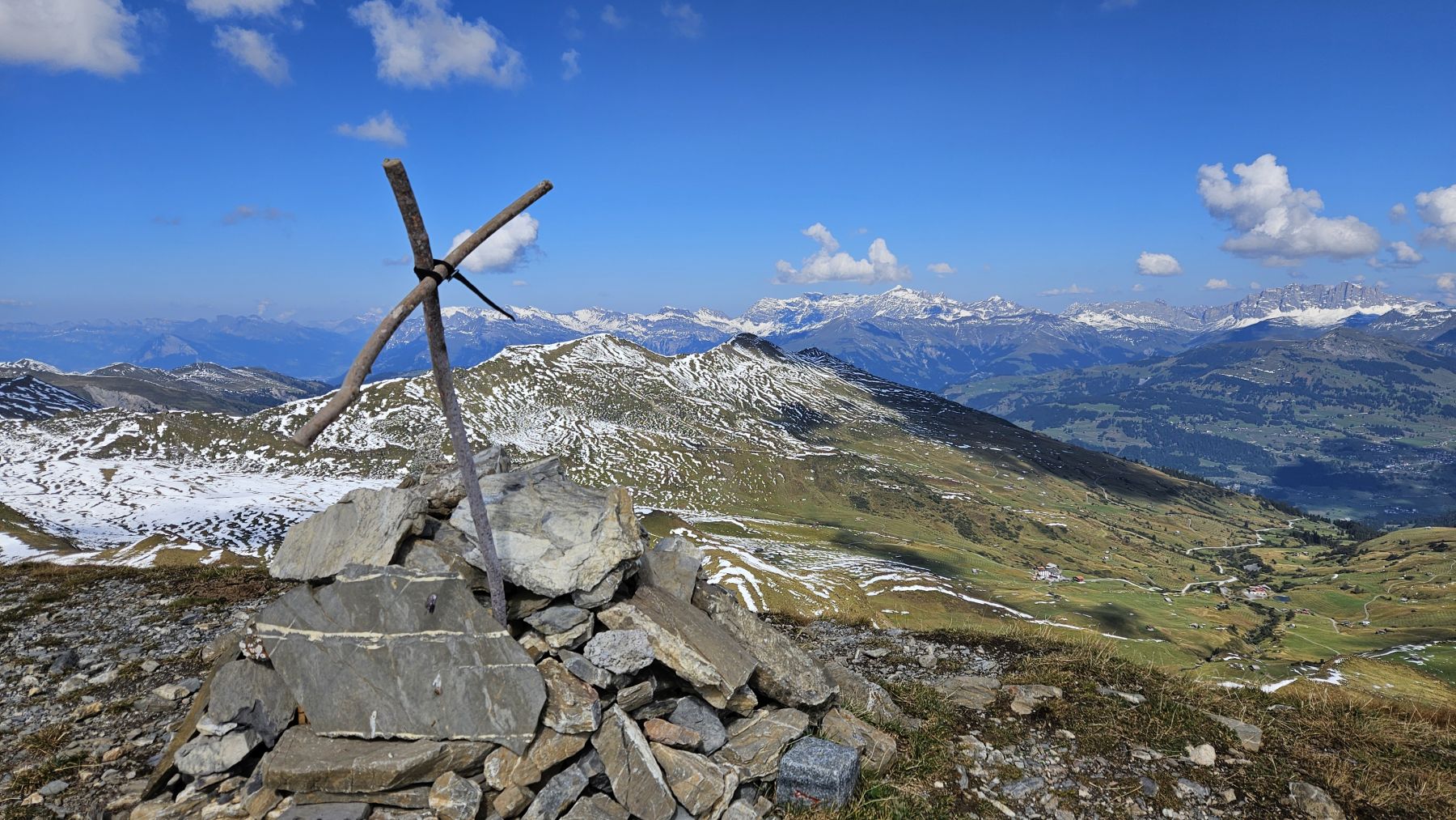 Unser zweites Wochenende in unserer neuen Ferienwohnung und schon sehen wir Schnee! Die höchsten Gipfel, mitunter auch das Weisshorn, sind schon richtig schön bedeckt. Auf das auf 2460 Metern gelegene Mattjisch Horn sollten wir es aber mit den Wanderschuhen gerade noch schaffen. So machten wir uns am Samstagmorgen bei traumhaftem Sonnenschein von Maselfa auf den Weg Richtung Peister Alp, mehrheitlich eben einem Feldweg entlang mit wunderschöner Aussicht. Wenige hundert Meter nach der Peister Alp wechselten wir dann auf einen Wanderweg, der stetig steiler wurde, am Spitzenbüel vorbei und stets mit dem etwas langweilig erscheinenden Mattjisch Horn vor uns im Blickfeld. Wenn man jedoch oben steht, ist die Aussicht alles andere als langweilig! Man sieht von den Fideriser Heubergen über die halbverschneiten Gipfel des Mittagspitz und des Cunggel über das vollverschneite Weisshorn bis tief in das Aroser Tal. Grandios! Nachdem wir beim Aufstieg nach und nach eine Schicht Kleider nach der anderen ausgezogen hatten, war es auf dem Gipfel mit etwas Wind dann doch wieder recht kühl. Wir packten uns gut ein, genossen die frische Luft, die tolle Aussicht und die Ruhe. Und machten uns dann zügigen Schrittes auf den Rückweg. Soooo schön, dass wir das Mattjisch Horn unseren Hausberg nennen dürfen.