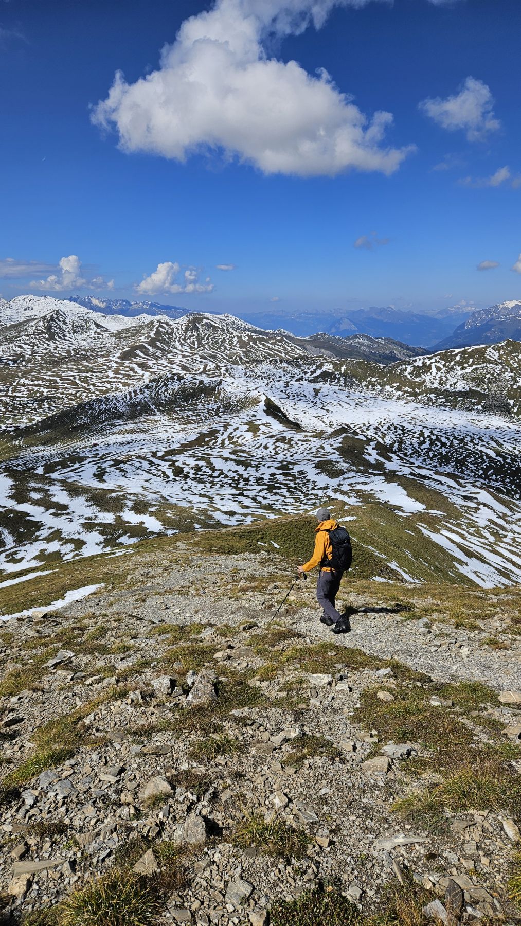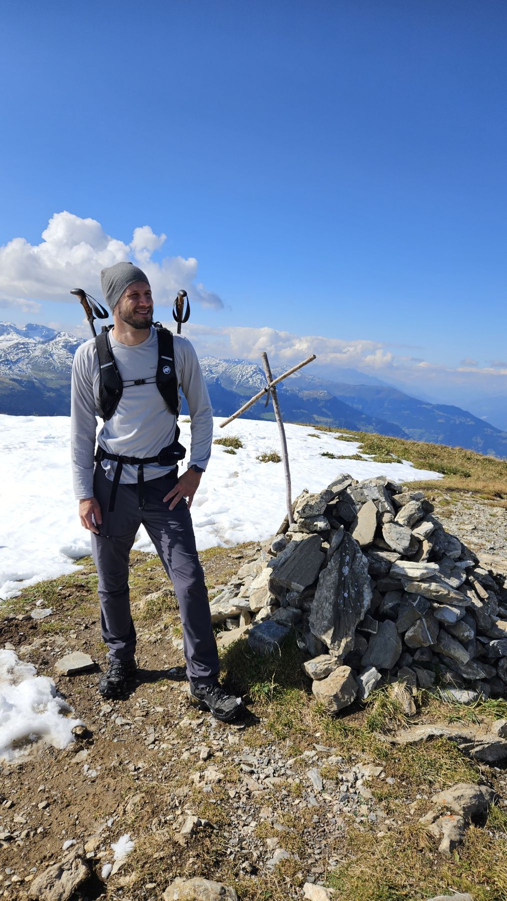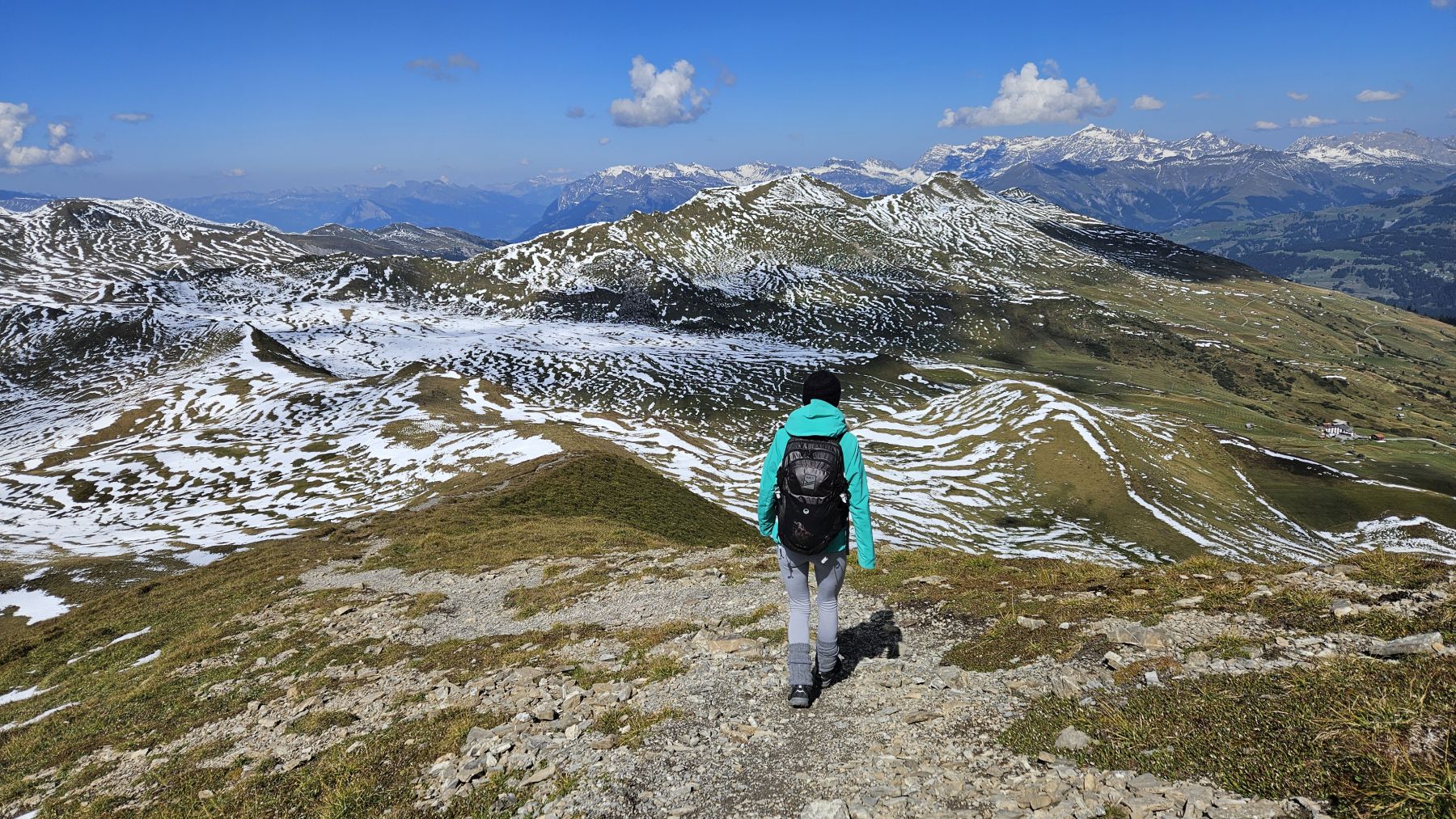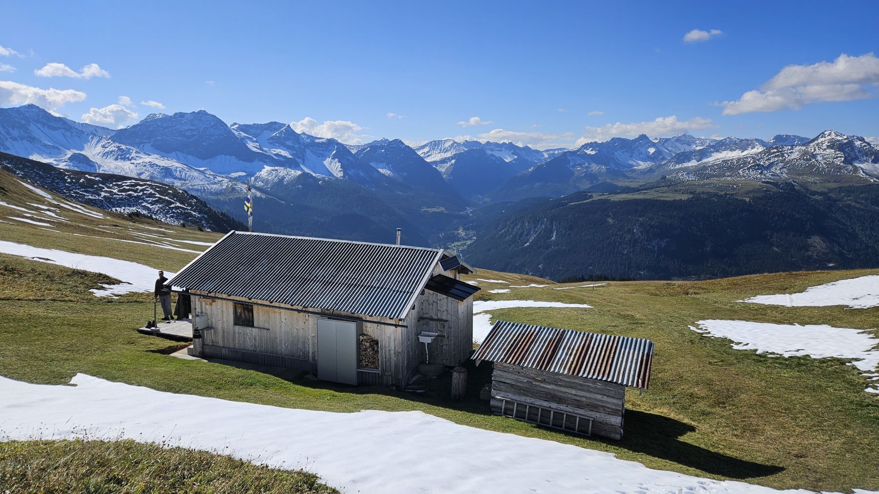 Unser zweites Wochenende in unserer neuen Ferienwohnung und schon sehen wir Schnee! Die höchsten Gipfel, mitunter auch das Weisshorn, sind schon richtig schön bedeckt. Auf das auf 2460 Metern gelegene Mattjisch Horn sollten wir es aber mit den Wanderschuhen gerade noch schaffen. So machten wir uns am Samstagmorgen bei traumhaftem Sonnenschein von Maselfa auf den Weg Richtung Peister Alp, mehrheitlich eben einem Feldweg entlang mit wunderschöner Aussicht. Wenige hundert Meter nach der Peister Alp wechselten wir dann auf einen Wanderweg, der stetig steiler wurde, am Spitzenbüel vorbei und stets mit dem etwas langweilig erscheinenden Mattjisch Horn vor uns im Blickfeld. Wenn man jedoch oben steht, ist die Aussicht alles andere als langweilig! Man sieht von den Fideriser Heubergen über die halbverschneiten Gipfel des Mittagspitz und des Cunggel über das vollverschneite Weisshorn bis tief in das Aroser Tal. Grandios! Nachdem wir beim Aufstieg nach und nach eine Schicht Kleider nach der anderen ausgezogen hatten, war es auf dem Gipfel mit etwas Wind dann doch wieder recht kühl. Wir packten uns gut ein, genossen die frische Luft, die tolle Aussicht und die Ruhe. Und machten uns dann zügigen Schrittes auf den Rückweg. Soooo schön, dass wir das Mattjisch Horn unseren Hausberg nennen dürfen.