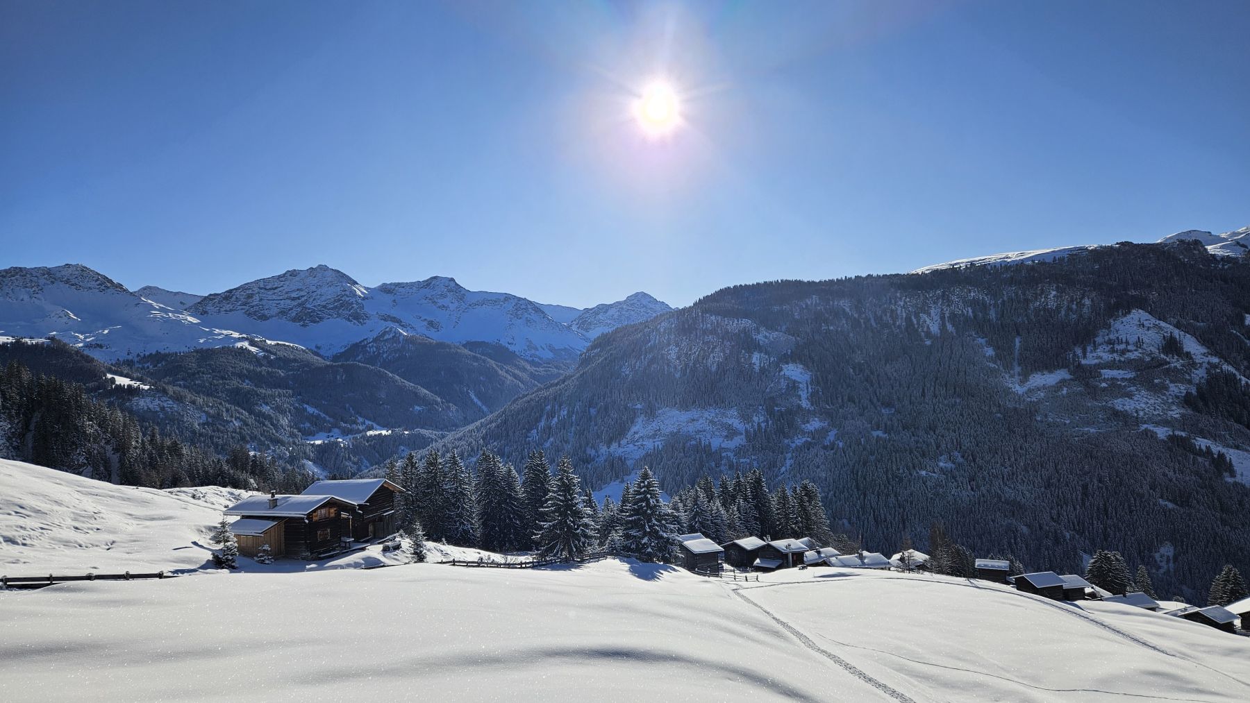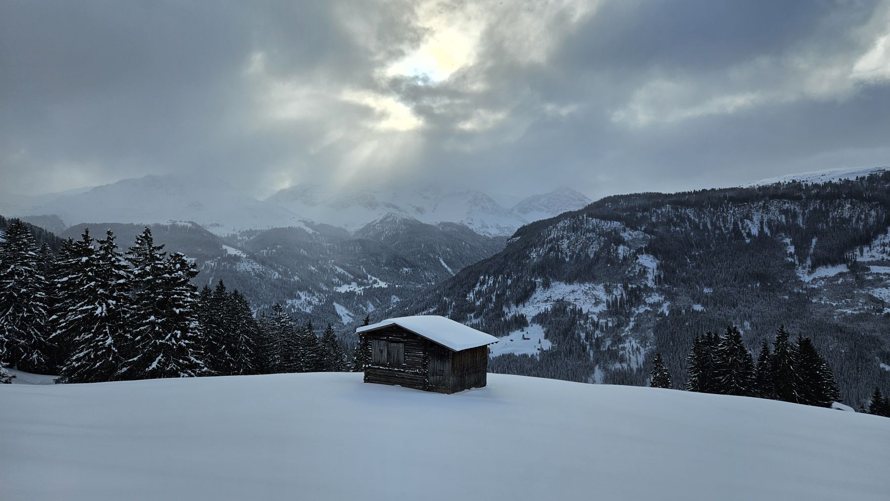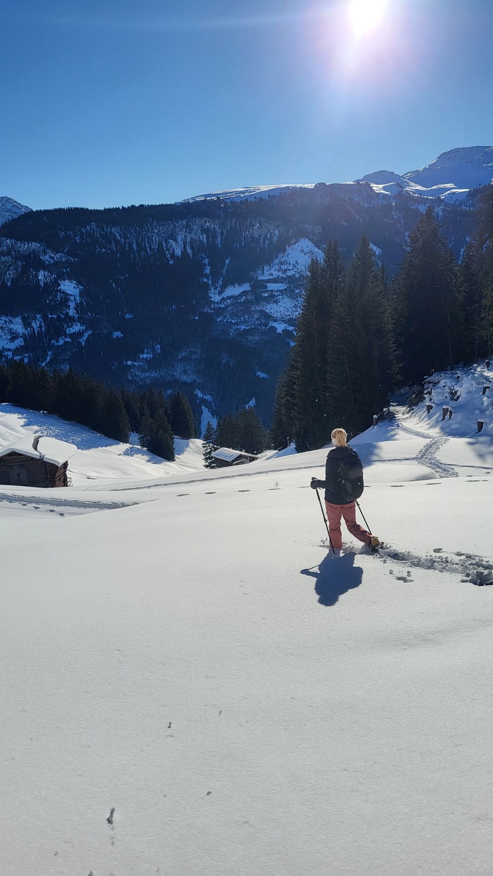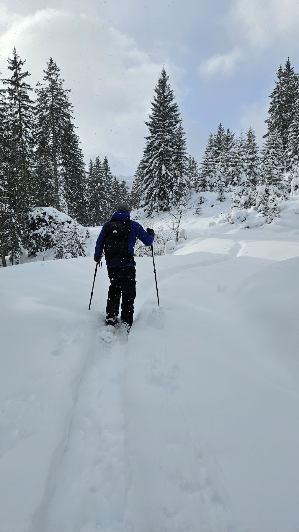 Wie so oft wurden wir anfangs Weihnachtsferien krank. So wurde die Anreise in den Chegelboden noch strenger als erwartet. Und da es leider bereits zu viel Schnee hatte, konnten wir mit dem Auto auch nicht hochfahren. Schlimmer noch, wir blieben sogar stecken. Nach einigen Transportgängen zu Fuss hatten wir immerhin unser Gepäck Mitte Nachmittag in der Wohnung. Und wie gerufen kam dann der Bauer Marco mit seinem Wintergefährt vorbei, zog unser Auto aus dem Schnee und fuhr unsere Tourenskis noch hoch. Was für ein Glück! Die nächsten paar Tage war es eher düster und schneite fast ununterbrochen. Wir genossen es jedoch, waren wir ja beide immer noch nicht bei vollen Kräften und hatten auch schon lange nicht mehr so viel Schnee erlebt. Ab Montag waren wir dann auch jeden Tag im Schnee; entweder auf den Schneeschuhen, auf den Tourenskis oder auf den Skis. Und während es in den ersten paar Tagen noch völlig unberührt und tief verschneit war, so schmolz der Schnee mit jedem weiteren Sonnentag nur so dahin, wir wir am Ende unserer zehntägigen Ferien wieder viele grüne Flecken sahen. Was für unvergesslich schöne Weihnachtsferien in unserer urgemütlichen Ferienwohnung im Chegelboden!