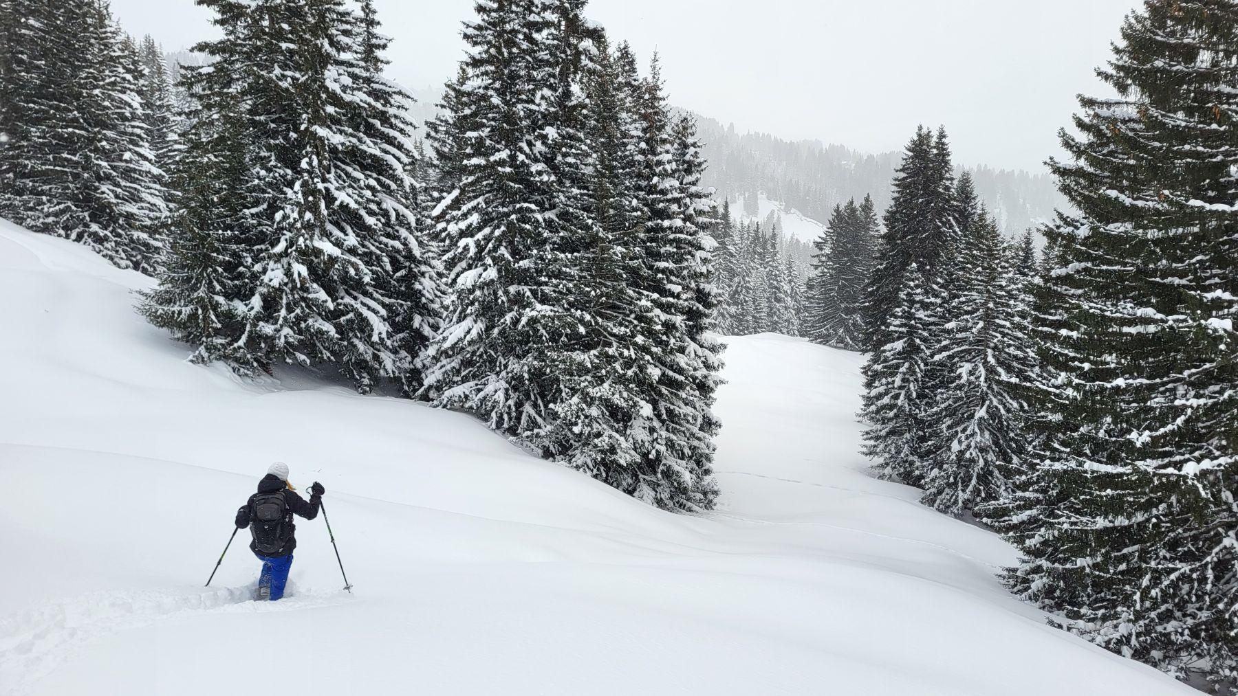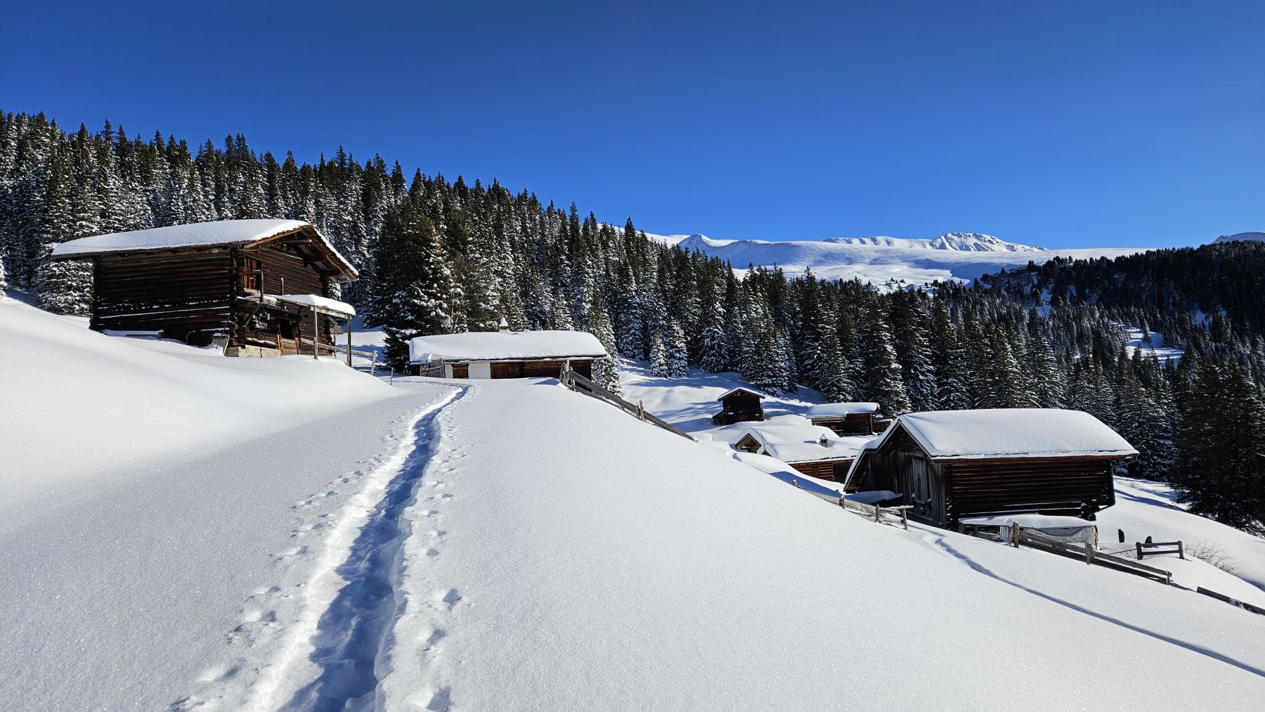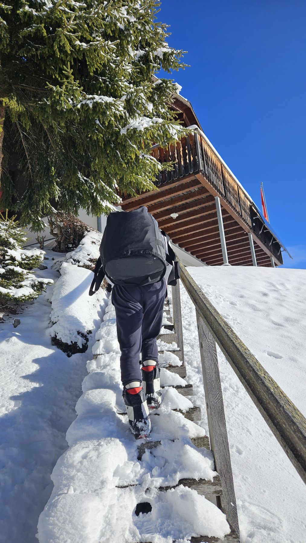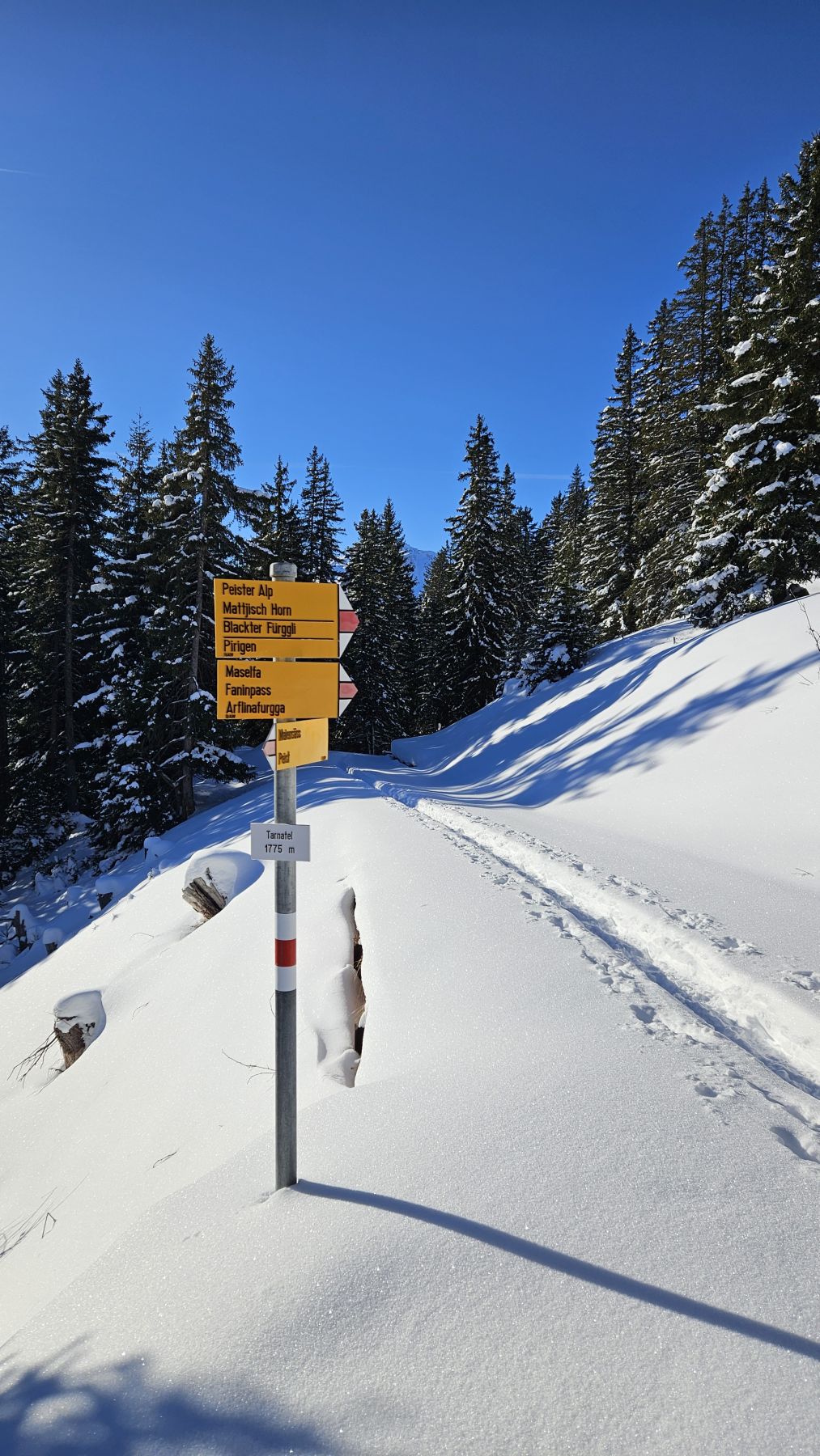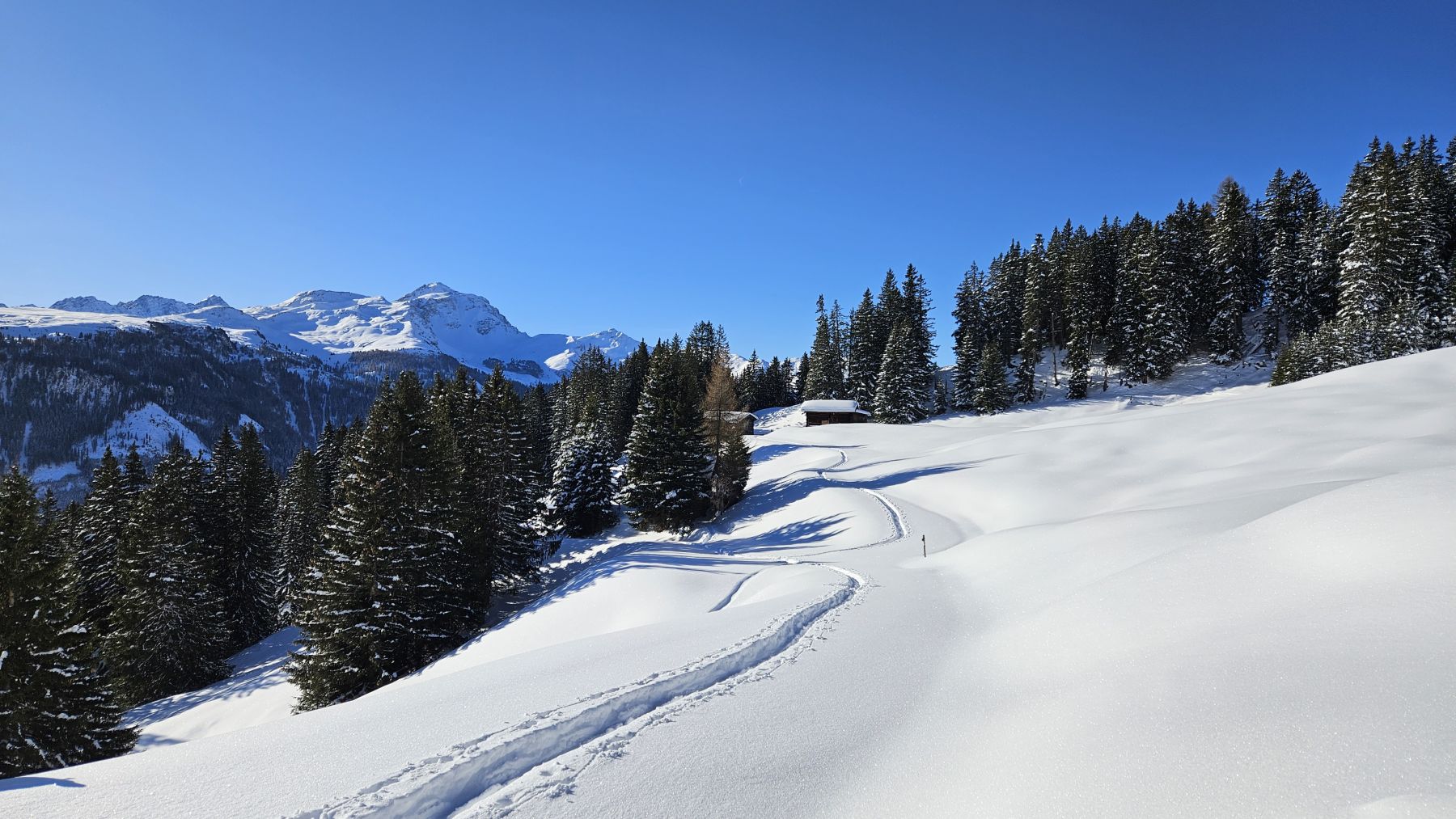 Wie so oft wurden wir anfangs Weihnachtsferien krank. So wurde die Anreise in den Chegelboden noch strenger als erwartet. Und da es leider bereits zu viel Schnee hatte, konnten wir mit dem Auto auch nicht hochfahren. Schlimmer noch, wir blieben sogar stecken. Nach einigen Transportgängen zu Fuss hatten wir immerhin unser Gepäck Mitte Nachmittag in der Wohnung. Und wie gerufen kam dann der Bauer Marco mit seinem Wintergefährt vorbei, zog unser Auto aus dem Schnee und fuhr unsere Tourenskis noch hoch. Was für ein Glück! Die nächsten paar Tage war es eher düster und schneite fast ununterbrochen. Wir genossen es jedoch, waren wir ja beide immer noch nicht bei vollen Kräften und hatten auch schon lange nicht mehr so viel Schnee erlebt. Ab Montag waren wir dann auch jeden Tag im Schnee; entweder auf den Schneeschuhen, auf den Tourenskis oder auf den Skis. Und während es in den ersten paar Tagen noch völlig unberührt und tief verschneit war, so schmolz der Schnee mit jedem weiteren Sonnentag nur so dahin, wir wir am Ende unserer zehntägigen Ferien wieder viele grüne Flecken sahen. Was für unvergesslich schöne Weihnachtsferien in unserer urgemütlichen Ferienwohnung im Chegelboden!