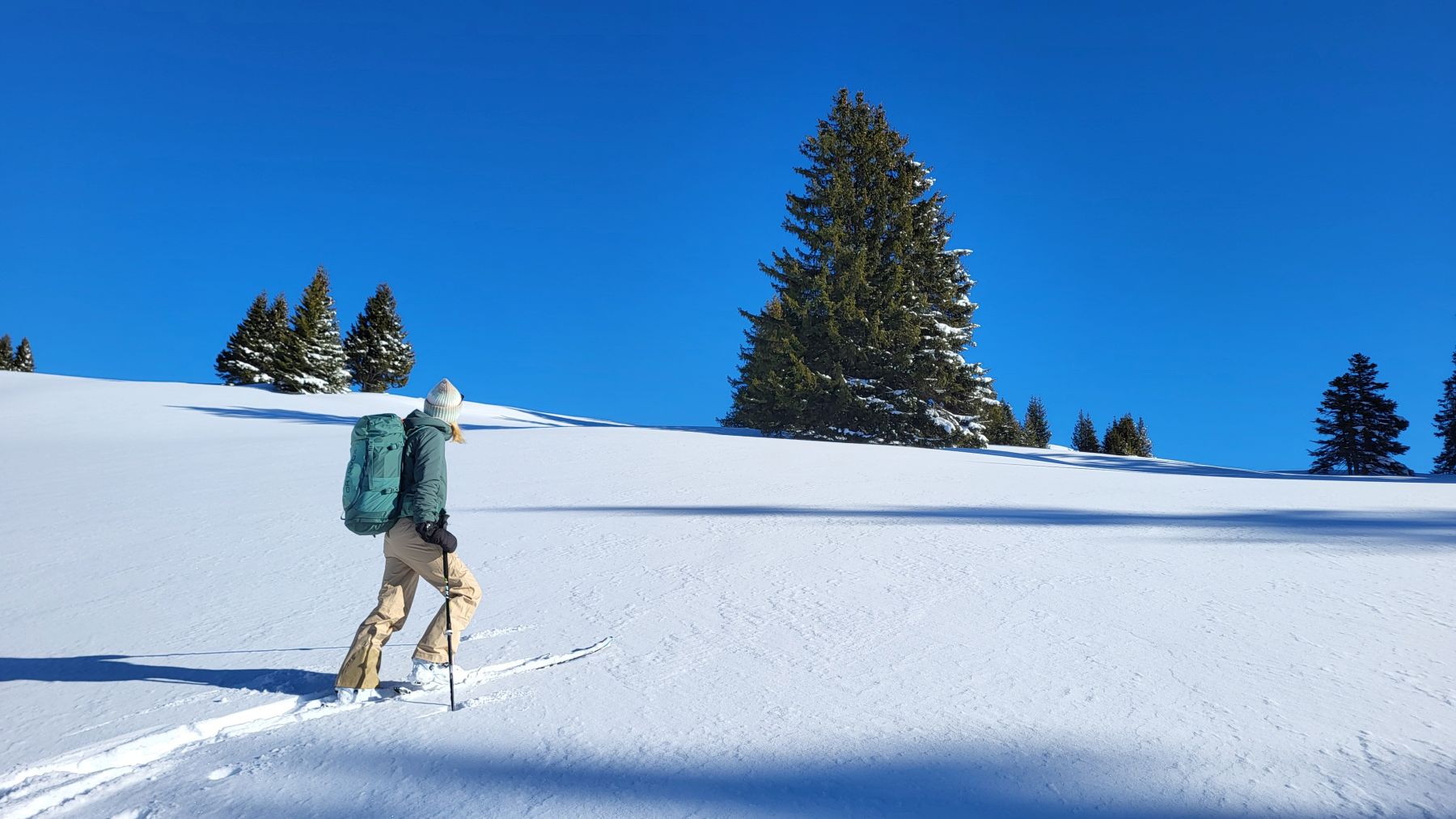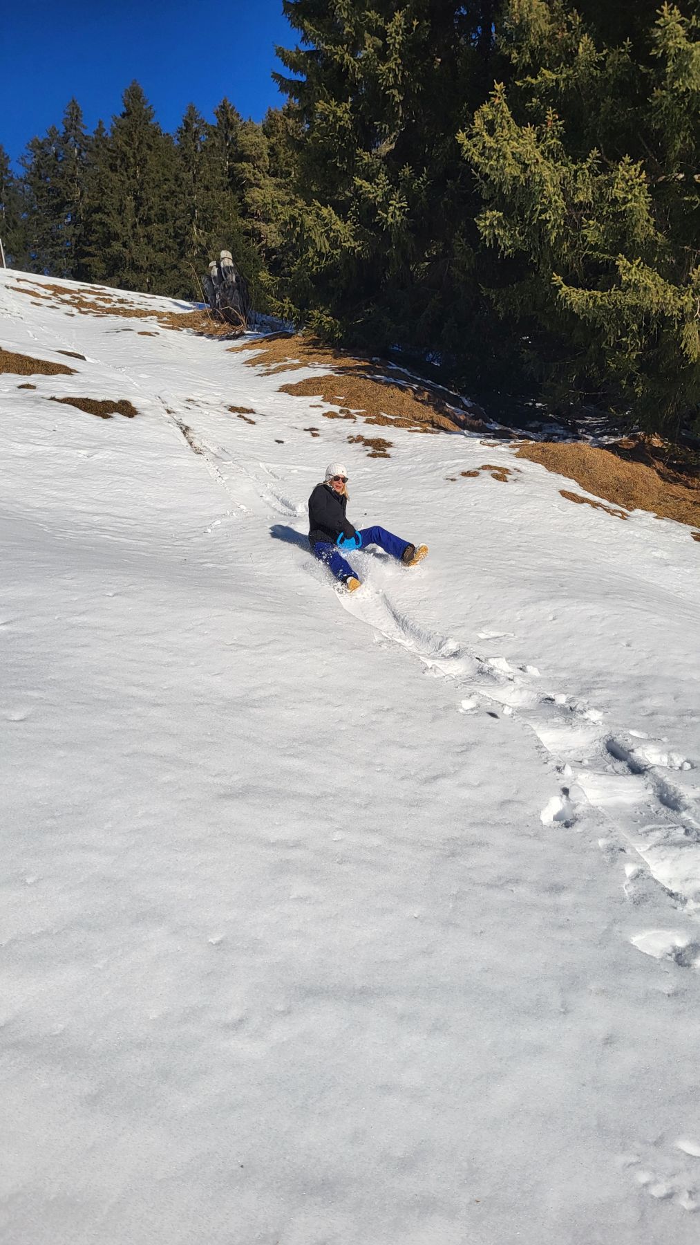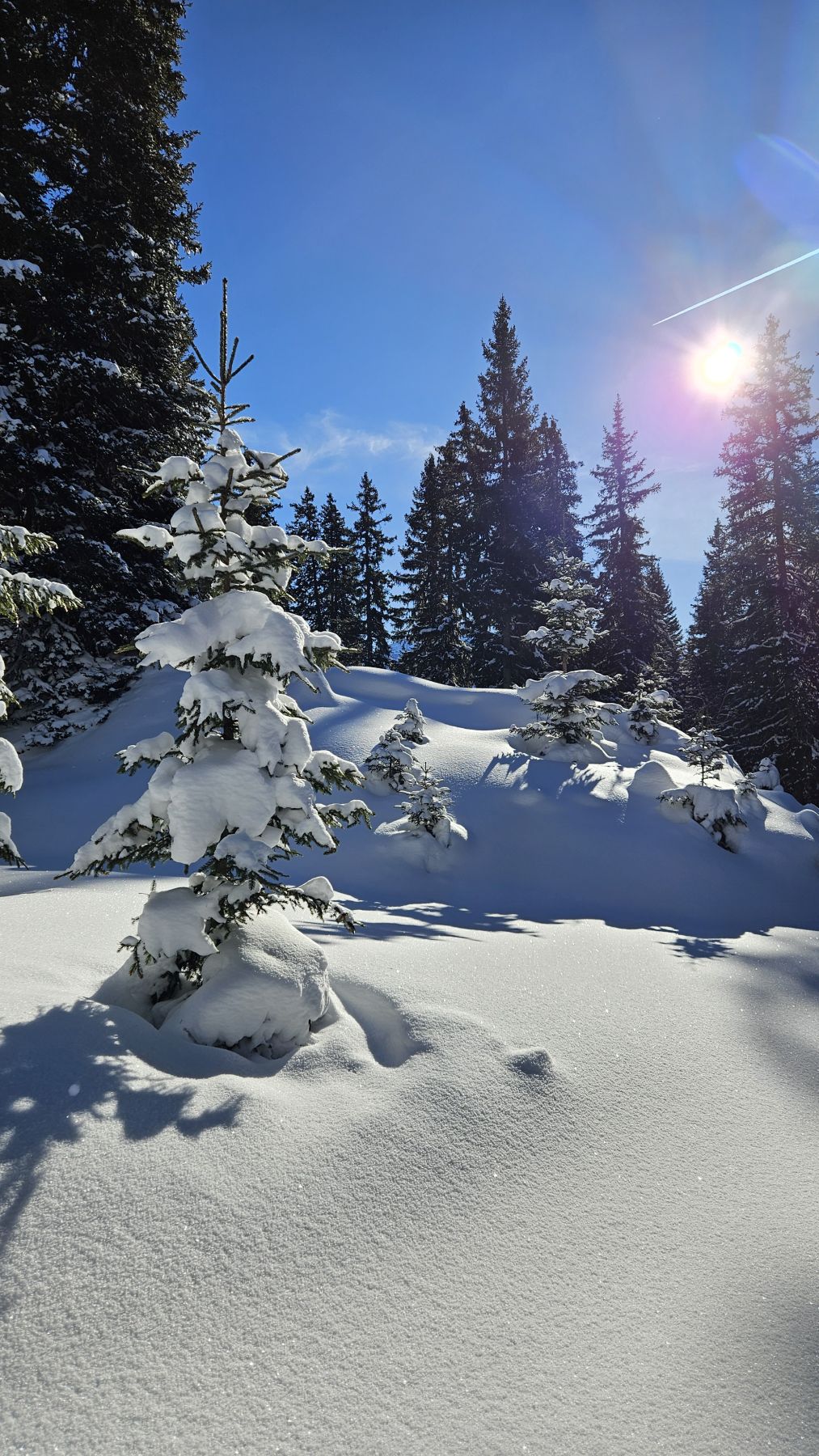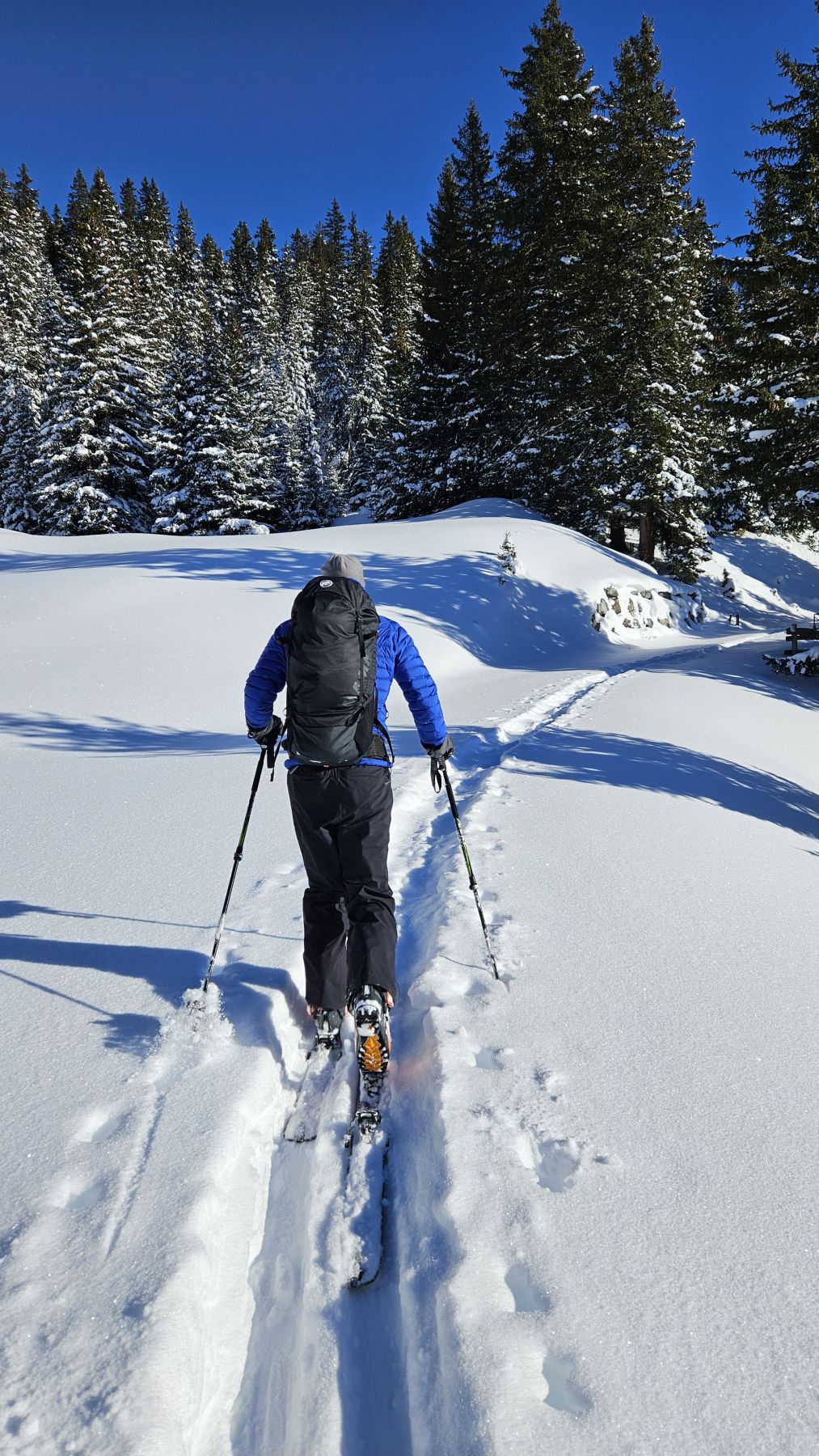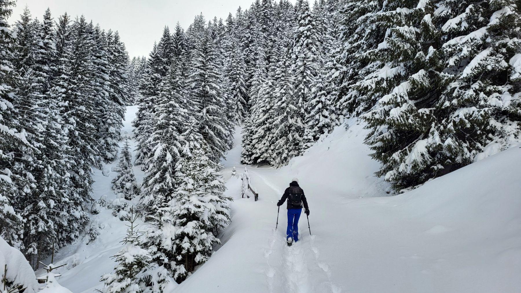Wie so oft wurden wir anfangs Weihnachtsferien krank. So wurde die Anreise in den Chegelboden noch strenger als erwartet. Und da es leider bereits zu viel Schnee hatte, konnten wir mit dem Auto auch nicht hochfahren. Schlimmer noch, wir blieben sogar stecken. Nach einigen Transportgängen zu Fuss hatten wir immerhin unser Gepäck Mitte Nachmittag in der Wohnung. Und wie gerufen kam dann der Bauer Marco mit seinem Wintergefährt vorbei, zog unser Auto aus dem Schnee und fuhr unsere Tourenskis noch hoch. Was für ein Glück! Die nächsten paar Tage war es eher düster und schneite fast ununterbrochen. Wir genossen es jedoch, waren wir ja beide immer noch nicht bei vollen Kräften und hatten auch schon lange nicht mehr so viel Schnee erlebt. Ab Montag waren wir dann auch jeden Tag im Schnee; entweder auf den Schneeschuhen, auf den Tourenskis oder auf den Skis. Und während es in den ersten paar Tagen noch völlig unberührt und tief verschneit war, so schmolz der Schnee mit jedem weiteren Sonnentag nur so dahin, wir wir am Ende unserer zehntägigen Ferien wieder viele grüne Flecken sahen. Was für unvergesslich schöne Weihnachtsferien in unserer urgemütlichen Ferienwohnung im Chegelboden!