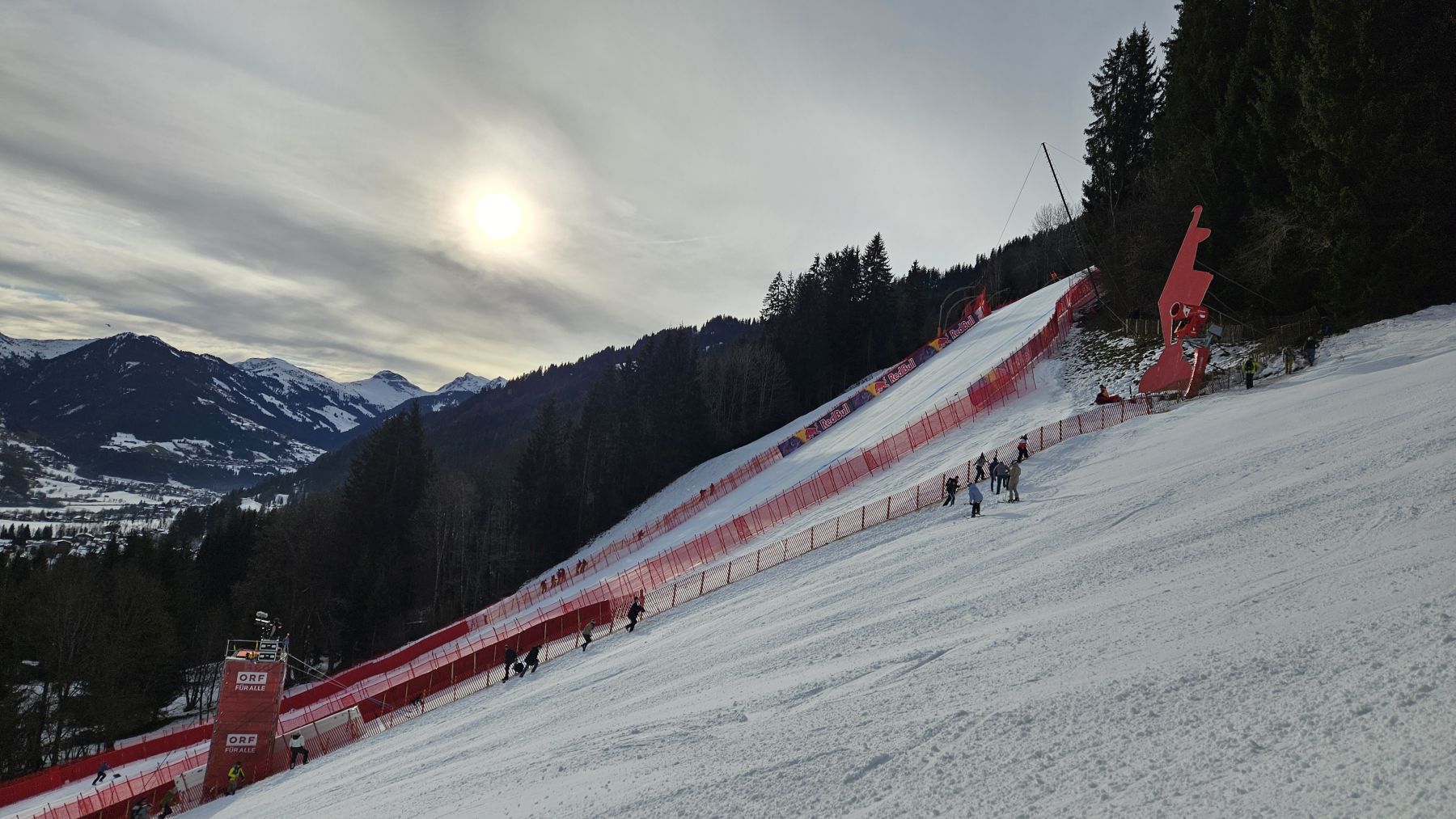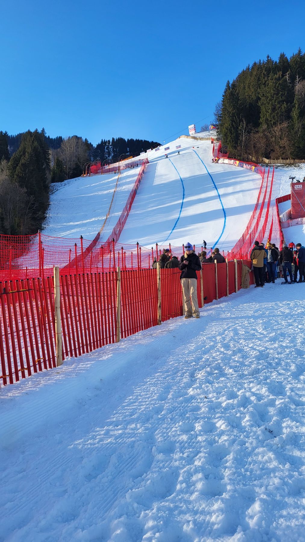 Die Hahnenkamm-Abfahrt ist legendär – und dieses Jahr gehörten wir zu den 50’000 ZuschauerInnen dieser irren Abfahrt. Es war das Geburtstagsgeschenk für meinen Vater, der sich riesig darüber freute. Nach einem frühen Start in den Tag und einer kurzen Kaffeepause in der Tankstelle, stiegen wir in Brixen im Thale in den Zug Richtung Kitzbühel und erreichten so das Renngelände schon um 9 Uhr morgens. Da war es noch angenehm entspannt und wir konnten uns in aller Ruhe unser Plätzchen aussuchen. Wir platzierten uns etwas oberhalb des Zielgeländes, direkt an der Piste und mit Blick auf den grossen Bildschirm. So konnten wir das Rennen im Fernseher und live mitverfolgen und waren bereit für das grosse Spektakel. Die zwei Stunden bis zum Rennen wurden uns auch einfach gemacht: Es gab verschiedene Interviews, Fallschirmspringer und eine Flugshow. Bis zum Rennstart um 11.30 Uhr war dann das Gelände auch gerammelt voll und es lag Spannung in der Luft. Und obwohl kein Schweizer siegen konnte, war es ein grandioser Tag. Auch das Wetter machte wunderbar mit; angenehm von den Temperaturen und immer wieder auch sonnig. Nach dem Rennen bestand die grösste Herausforderung darin, den sehr rutschigen Hand wieder hinunterzukommen. Nachdem wir das geschafft hatten, holten wir uns noch ein Fleischkäse-Semmerl und machten uns dann auf den Rückweg. Für die unzähligen kostspieligen Parties in Kitzbühel konnten wir uns nicht mehr motivieren, genossen dafür einen gemütlichen Abend in unserer Ferienwohnung in Brixen im Thale.