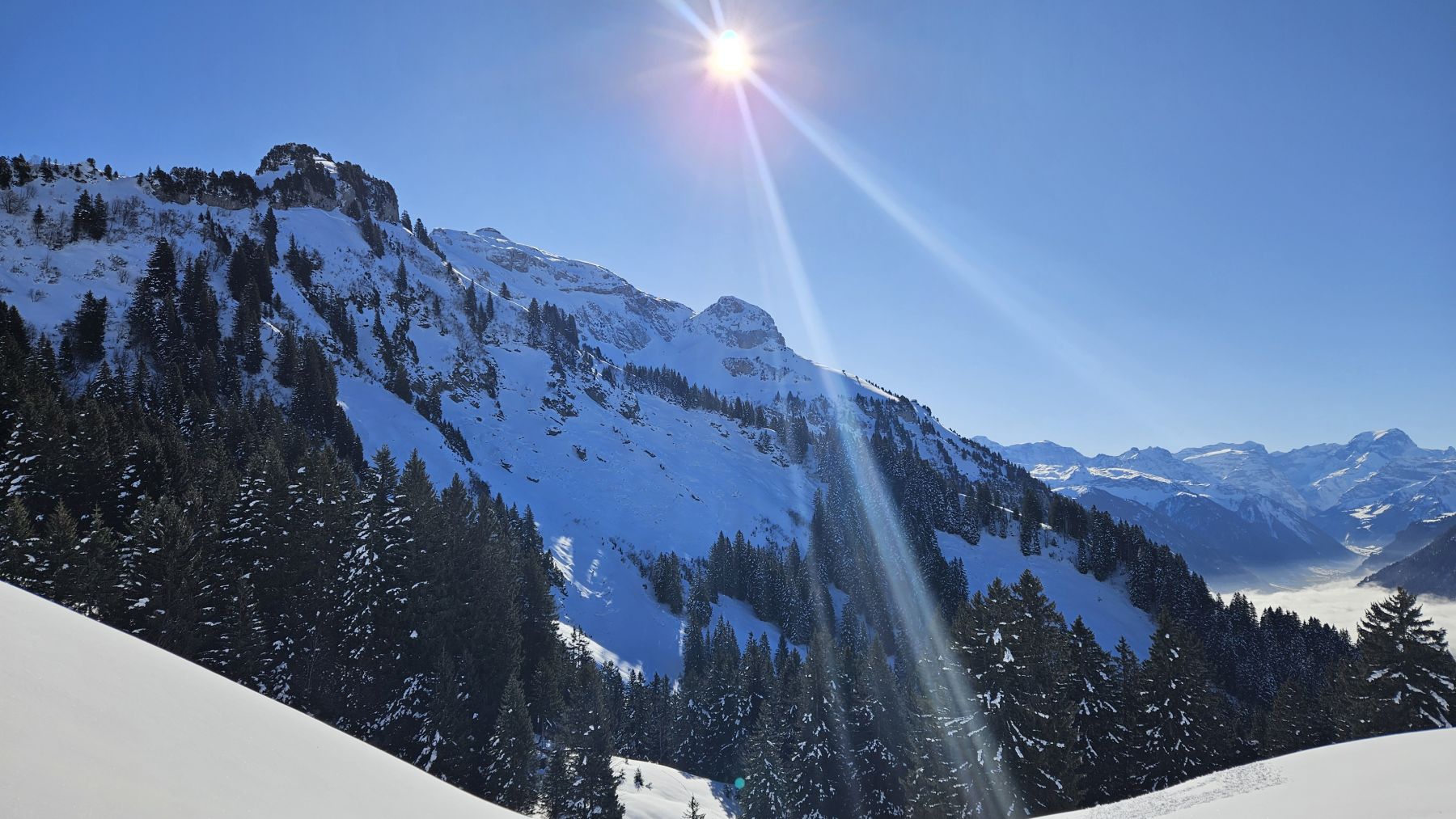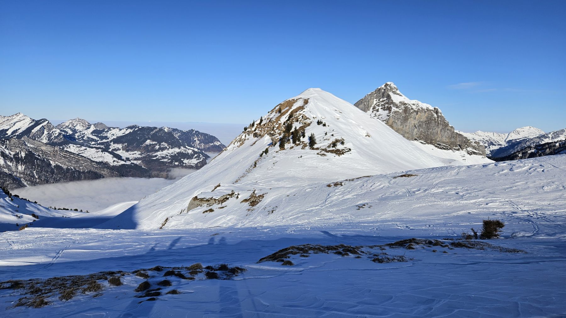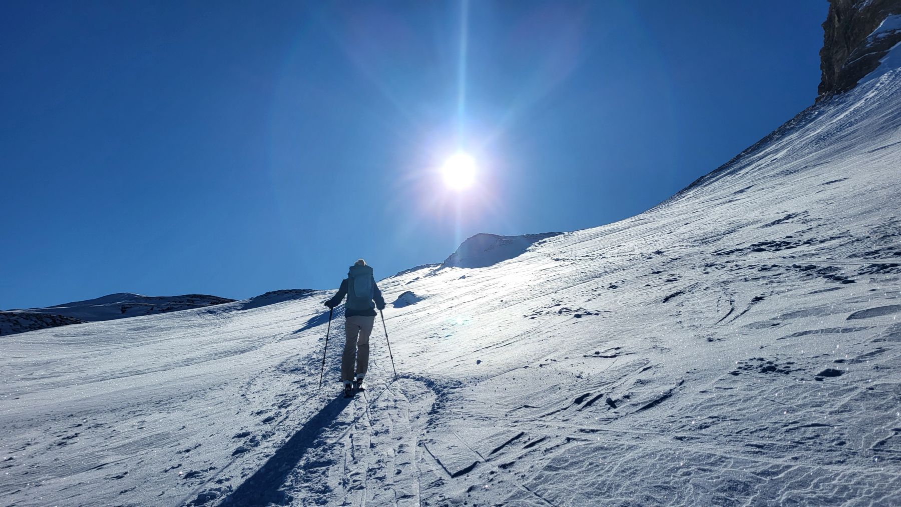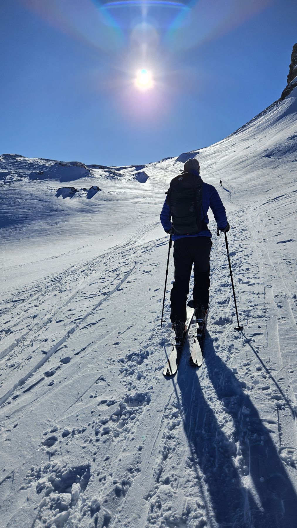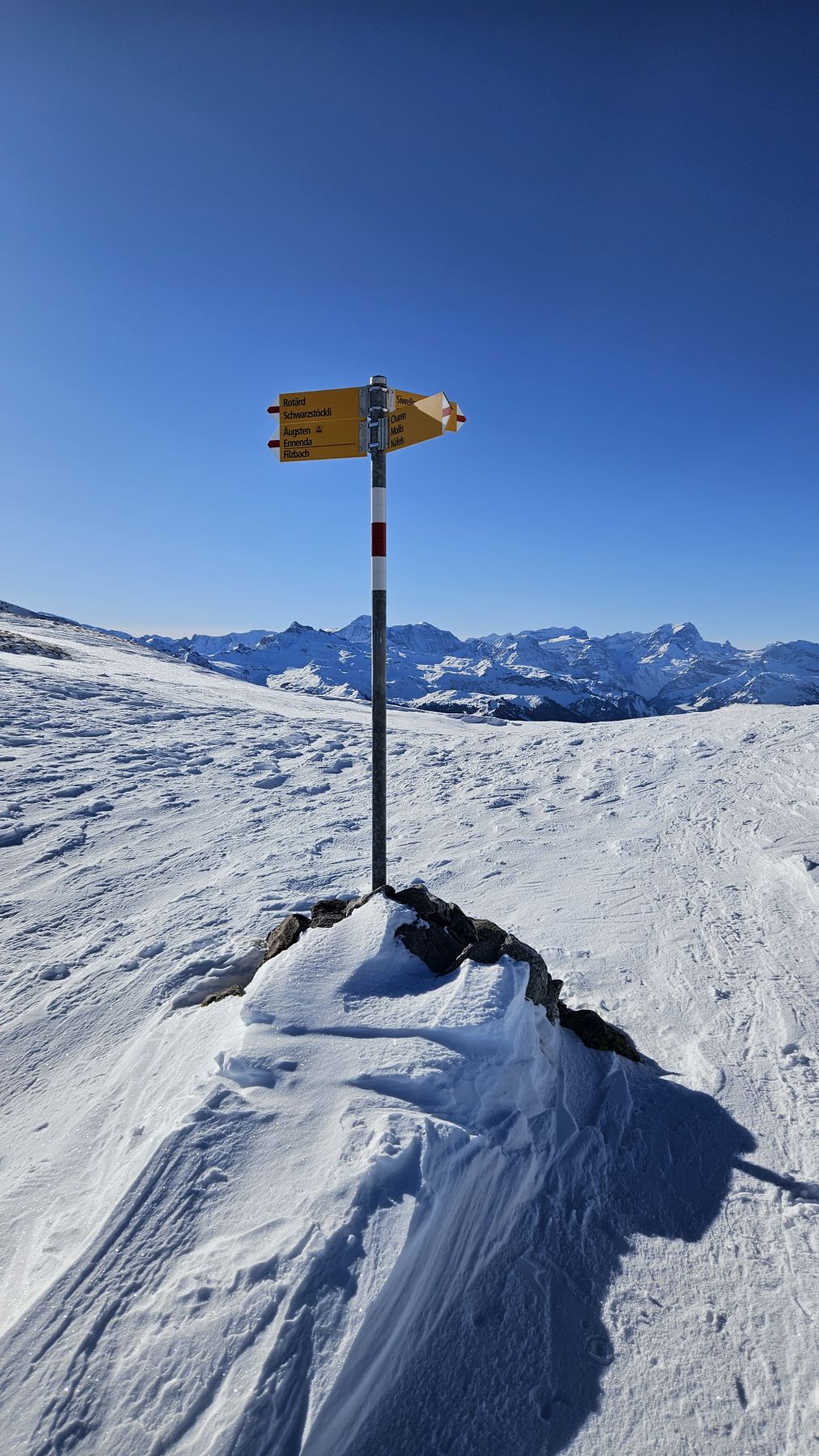 Die Wetterprognosen für den letzten Sportferientag waren grossartig und das wollten wir nochmal ausnützen. Bei nebligen Bedingungen machten wir uns früh auf den Weg zum Skilift Mollis, wo wir dann auch endlich Schnee vorfanden. Und auch einige andere SkitourengängerInnen. Die Tour auf den Schilt ist beliebt und bekannt, daher haben wir damit gerechnet, dass wir nicht die Einzigen sein würden. Nach einer kurzen Abfahrt legten wir die Felle auf und zogen im Schatten los Richtung Färiboden, angenehm ansteigend, stetig hoch. Auf dem Färiboden erwartete uns bereits die Sonne. Weiter ging es rund um den Sivellen und dann noch ein kurzes Stück hoch auf den Schilt, wo es sich bereits mehrere SkitourengängerInnen gemütlich gemacht hatten. Wir fuhren ein paar Meter weiter und fanden dort ein ruhiges Plätzchen mit einer gewaltigen Aussicht auf das Nebelmeer und die umliegenden Gipfel. Es erstaunt nicht, dass die Tour so beliebt ist; sie ist sehr angenehm zu gehen, landschaftlich wunderschön und auch konditionell gut machbar. Einfach ein Hit! Wir kommen bestimmt wieder, am liebsten an einem Wochentag mit weniger Leuten.