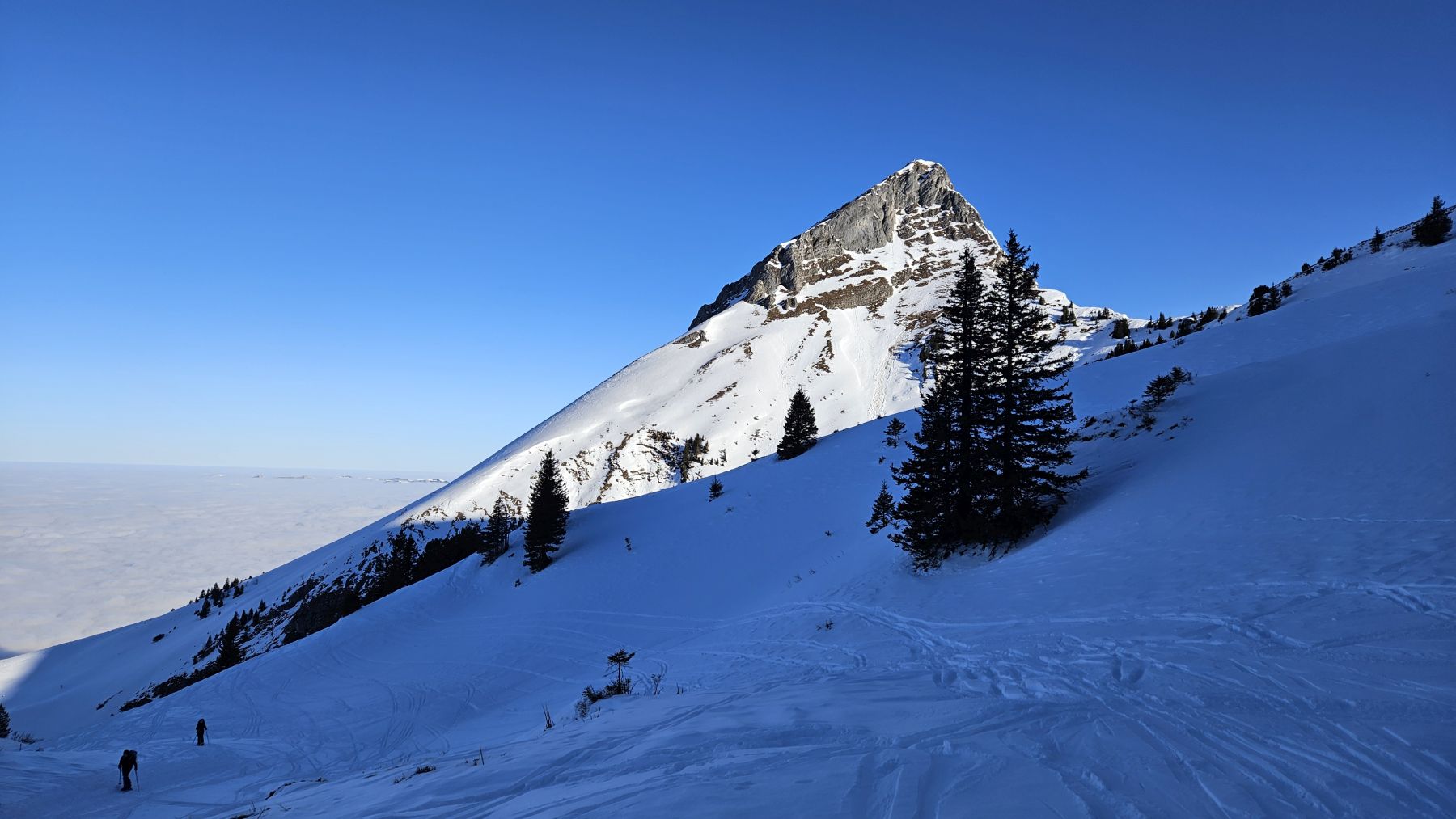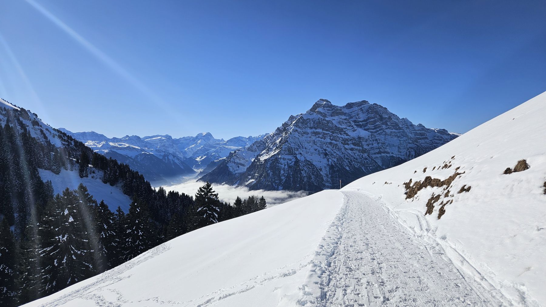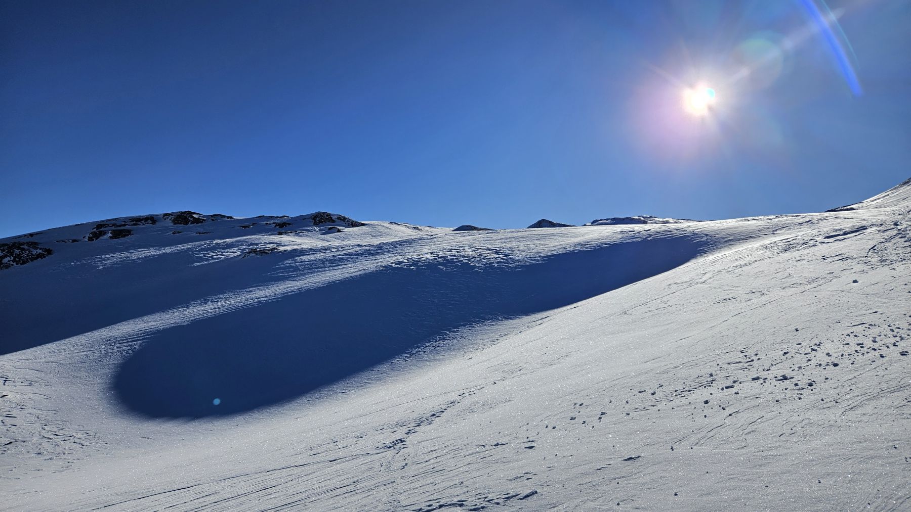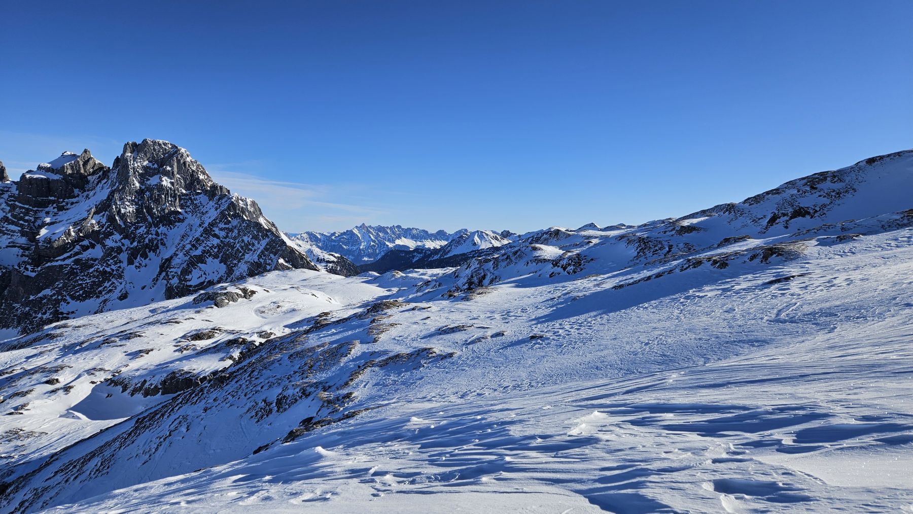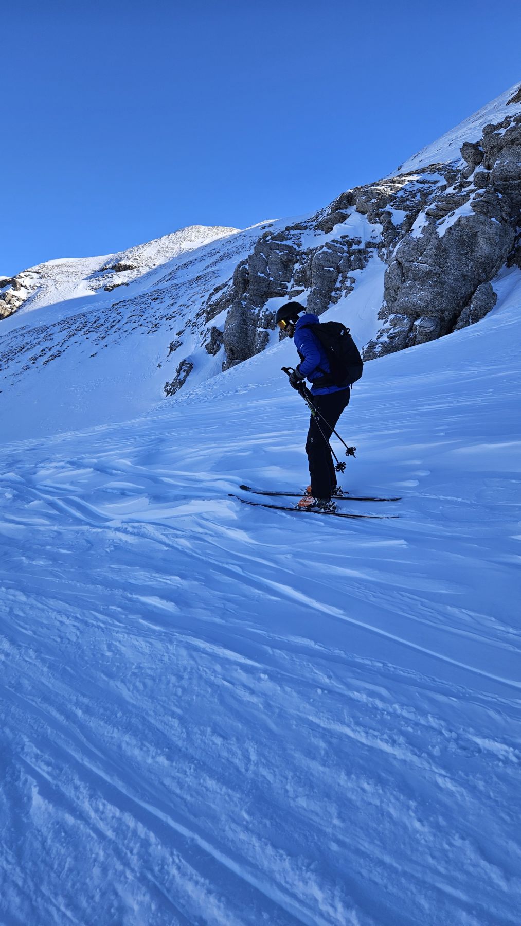 Die Wetterprognosen für den letzten Sportferientag waren grossartig und das wollten wir nochmal ausnützen. Bei nebligen Bedingungen machten wir uns früh auf den Weg zum Skilift Mollis, wo wir dann auch endlich Schnee vorfanden. Und auch einige andere SkitourengängerInnen. Die Tour auf den Schilt ist beliebt und bekannt, daher haben wir damit gerechnet, dass wir nicht die Einzigen sein würden. Nach einer kurzen Abfahrt legten wir die Felle auf und zogen im Schatten los Richtung Färiboden, angenehm ansteigend, stetig hoch. Auf dem Färiboden erwartete uns bereits die Sonne. Weiter ging es rund um den Sivellen und dann noch ein kurzes Stück hoch auf den Schilt, wo es sich bereits mehrere SkitourengängerInnen gemütlich gemacht hatten. Wir fuhren ein paar Meter weiter und fanden dort ein ruhiges Plätzchen mit einer gewaltigen Aussicht auf das Nebelmeer und die umliegenden Gipfel. Es erstaunt nicht, dass die Tour so beliebt ist; sie ist sehr angenehm zu gehen, landschaftlich wunderschön und auch konditionell gut machbar. Einfach ein Hit! Wir kommen bestimmt wieder, am liebsten an einem Wochentag mit weniger Leuten.
