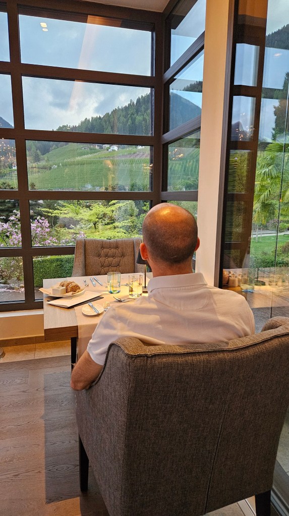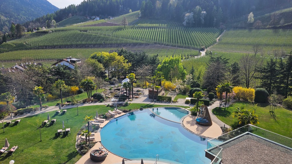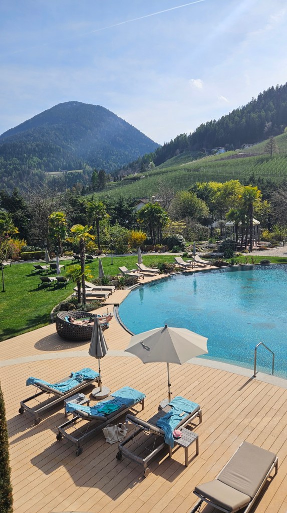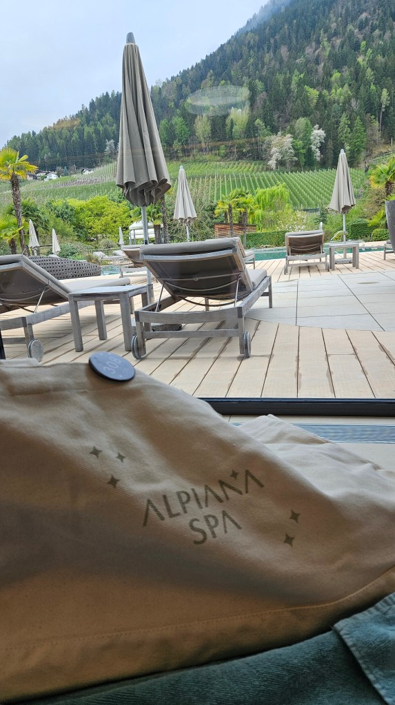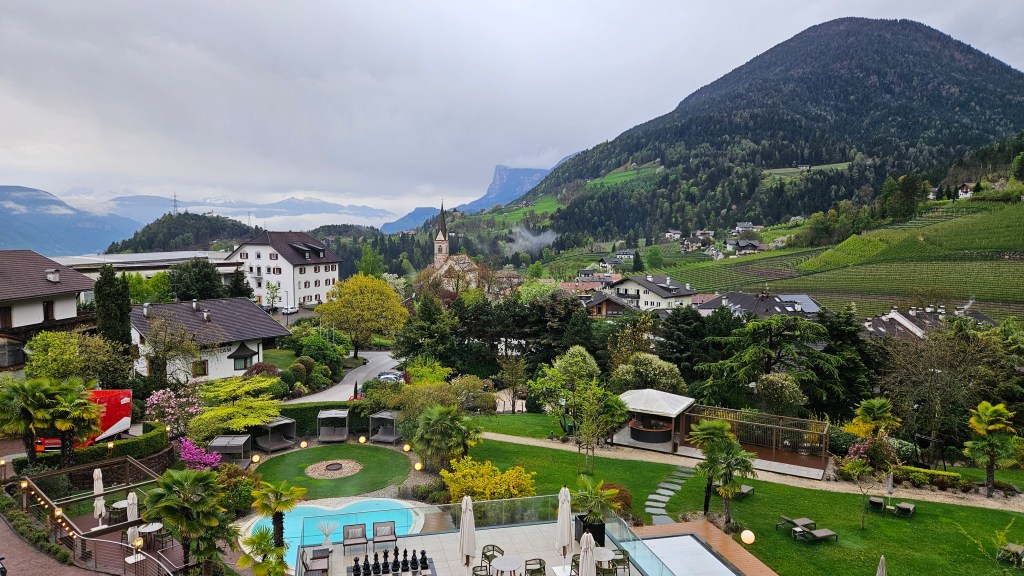 Wir haben uns so gefreut auf die Wärme und die wunderschönen Wanderungen im Südtiroler Dörfchen Völlan – aber das Wetter hatte leider andere Pläne. Am Anreisetag war es noch sonnig und richtig schön warm, aber dann ging das Wetter wortwörtlich bachab und es regnete tagelang fast ununterbrochen. Drei kurze Wanderungen konnten wir machen, wurden jedoch jedes Mal verregnet. Für zwei Tennismatches hat es auch gereicht. Wir versuchten das Beste daraus zu machen und die Annehmlichkeiten und die Infrastruktur des tollen Hotels Alpiana Green Luxury zu geniessen; das feine Essen, die Yogastunden, den Wellnessbereich, den top Service. Aber so schön das Hotel und die Anlage auch waren….wir haben einmal mehr gespürt, dass wir keine Hotel-Typen sind und uns in einer einfachen Wohnung mit viel Freiheiten am wohlsten fühlen.