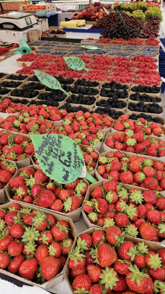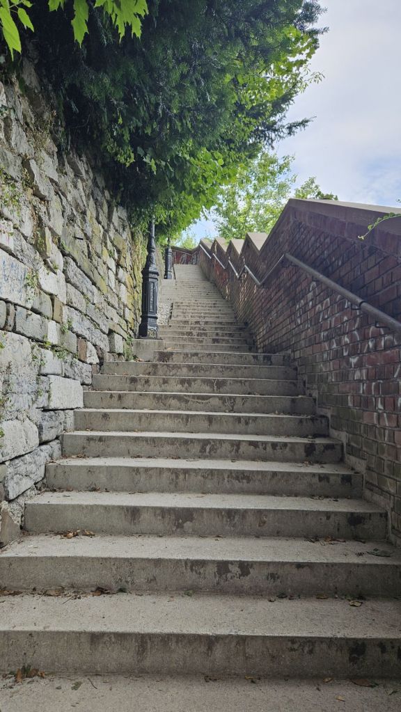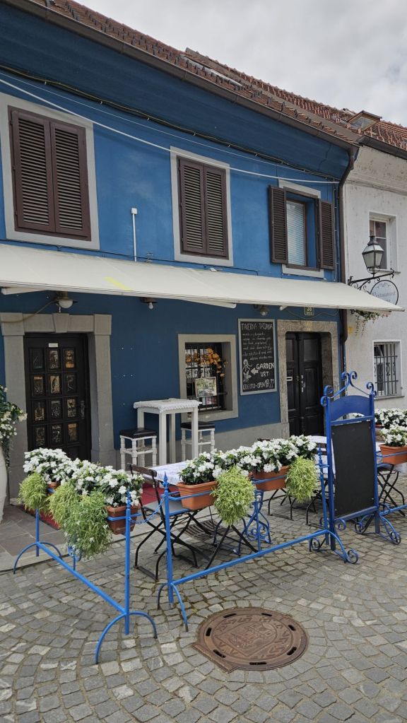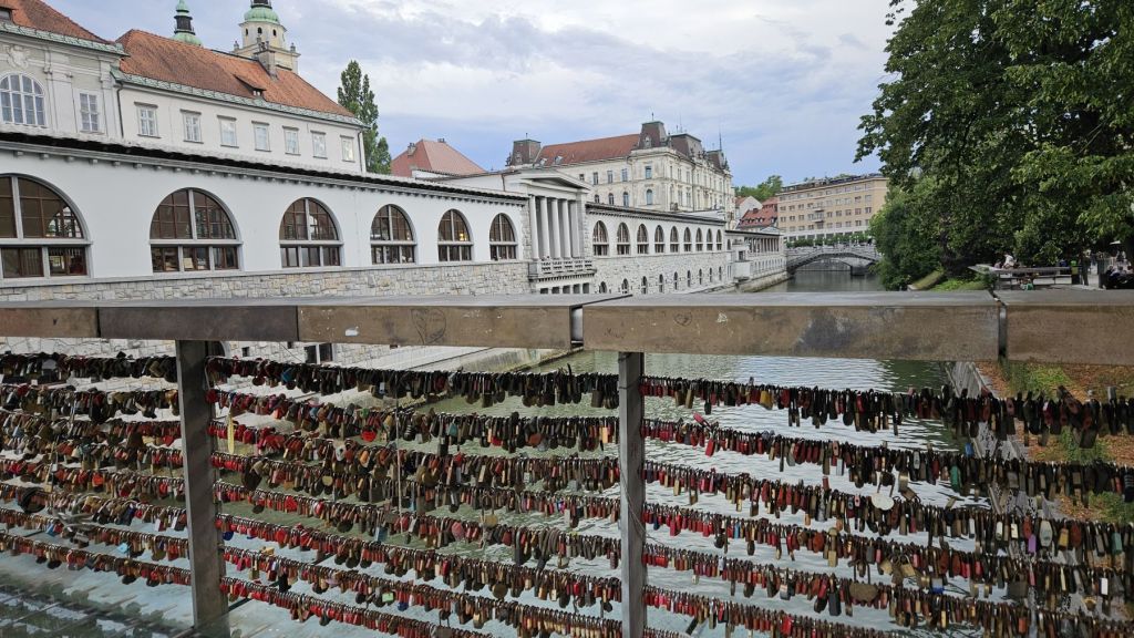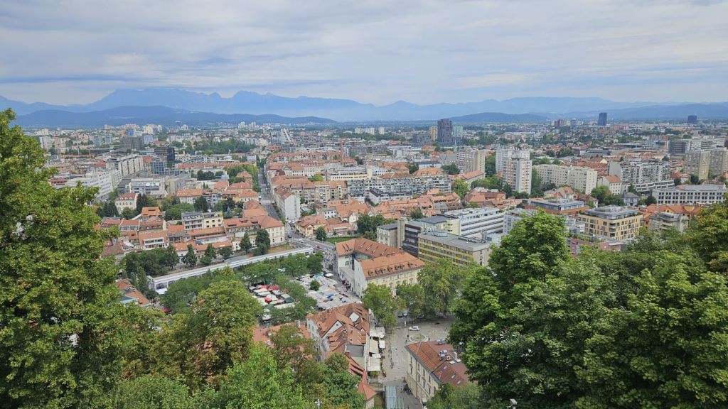 Am Samstag schliefen wir aus und nahmen uns Zeit für ein gemütliches Frühstück, immer noch mit wunderbarer Aussicht aus unserer Wohnung im vierten Stockwerk. Danach machten wir uns auf einen längeren Stadtspaziergang; vom Hauptbahnhof liefen wir durch Quartiere und dem Fluss Ljublianica entlang bis hoch zum Schloss, wo wir eine Pause mit toller Aussicht über die ganze Stadt genossen. Eine weitere halbe Stunde später fanden wir uns im Park Spica wieder, ein herrliches Plätzchen mit Steintreppen direkt am Fluss zum Verweilen und einem sehr gemütlichen Café. Dort genossen wir unser Picknick in der Ruhe, tranken einen Espresso im Café und kehrten dann zum shoppen in die Innenstadt zurück. Nach ein paar Souvenir-Einkäufen wir Shirts, Pullover und Honig füllten wir unsere Taschen noch mit frischem Gemüse vom Markt.