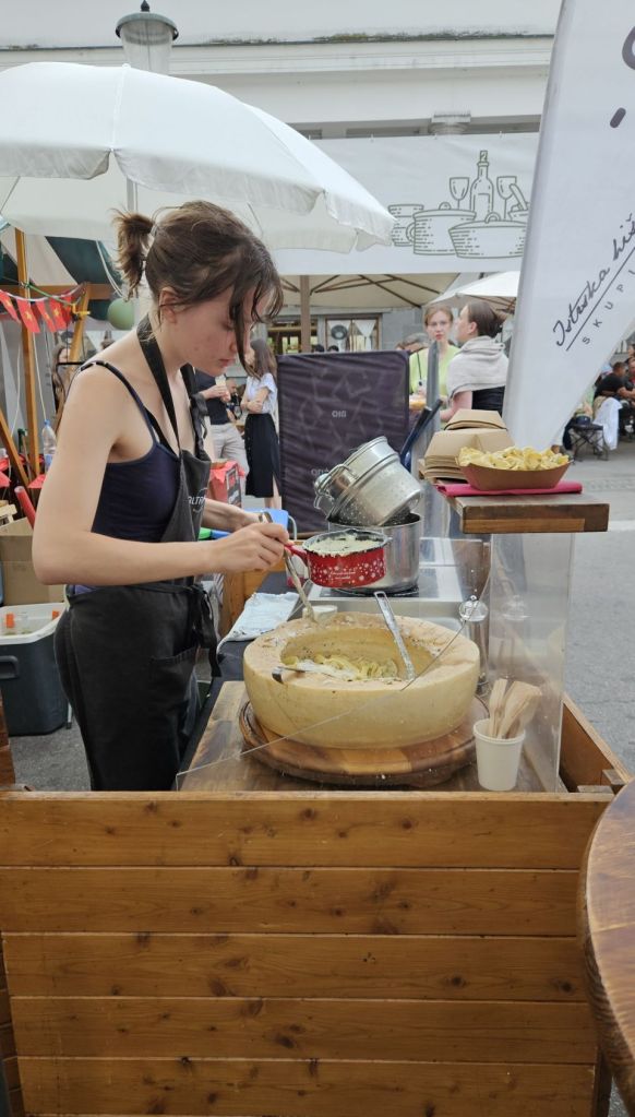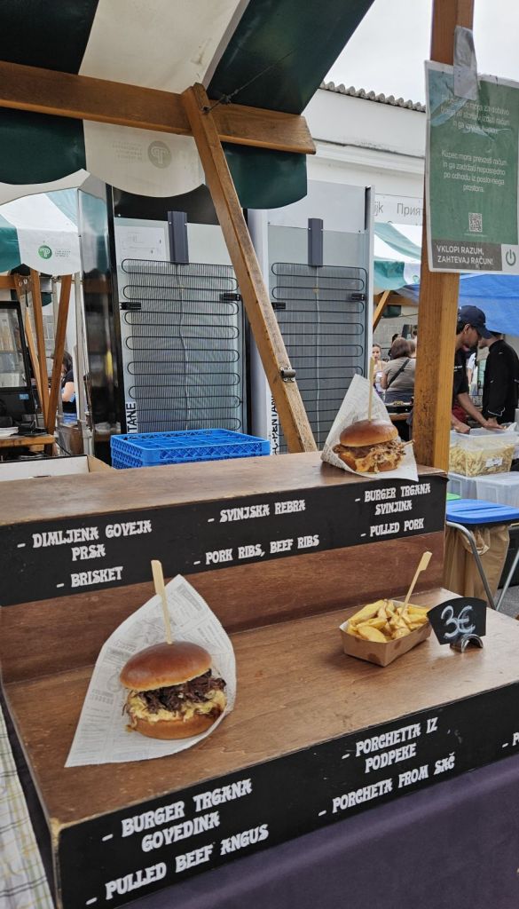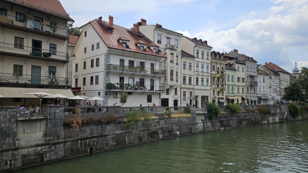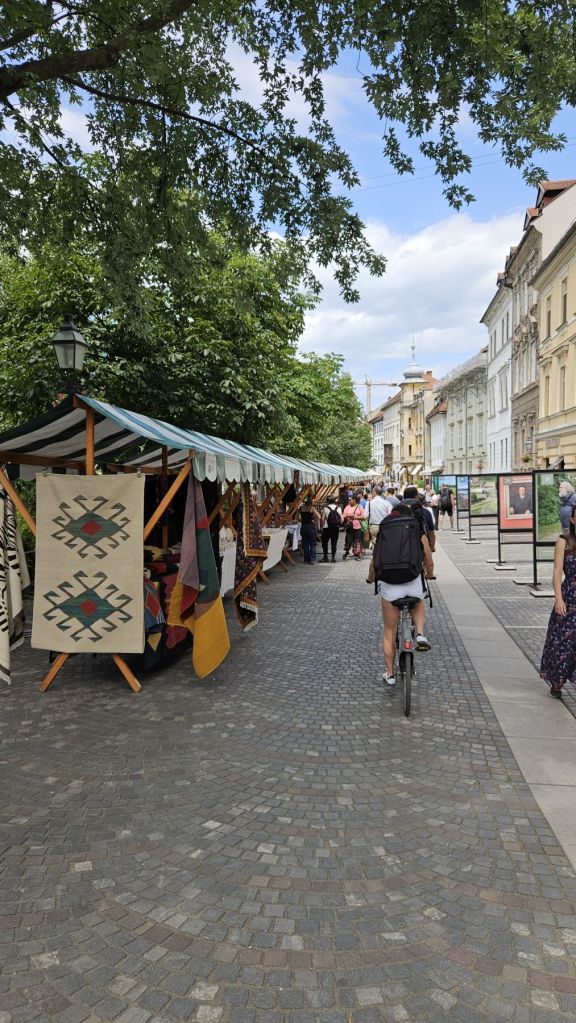Der Name Ljubljana hat uns beiden schon immer gefallen, deshalb wollten wir die Stadt einmal mit eigenen Augen sehen. Nachdem wir am Freitagmorgen sehr früh von Münchwilen losfuhren, erreichten wir unser Ziel nach etwas mehr als 7 Stunden Fahrzeit früher als erwartet. Wir machten uns frisch und wurden dann am Freitagabend gleich mit dem ersten Highlight belohnt: dem Besuch des Food Festivals „open kitchen“, welches jeweils am Freitagabend am Marktplatz in der herzigen Innenstadt stattfindet. Von unserer Airbnb Wohnung spazierten wir eine gute halbe Stunde ins Zentrum, wo sich Einheimische und Touristen gleichermassen tummelten. Wir waren sogar richtig probierfreudig für unsere Verhältnisse und haben uns ein bisschen durch die Stände gegesssen; Langos, Ravioli, Phad Thai, Bao Bun und „loaded Fries“, wobei vor allem der Bao Bun in Erinnerung bleiben wird. Den halbstündigen Rückweg versüssten wir uns mit einem feinen Glacé und genossen dann zu Hause noch die wunderbare Aussicht auf die umliegenden Berge vom Balkon aus.