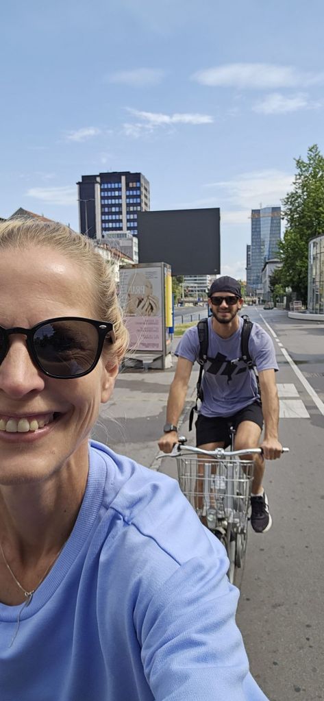 Am Sonntag probierten wir – wie so oft bei Städtetrips – die praktisch kostenlosen City Bikes von „bicikelj„. Dafür muss man sich einmal über die App registrieren und danach ist es super einfach und praktisch. Auch die Velos sind in gutem Zustand, angenehm zu fahren und auch Standorte hat es über die ganze Stadt verteilt. Diese City Bikes sind also sehr empfehlenswert. Von unserem Standort am Hauptbahnhof machten wir uns auf Richtung Tivoli Park. Dort stellten wir unsere Velos ab und liefen zu Fuss durch den Park bis zum Zoo, wo wir uns wieder ein Velo schnappten und bis zum Spica Park fuhren. Am Flussufer assen wir wie bereits gestern unser Picknick. Danach fuhren wir quer durch die Stadt zum Supernova Shopping Center, wo wir nochmal shoppen gehen wollten. Das Center war jedoch – ausser dem MacDonalds – zu. Wir waren nicht allzu enttäuscht, bedeutet uns Shopping ja eh nicht viel. So tranken wir gemütlich einen Kaffee und radelten dann zurück nach Hause.