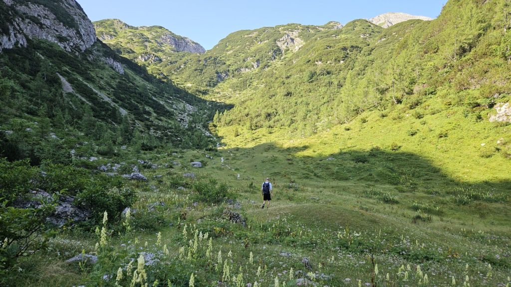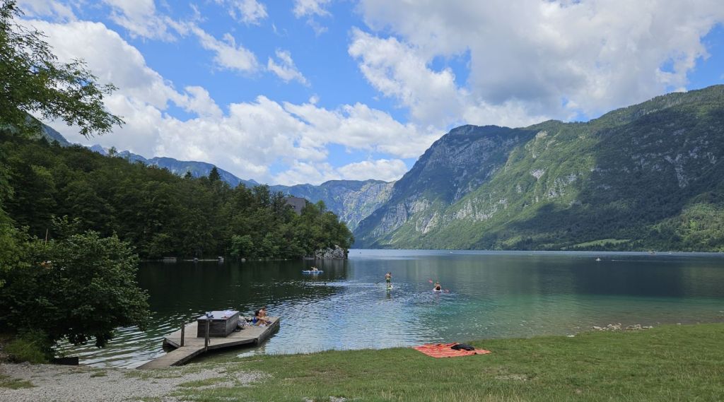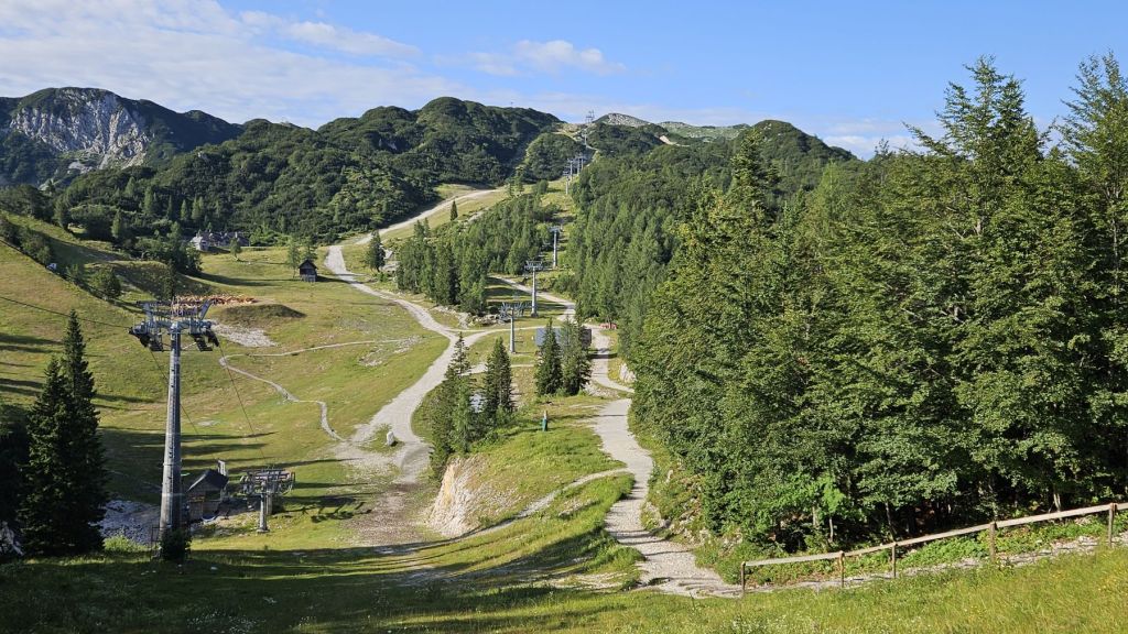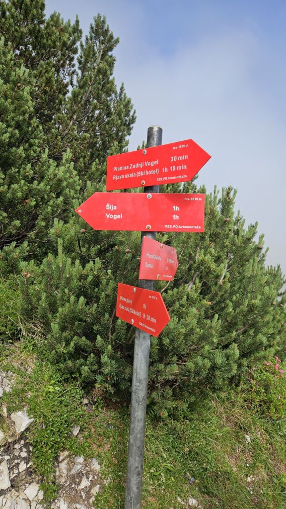 Nach einem regnerischen Mittwoch, an dem wir dem bekannten Feriendorf Bled am Bledersee einen Besuch abgestattet haben, konnten wir den heutigen Donnerstag nochmal richtig geniessen. Um 8 Uhr standen wir bereits an der Talstation der Vogel-Gondelbahn. Diese liegt eine gute Viertelstunde von Bohinjska Bistrica entfernt, gleich in der Nähe des Sees Bohinjsko. Die Gondelfahrt war steil, schnell und für mich eher eine Überwindung als eine Freude. Oben auf der Ebene Planinska angekommen, staunten wir über das schöne Gelände mit verschiedensten Attraktionen für Gross und Klein; Spielplatz, eine Art Minigolf, riesige Schaukeln und Picknicktische. Von dort ging unsere Wanderung los und ausnahmsweise einmal zuerst nach unten, und zwar richtig steil. Dieser Weg war nicht schön und auch noch sehr frisch im Schatten. Aber sobald wir im Tal waren, wurde es richtig schön. Durch das blumige und farbige Tal liefen wir hoch Richtung Planin a Zaduji Vogel, welche gleich unterhalb des Vogelberges liegt. Dort wäre es noch ein Stück weiter hoch bis auf den Gipfel des Vogels gegangen, was leider wegen meiner Höhenangst nicht mehr möglich war. So genossen wir einen Moment die wunderbare Aussicht auf die bewaldeten Flächen und Berggipfel rundherum, bevor wir ein Stück zurück liefen bis zur Vratca, wo wir den Abzweiger hoch Richtung Sija nahmen. Diese Wegstrecke war einfach traumhaft. Auf dem Gipfel des Sija waren wir dann das erste Mal nicht mehr allein und der Wind blies recht stark. Aber die Aussicht war so schön, dass wir unsere Mittagspause dennoch dort verbrachten. Auf dem Rückweg zur Gondel kamen uns die Leute dann scharenweise entgegen. Früh aufstehen und ein paar Höhenmeter laufen lohnt sich also auf jeden Fall. Bis zum Gipfel des Sija hatte es nämlich praktisch keine Leute unterwegs. An der Bergstation angekommen, konnten wir direkt in die Gondel hüpfen und wieder ins Tal flitzen, so dass wir den Nachmittag am Flussufer der Sava verbringen konnten. Ein perfekter letzter Tag im Triglav Nationalpark. Diesen werden wir ganz sicher in guter Erinnerung behalten, hat er uns doch so viele schöne Aussichten geboten.