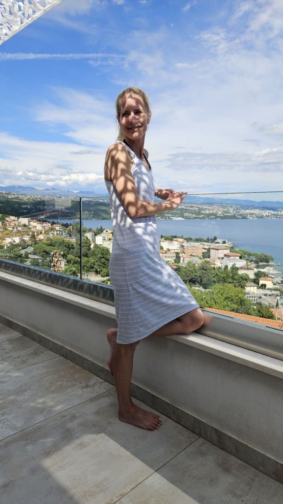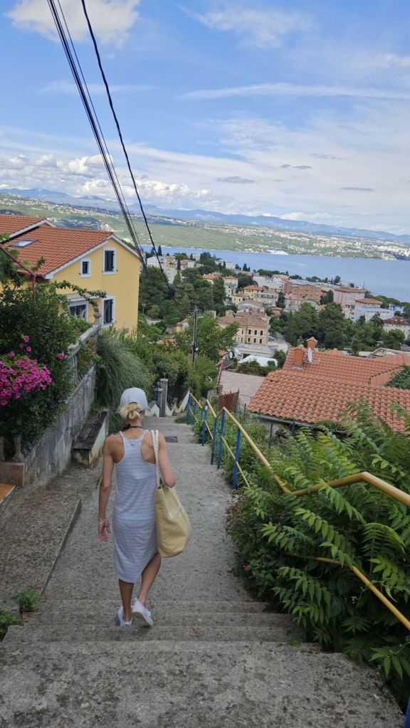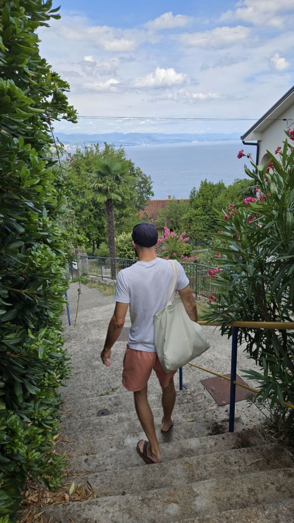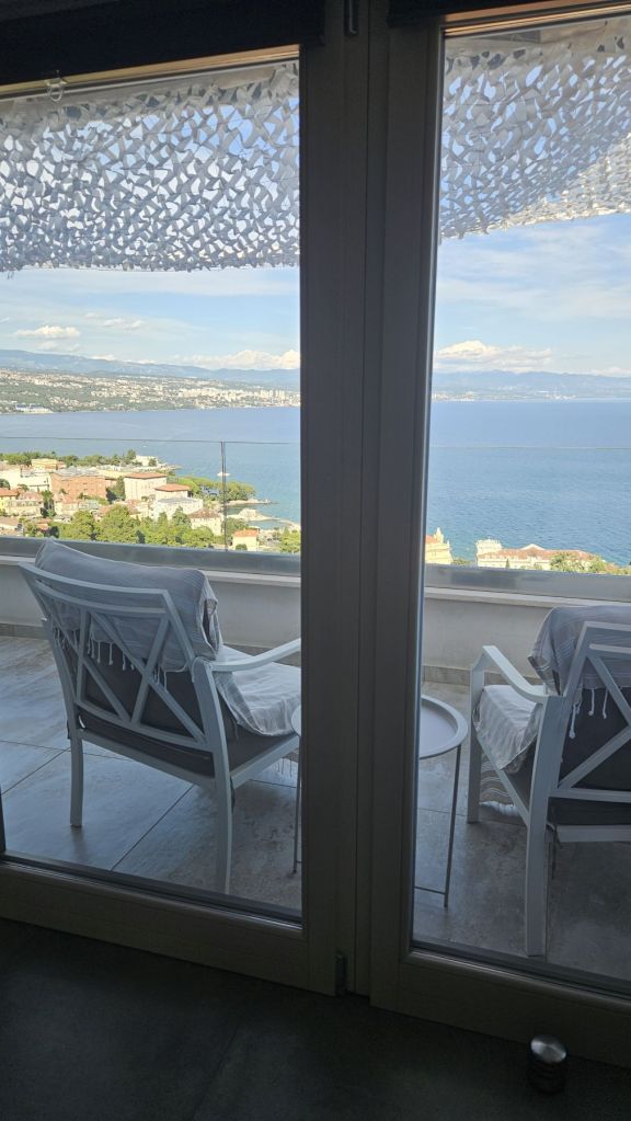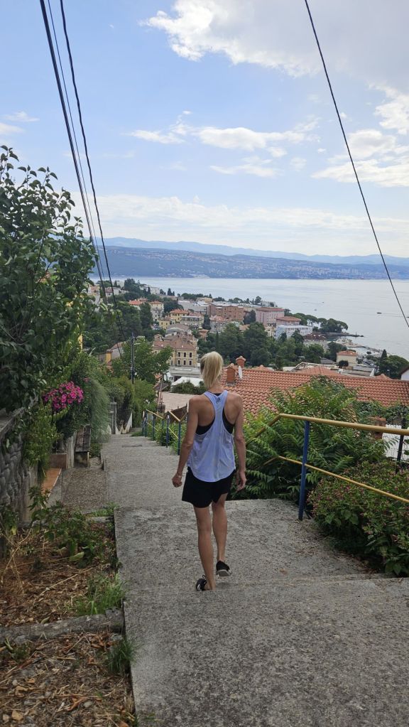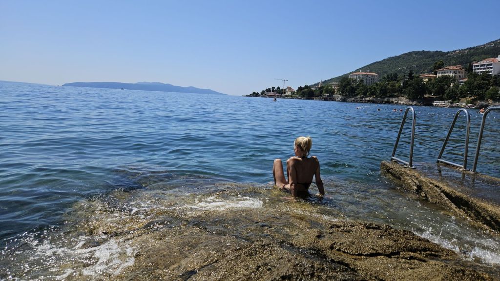 Nach einer erlebnisreichen Woche in Slowenien wollten wir in der zweiten Woche in Kroatien einfach nur die Wärme geniessen, uns ausruhen und die Seele ein bisschen baumeln lassen. Und mit unserer Airbnb-Wohnung mit grandioser Aussicht auf das Meer und das Städtchen Opatija war das super möglich. Hier waren unsere Tage weniger abwechslungsreich, dafür umso entspannter; wir machten schöne Morgenspaziergänge der Küste entlang, besuchten einige der umliegenden Strände und Dörfchen wie Lovran oder Draga Moscenicka, mieteten uns in einem Gym ein, genossen viele Stunden auf unserer ruhigen Terrasse und liessen unsere Blicke über das Meer schweifen. Die Tage in Opatija waren trotz der 278 Treppen hoch zu unserer traumhaften Wohnung vor allem eins: herrlich entspannt.