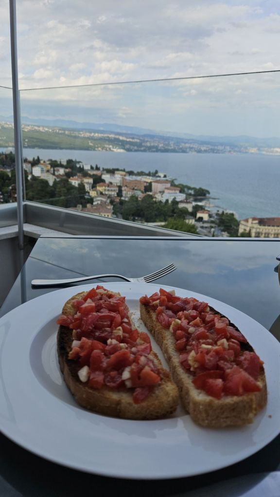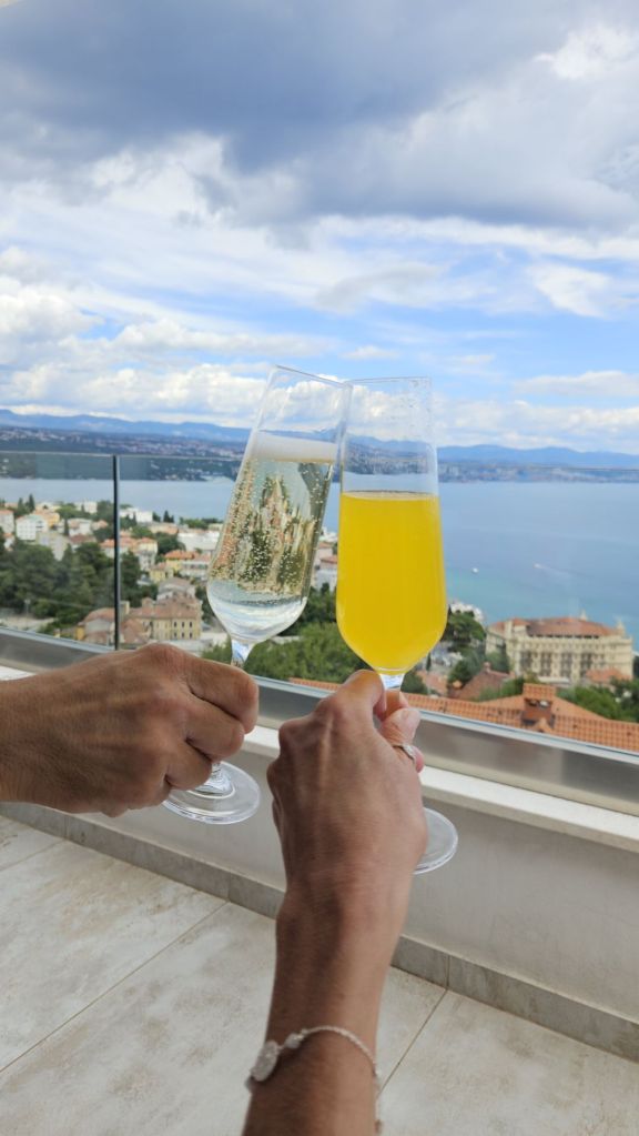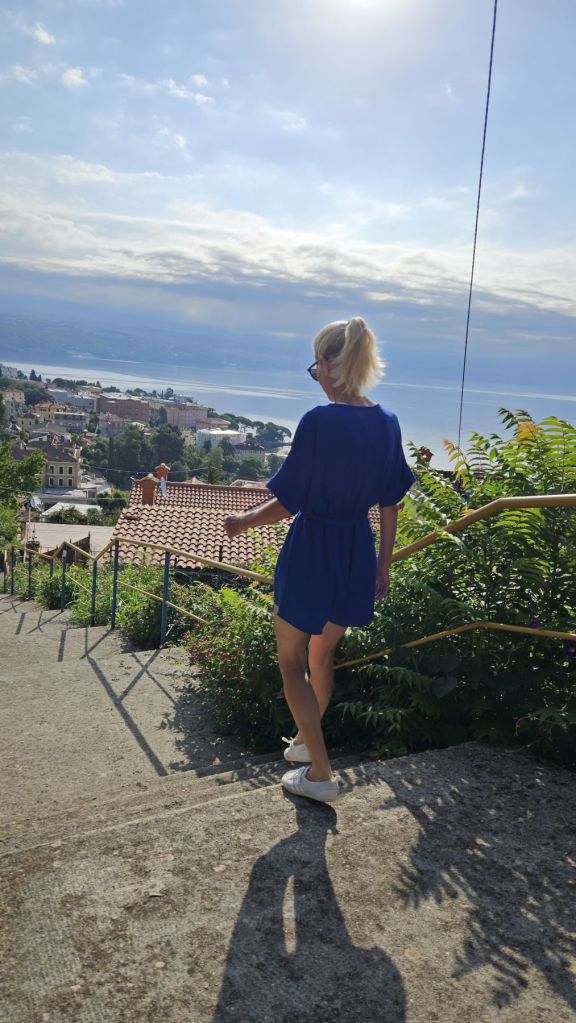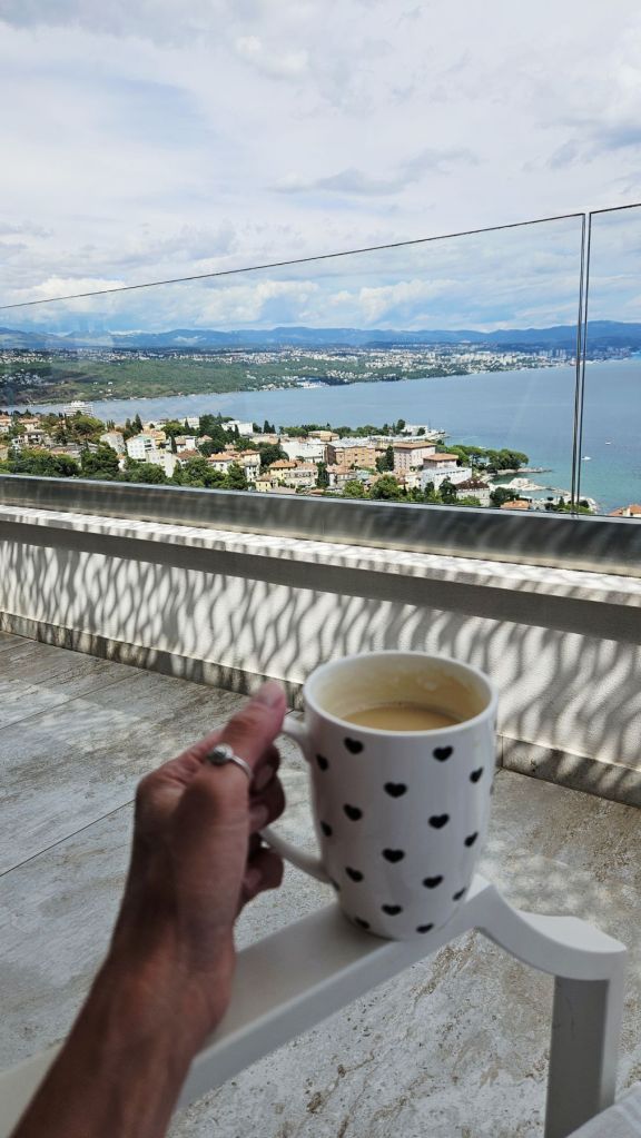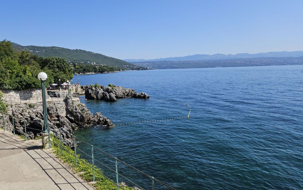 Nach einer erlebnisreichen Woche in Slowenien wollten wir in der zweiten Woche in Kroatien einfach nur die Wärme geniessen, uns ausruhen und die Seele ein bisschen baumeln lassen. Und mit unserer Airbnb-Wohnung mit grandioser Aussicht auf das Meer und das Städtchen Opatija war das super möglich. Hier waren unsere Tage weniger abwechslungsreich, dafür umso entspannter; wir machten schöne Morgenspaziergänge der Küste entlang, besuchten einige der umliegenden Strände und Dörfchen wie Lovran oder Draga Moscenicka, mieteten uns in einem Gym ein, genossen viele Stunden auf unserer ruhigen Terrasse und liessen unsere Blicke über das Meer schweifen. Die Tage in Opatija waren trotz der 278 Treppen hoch zu unserer traumhaften Wohnung vor allem eins: herrlich entspannt.