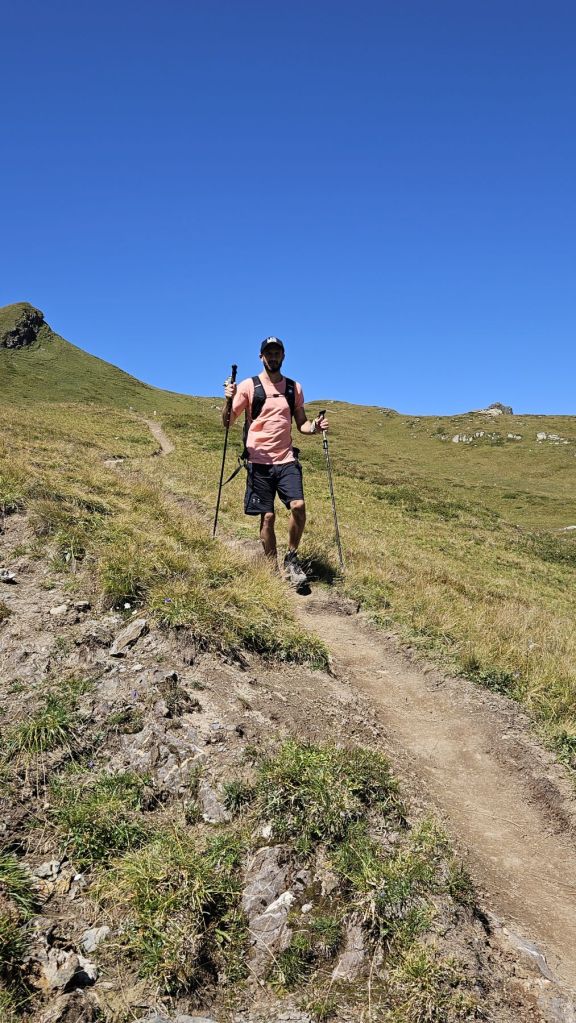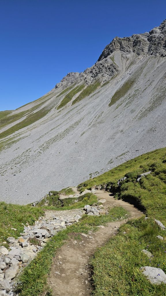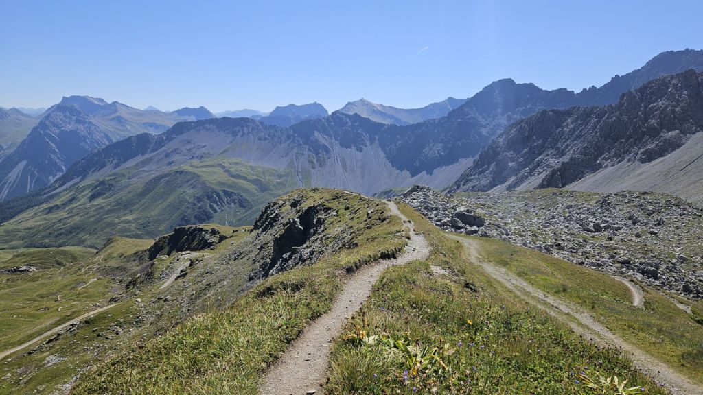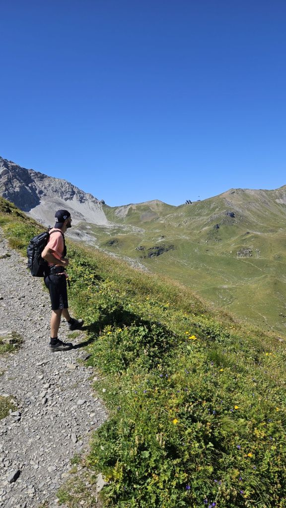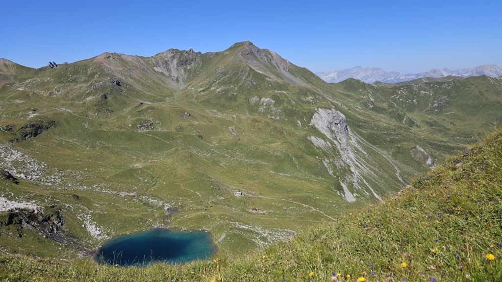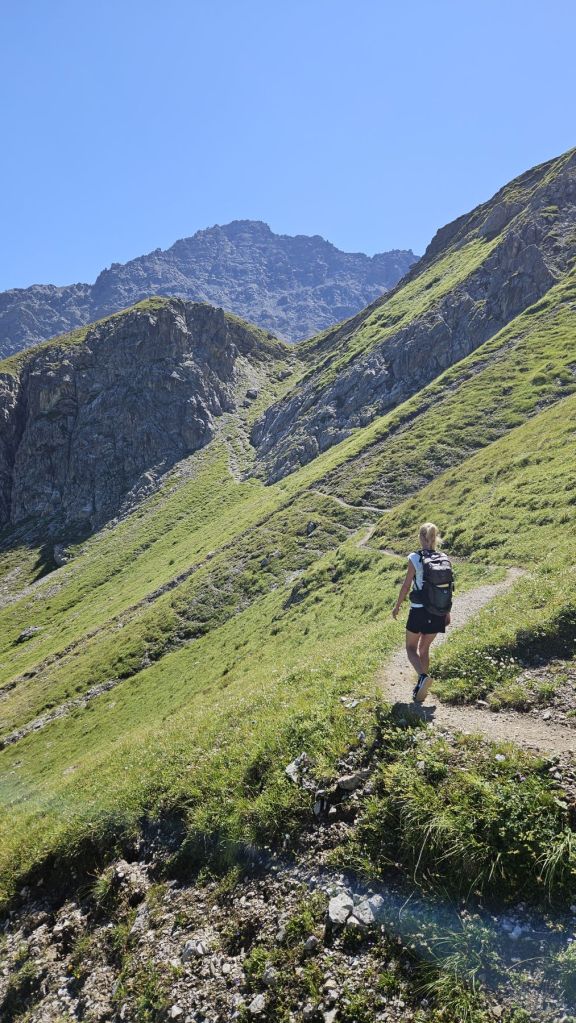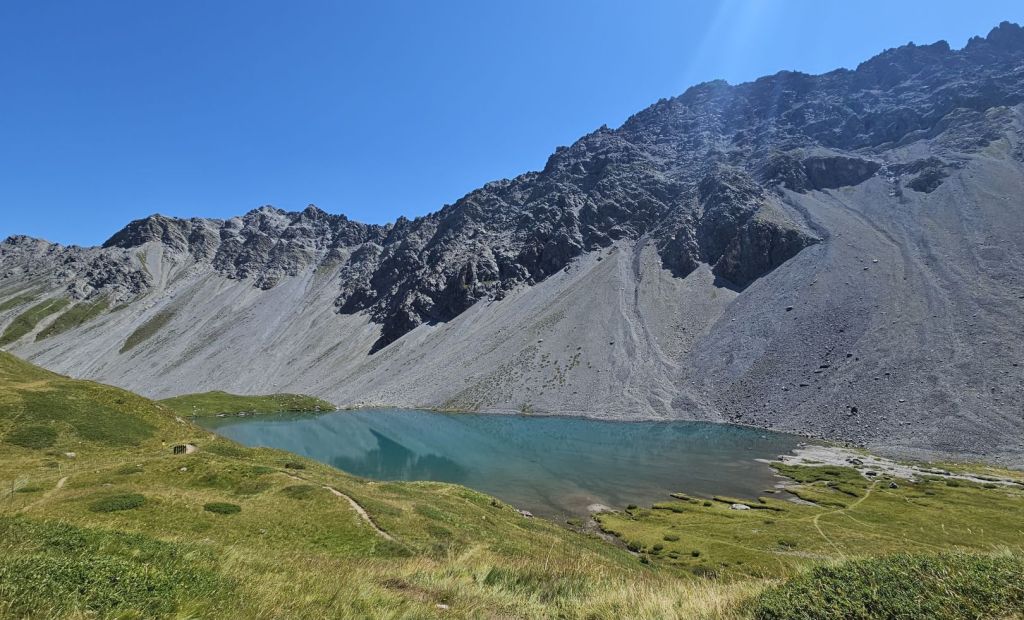 Nach zwei frustrierenden Sommerferienwochen, in denen es nur geregnet hatte, konnten wir heute endlich wieder einmal in die Berge. Diesen freien Freitag wollten wir ausnutzen und eine Wanderung vom sonst eher bevölkerten Arosa aus machen. Wir starteten in Innerarosa und liefen über Wiesenwege stetig hoch über die Carmennahütte zum Hörnli auf 2496m. Obwohl die Bedingungen wunderbar waren, hatten wir heute beide wenig Energie. So liessen wir uns Zeit, hielten noch einen Schwatz mit einem echten Inneraroser und genossen es, dass es trotz super Wetter so wenig Leute auf dem Wanderweg hatte. Kurz nach der Hörnlihütte, dort, wo wir auch im Winter schon mehrmals Pause gemacht hatten, machten wir unsere Picknick-Pause und genossen die Ruhe. Von dort ging es zuerst ein rechtes Stück hinunter, bevor wir rechts hochzogen zum Älplisee. Was für ein idyllischer und ruhiger Ort! Wir kühlten unsere Füsse im eiskalten See ab und liefen dann am Schwellisee vorbei zurück nach Innerarosa. Ein Bilderbuch-Wandertag, der uns für weitere Wanderungen rund um Arosa inspiriert hat.
