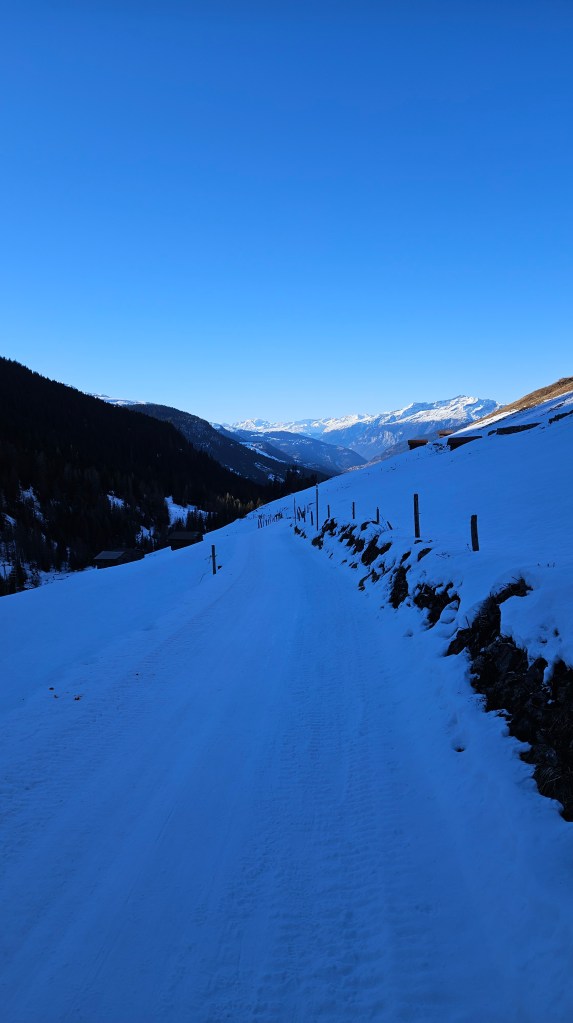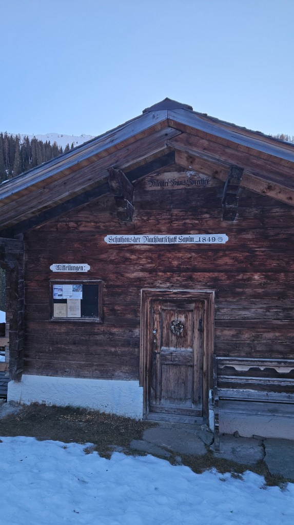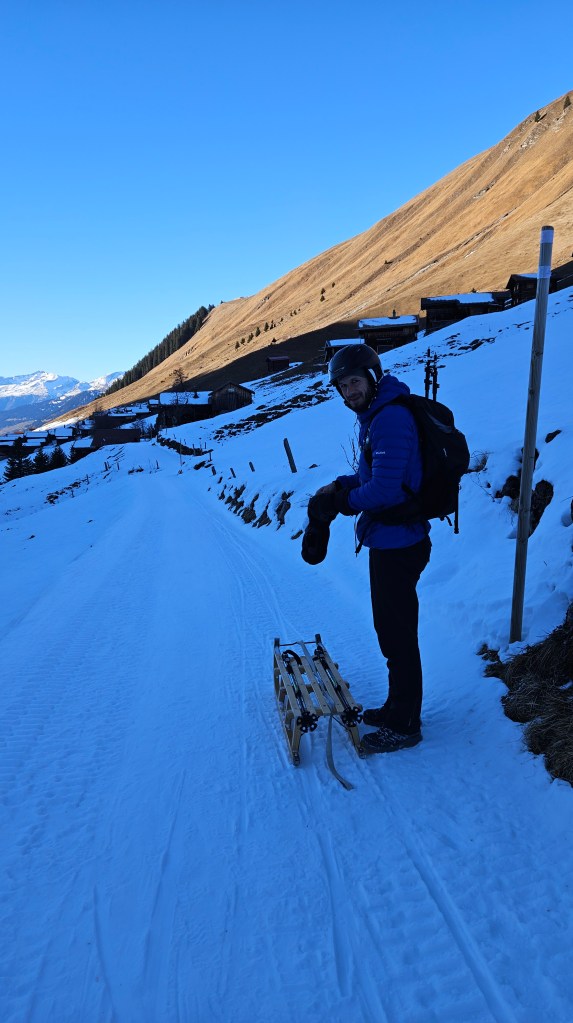 Da weiterhin kein Schnee in Sicht ist, entschieden wir uns heute die Schlittelpiste vom gemütlichen Restaurant Heimeli in Sapün auszuprobieren. Wir liefen von Langwies das enge und schattige Tal hoch zum Restaurant Heimeli, wo wir während der halben Stunde, in der das Restaurant Sonne hat, einen Kaffee auf der Terrasse tranken. Drinnen war sowieso alles besetzt, das Heimeli ist sehr beliebt. Dann mieteten wir einen Schlitten und fuhren damit zurück, wobei der Weg, weil er so eisig und damit schnell war, nicht ganz ungefährlich war. Wir entgingen nur knapp einer kleinen Katastrophe 😉 Ich war jedenfalls froh, als wir heil beim Auto ankamen und wieder auf unseren Sonnenbalkon gehen konnten.